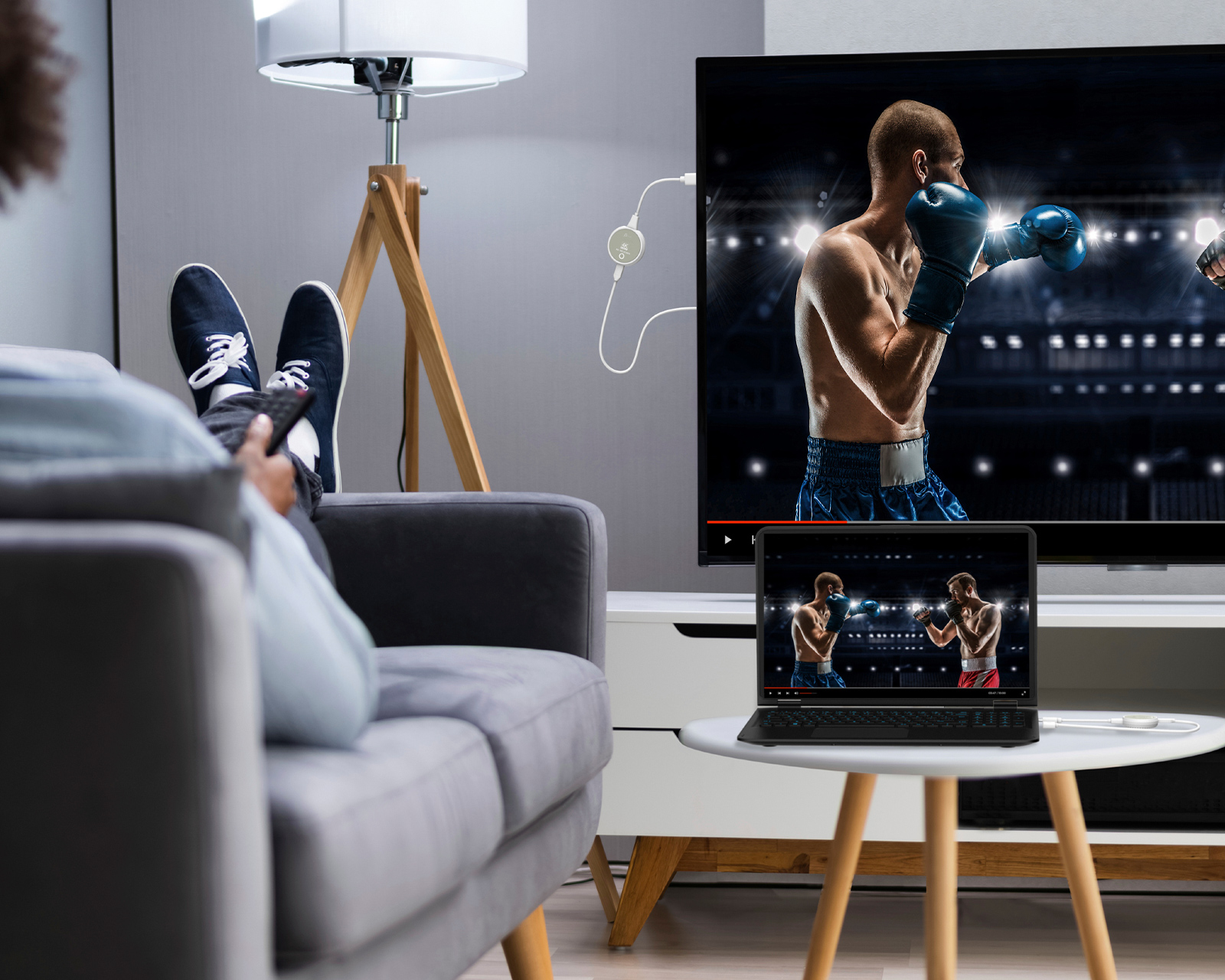 ScreenCast 4K er en avansert trådløs HDMI-forlenger som gjør det enkelt å streame lyd og video av høy kvalitet uten å måtte kjøre kabler. Du kobler ganske enkelt én enhet til skjermen og den andre til enheten du streamer fra, noe som gir deg friheten til å plassere enheten din der den passer deg best.
