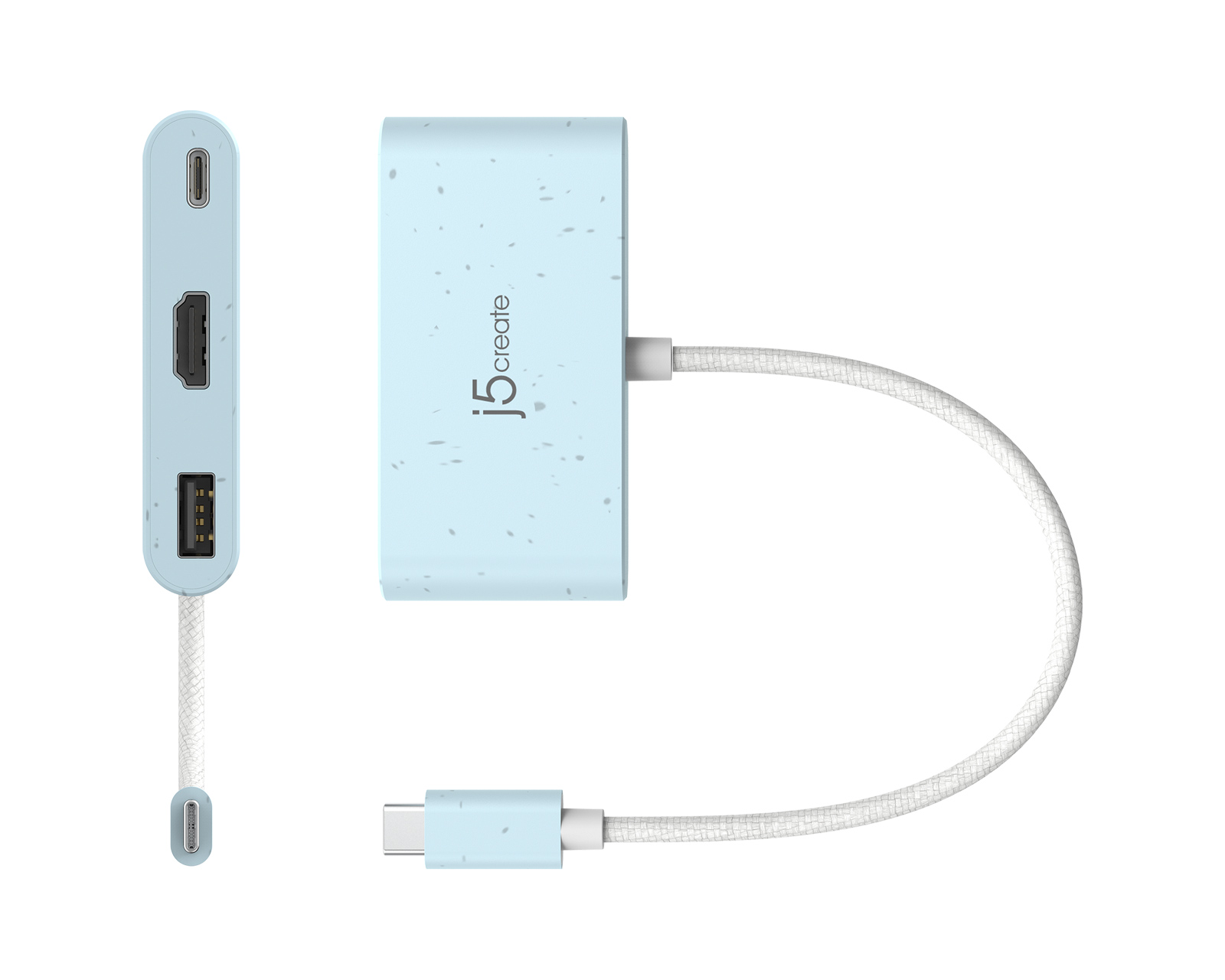 JCA379EC fra j5create er en allsidig miljøvennlig USB-C til HDMI og USB Type-A med strømforsyningsadapter. Denne enheten introduserer ekstra funksjonalitet til den bærbare datamaskinen ved å tilby en ekstra USB Type-A-port, HDMI-skjermstøtte og en USB-C-port som gjør det mulig å lade via USB-C-porten. Opplev raske dataoverføringshastigheter på opptil 5 Gbps med USB Type-A SuperSpeed-porten. HDMI-porten forbedrer seeropplevelsen din med oppløsninger på opptil 4K. Med en USB-C Power Delivery 3.0-ladeport, tilbyr den effektiv lading på opptil 100W når den er koblet til en USB-C-strømadapter.- Miljøvennlig, laget av resirkulert materiale
