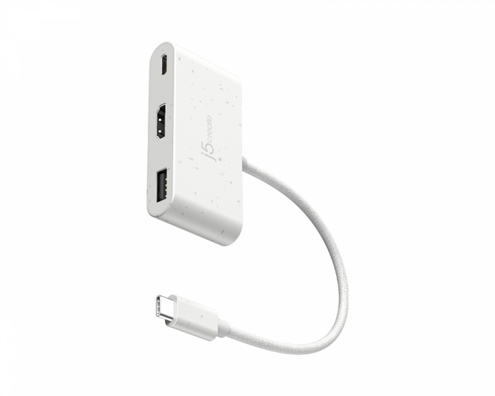 JCA379E fra j5create er en allsidig miljøvennlig USB-C til HDMI og USB Type-A med strømforsyningsadapter. Denne enheten introduserer ekstra funksjonalitet til den bærbare datamaskinen ved å tilby en ekstra USB Type-A-port, HDMI-skjermstøtte og en USB-C-port som gjør det mulig å lade via USB-C-porten. Opplev raske dataoverføringshastigheter på opptil 5 Gbps med USB Type-A SuperSpeed-porten. HDMI-porten forbedrer seeropplevelsen din med oppløsninger på opptil 4K. Med en USB-C Power Delivery 3.0-ladeport, tilbyr den effektiv lading på opptil 100W når den er koblet til en USB-C-strømadapter.- Miljøvennlig, laget av resirkulert materiale