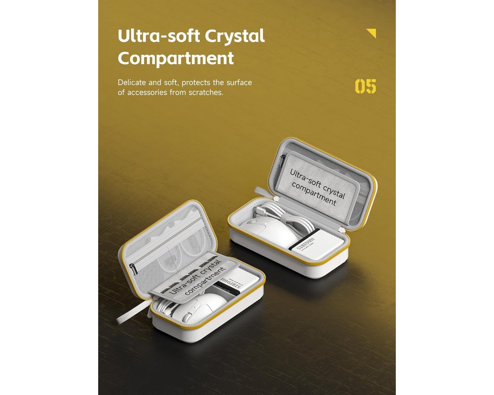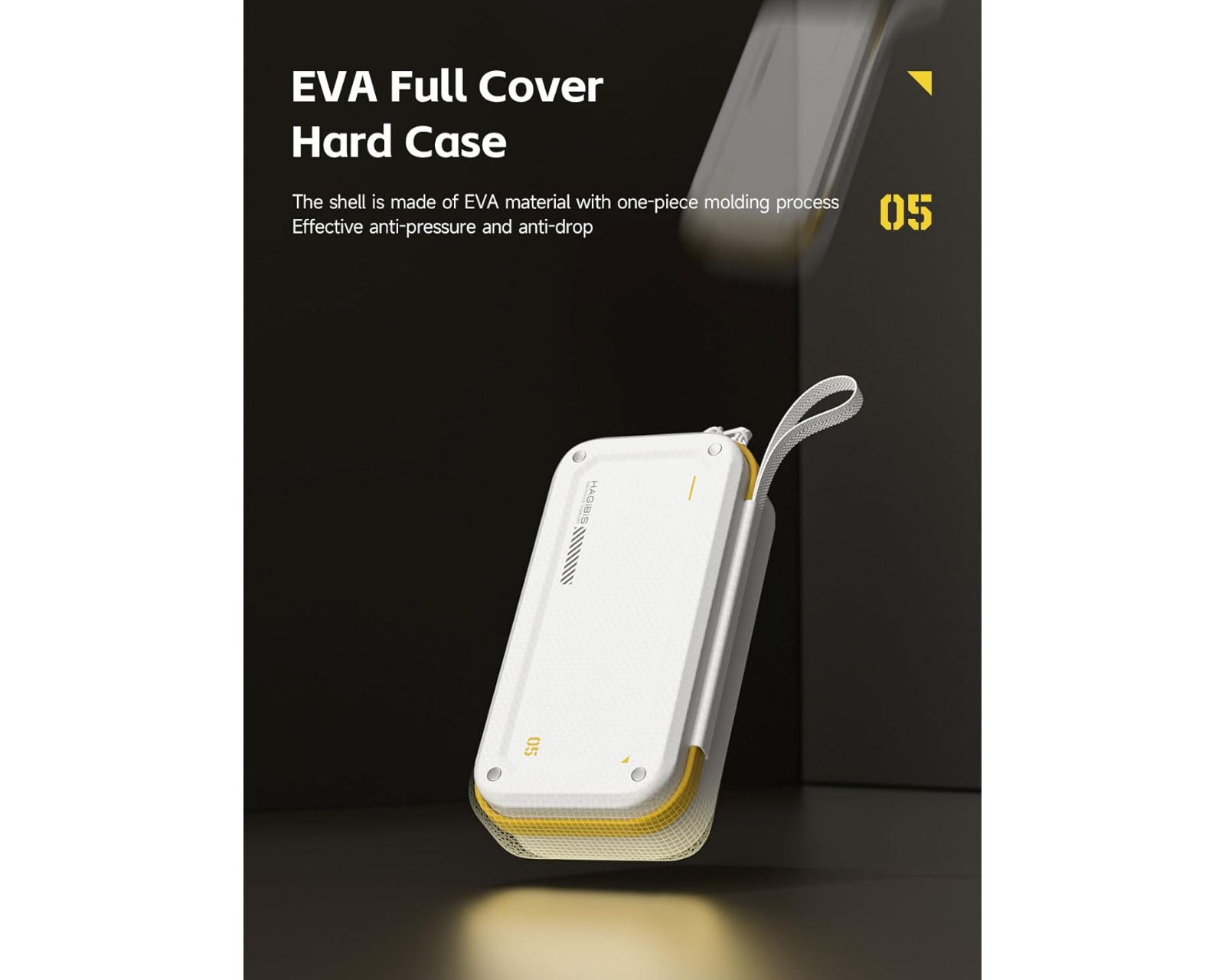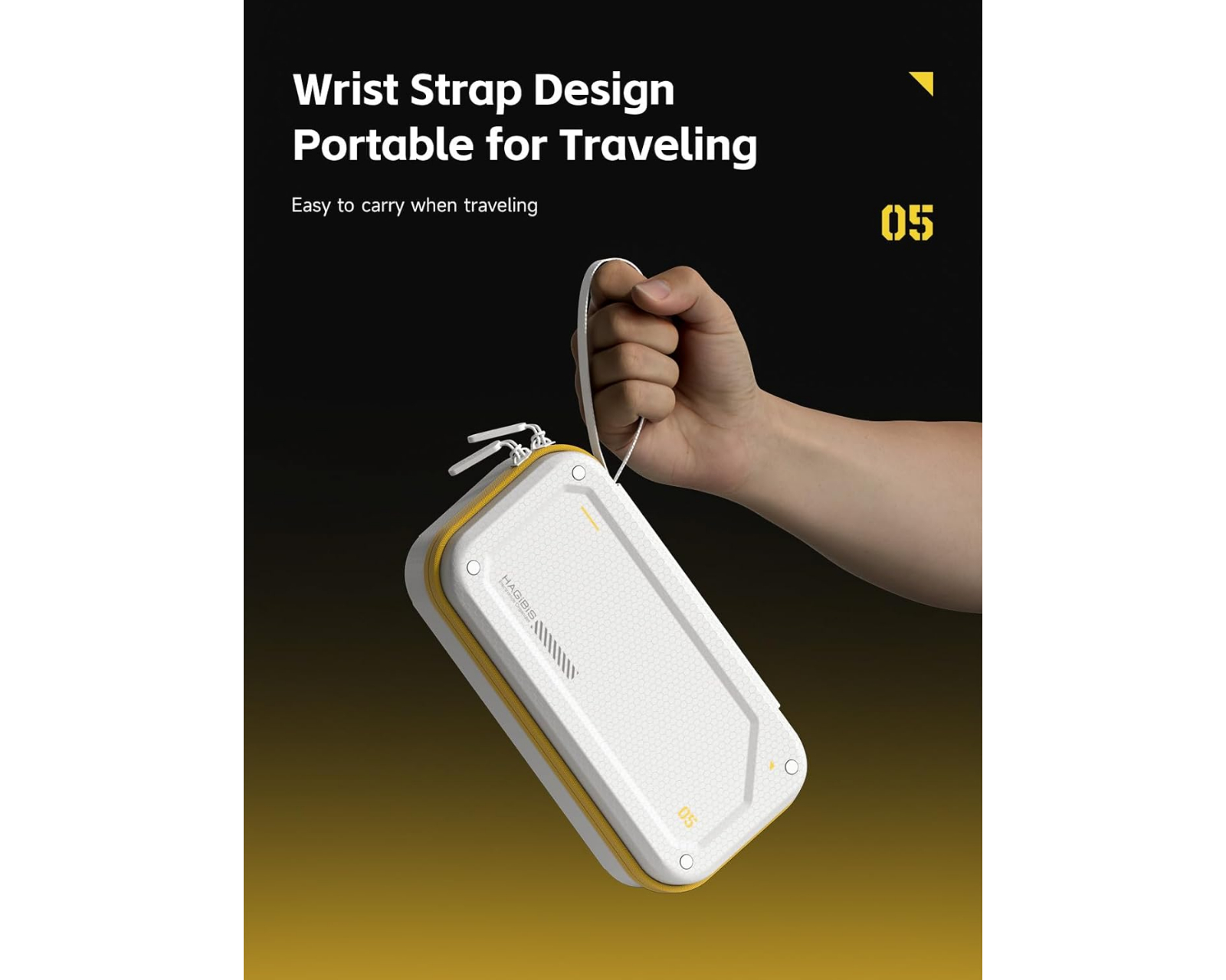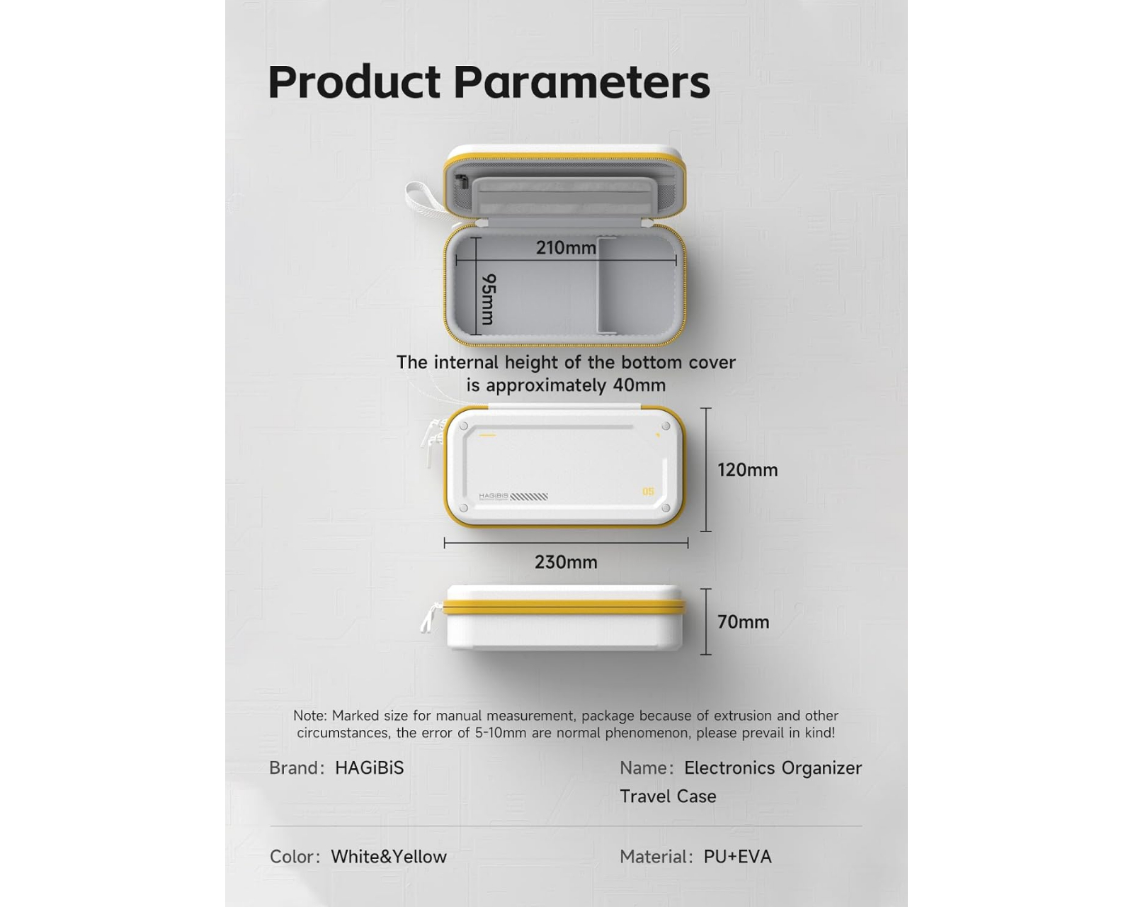Hagibis Elektronisk Organizer er en oppbevaringsveske fra Hagibis som kombinerer praktisk design med sikkerhet for elektroniske tilbehør. Den delte oppbevaringen gjør at du enkelt kan organisere harddisker, ladere, datakabler, power banks, USB-minner og andre digitale produkter. Vesken er ideell for den som reiser og trenger å ha sine deler samlet og beskyttet under transport.Vesken har et hardt EVA-skall som beskytter mot fall, riper, støt, sprut og støv. Innvendig har den et mykt fòring for å forhindre skader på enhetene. Den grove delen av designet sikrer at tilbehørene holdes adskilt og forhindrer at de skraper mot hverandre. Den ytre delen er laget av PU-lær som gir en overlegen vannmotstand sammenlignet med tradisjonelle materialer. I tillegg har vesken en unik glidelås av høy kvalitet fra YKK, som minimerer risikoen for riper på verdifulle enheter og garanterer at små gjenstander ikke faller ut.