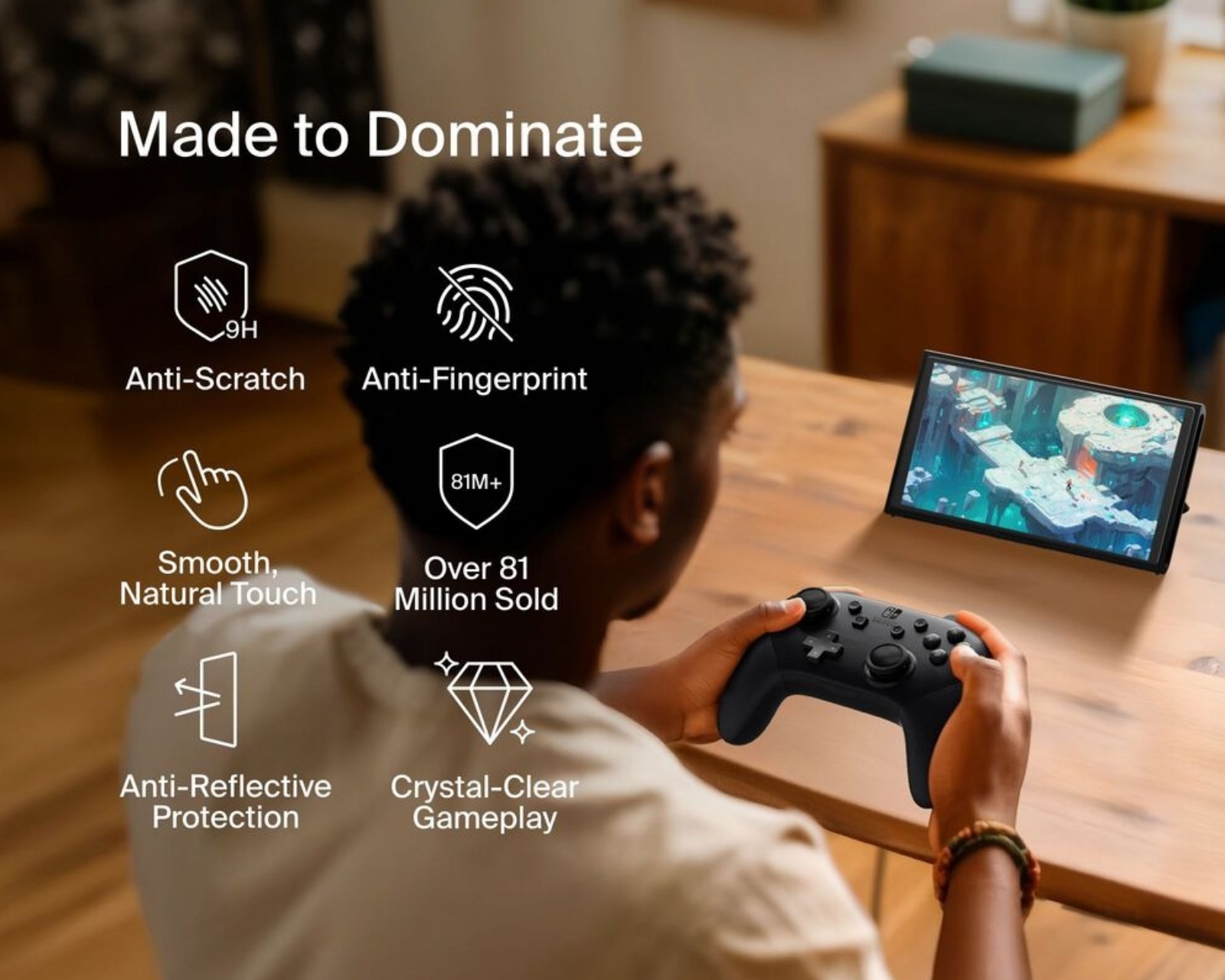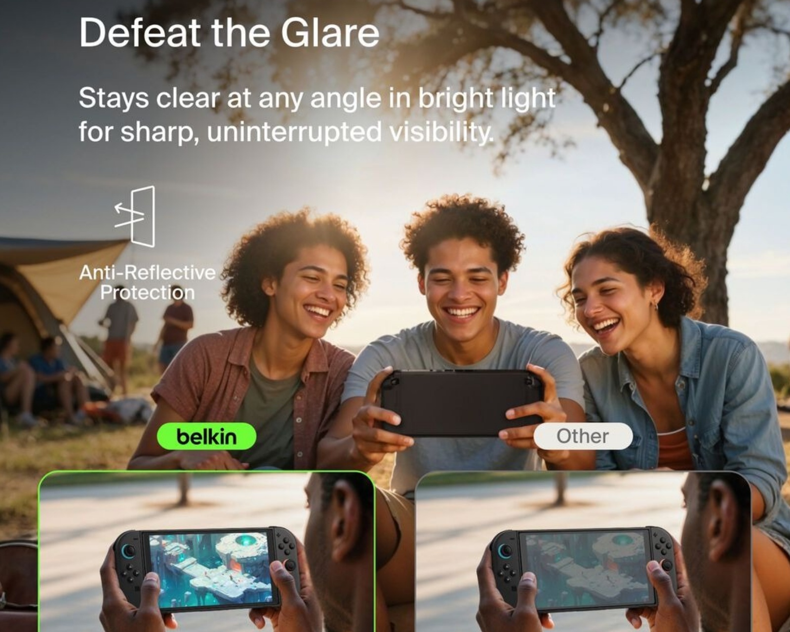 Antireflekterende skjermbeskyttelse for Nintendo Switch 2 er et produkt fra Belkin som tilbyr beskyttelse samtidig som det bevarer skjermens farger og skarphet. Skjermbeskyttelsen er designet spesifikt for den nyeste modellen av Nintendo Switch og har en 9H hardhet, noe som gir en robust beskyttelse mot riper og smuss. Den er egnet for spillere som ønsker å sikre at enheten deres er trygg under spilling, enten det er innendørs eller utendørs.Skjermbeskyttelsen er laget av høykvalitets herdet glass med en tykkelse på bare 0,33 mm, noe som opprettholder den opprinnelige berøringsresponsen for en sømløs spilling. Den anti-reflekterende overflaten tillater bruk i ulike lysforhold. Skjermbeskyttelsen har også en anti-fingeravtrykk belegg som holder skjermen ren og fri for smuss. Den inkluderte Easy Align-rammen gjør installasjonen enkel og uten bobler. Produktets miljøvennlige aspekter inkluderer bruk av 60% PIR-glass og en 70% PCR-ramme.