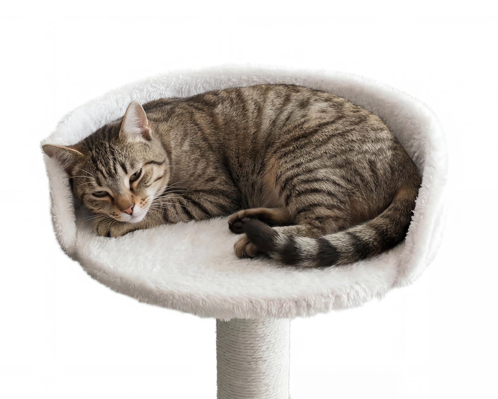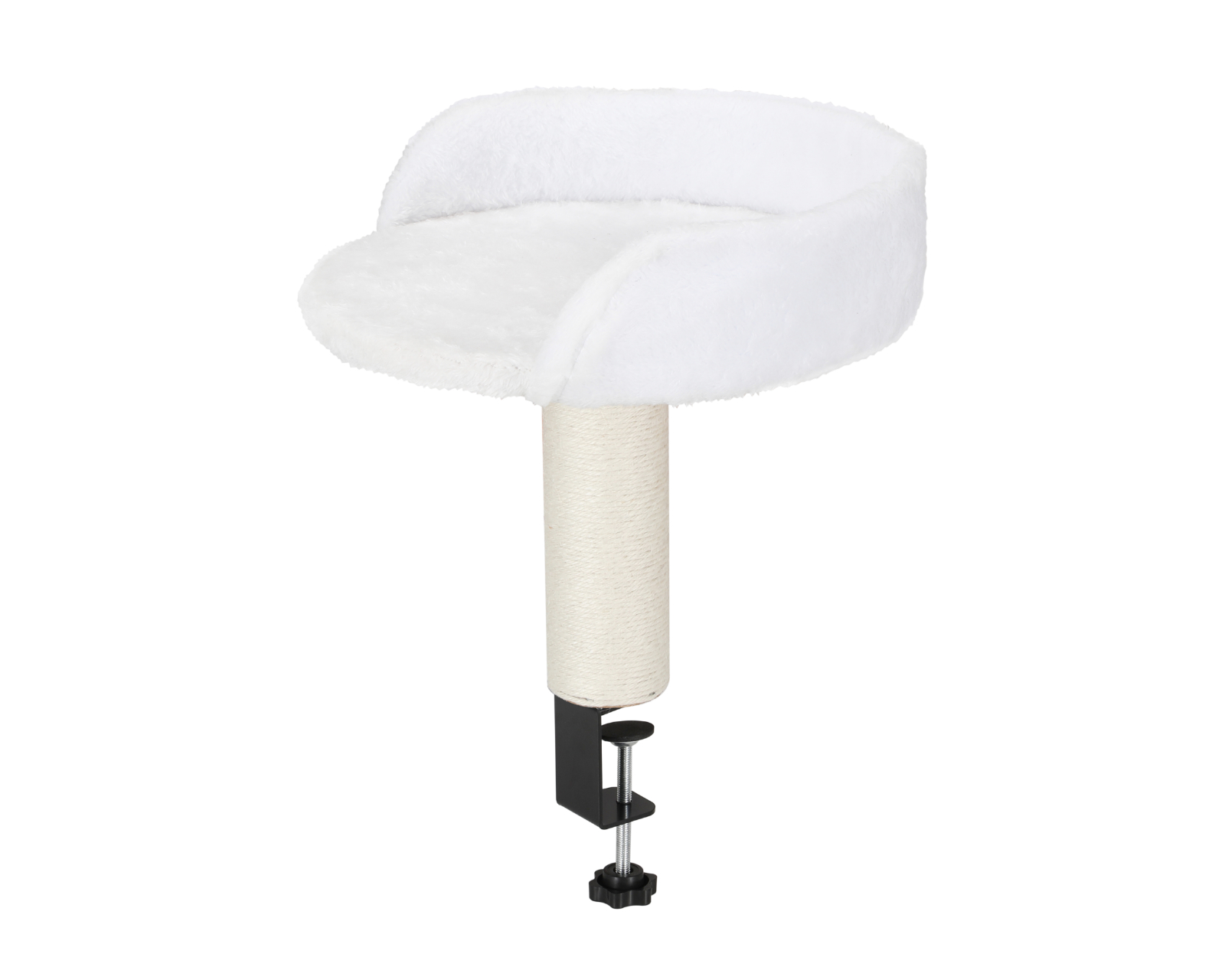 Bordsmontert katte seng er en kattebed fra MaxMount som festes til skrivebordet med en klemme. Denne utformingen gjør det mulig for katten å være nær brukeren under arbeid eller gaming, noe som skaper et trygt og komfortabelt sted for hvile. Kattebeden har en diameter på 30 cm og en høyde på 29 cm, og er konstruert av høykvalitetsmaterialer som sikrer både komfort og holdbarhet.Materialvalget prioriterer mykhet og støtte for katten, noe som gjør den til en brukbar løsning for katteeiere. Klem-systemet muliggjør enkel montering og demontering uten å skade skrivebordets overflate. Konstruksjonen sikrer også at sengen forblir stabil under bevegelse, noe som gagner både brukeren og katten. Den nøytrale hvite fargen tilbyr en estetisk tiltalende finish som er passende for både hjem- og kontormiljøer.