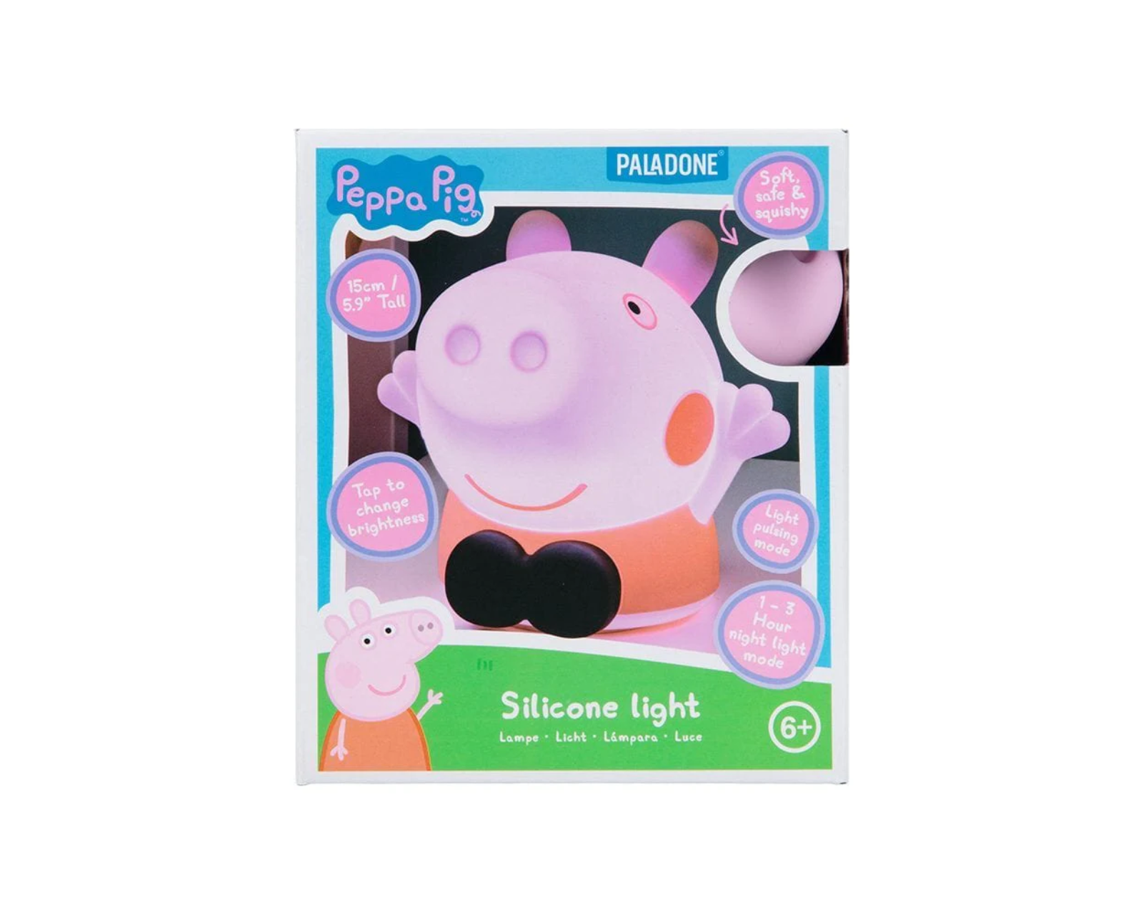 Peppa Gris silikonlampe med oppladbart batteri er en barnevennlig nattlampe designet for å gi et mykt og behagelig lys. Lampen er formet som den populære tegneseriefiguren Peppa Gris og er laget av et mykt silikonmateriale. Den har en høyde på 15 cm, noe som gjør den enkel å plassere i forskjellige miljøer. Den er spesielt egnet for barnerom, noe som gjør den til en praktisk løsning for foreldre som ønsker å skape et trygt sovemiljø for barna sine.Lampen tilbyr tre forskjellige lysstyrkenivåer som enkelt justeres ved å trykke på Peppa Gris hode. Den har en automatisk avstengingsfunksjon som slår av lyset etter 1 til 3 timer, avhengig av innstillingen, noe som kan hjelpe barn med å sove uforstyrret. Med et innebygd oppladbart batteri er trådløs bruk mulig, noe som gir både fleksibilitet og brukervennlighet. Lampen kobles enkelt til via den medfølgende USB-ladekabelen. Dette gjør at den kan lades via mange forskjellige enheter, noe som øker tilgjengeligheten og den praktiske bruken.
