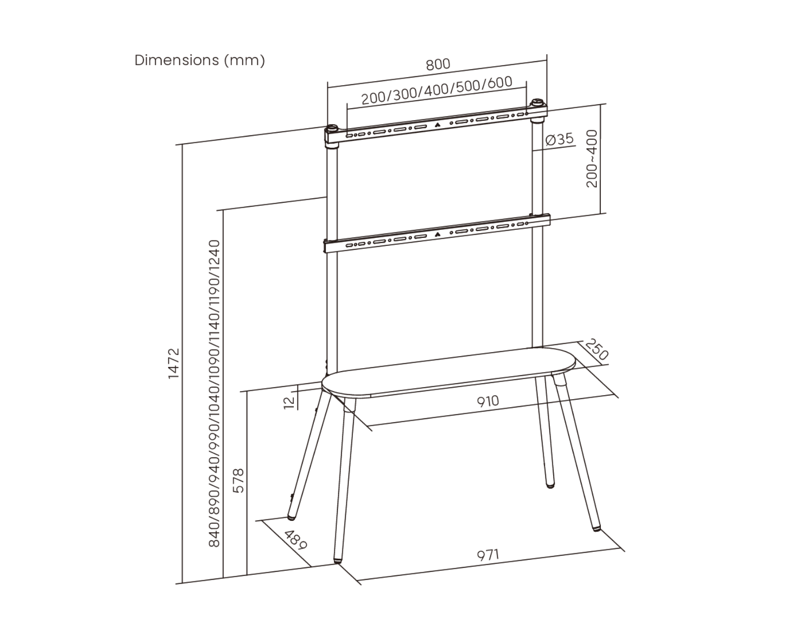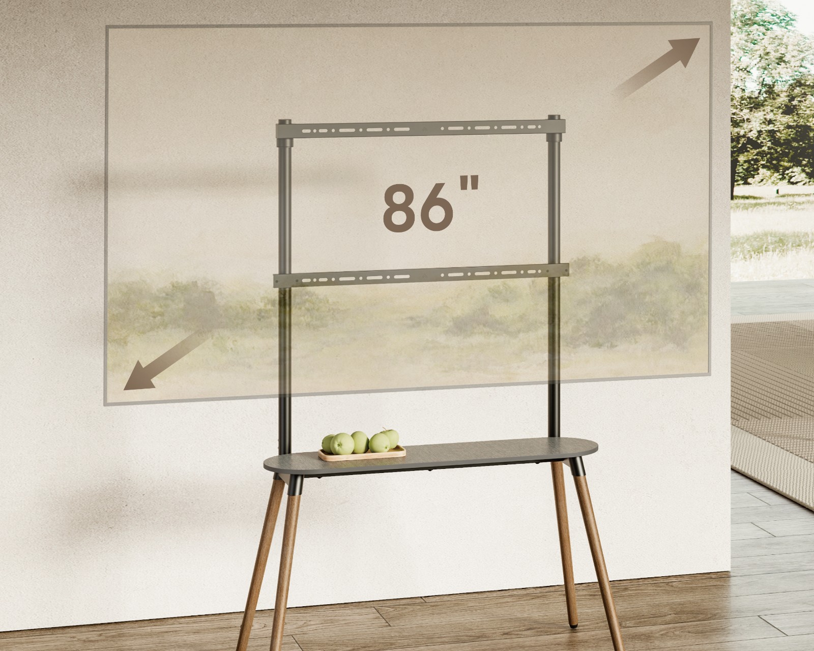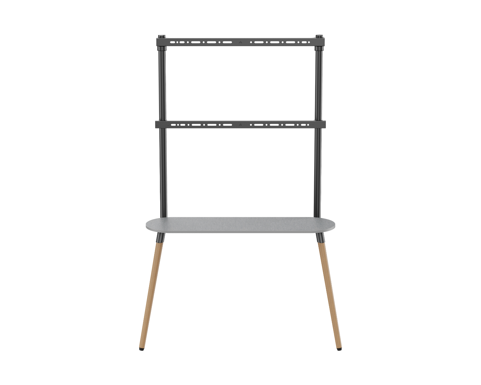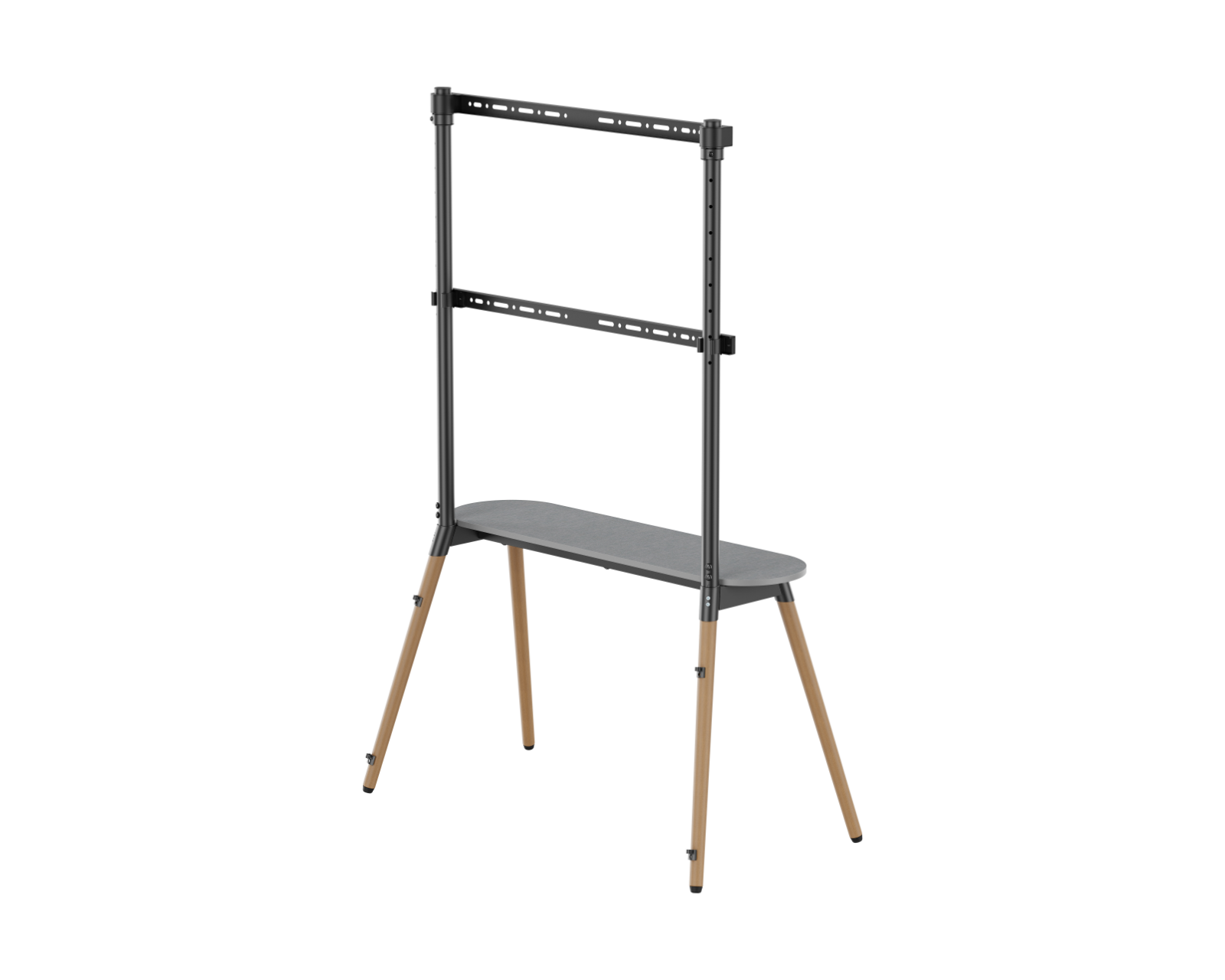 Gulvstativ for TV (49"-86") med oppbevaringshylle fra MaxMount kombinerer funksjonalitet i form av justerbar høyde og ekstra lagringsplass. Stativet støtter TV-apparater mellom 49 og 86 tommer og er VESA-kompatibelt med monteringshull opp til 600x400 mm. Maksimal vektkapasitet for stativet er 50 kg, noe som gjør det egnet for flere typer TV-apparater.Materialvalgene for stativet inkluderer stål, partikkelplate og melamin, med en overflatefinish i pulverlakk. Det er konstruert for å være stabilt og robust, og det har beskyttende pads for å forhindre riper og gi en stabil base. For å holde kablene organisert inngår det også et kabelhåndteringssystem, som ytterligere forbedrer brukeropplevelsen. Stativet har også en oppbevaringshylle med kapasitet opp til 10 kg for ekstra tilbehør, noe som gjør det mer funksjonelt i hjemmet eller kontoret.