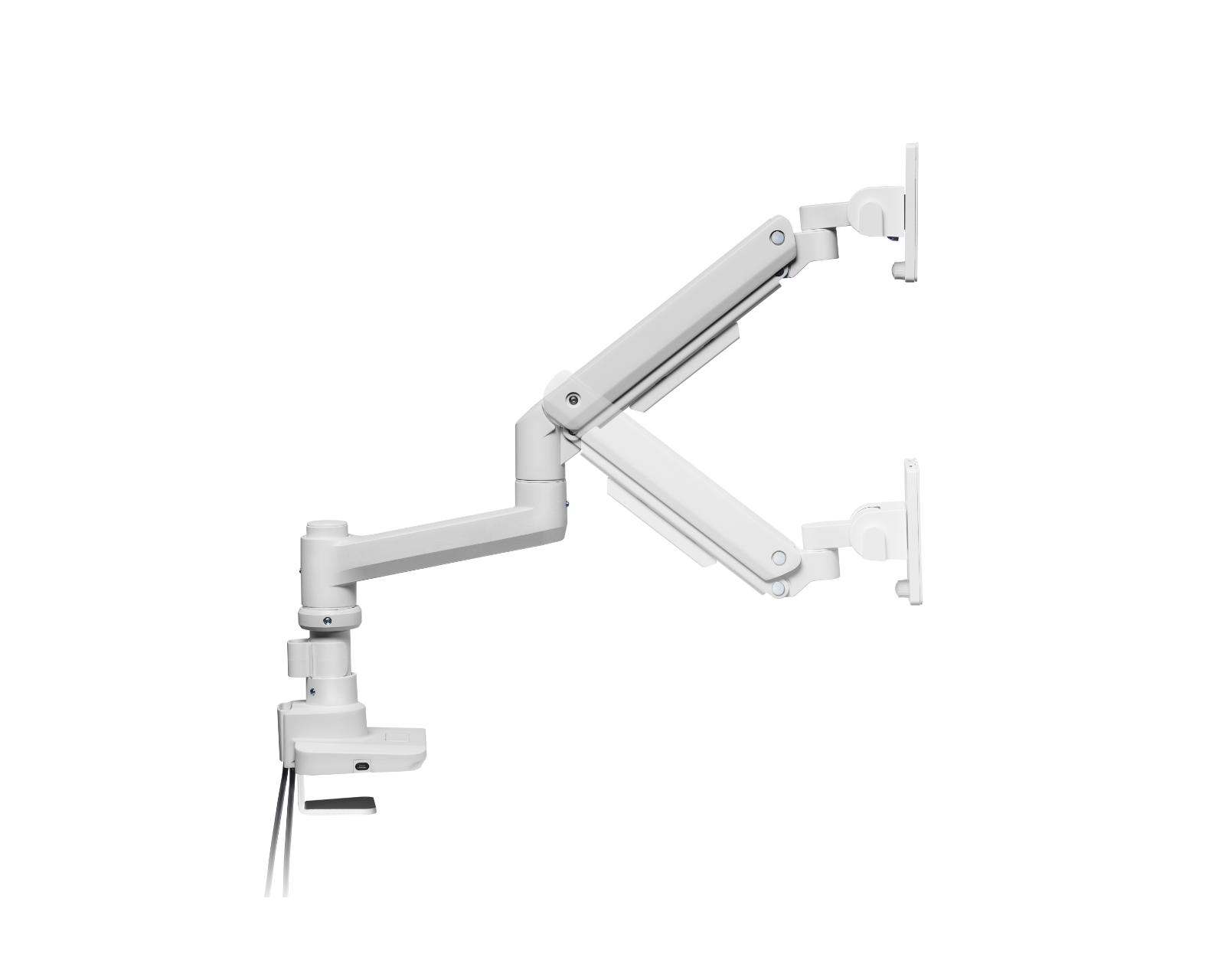 Skjermstativ 20kg Heavy-Duty 17"-49" med USB-porter er et høykvalitetsprodukt fra MaxMount, ideelt for gamere som søker en ergonomisk og fleksibel skrivebordsoppsett. Dette skjermstativet kan støtte skjermer opptil 49 tommer og maks 20 kg, noe som gjør det perfekt for tunge gamingmonitorer og profesjonelle skjermer. I tillegg er det designet for enkelt å tilpasse visningsvinkler, noe som minimerer belastningen på øyne og nakke.Den holdbare konstruksjonen av aluminium og stål garanterer stabilitet og lang levetid. Montering skjer enkelt via en klemme, noe som sparer plass og gjør installasjonen rask og effektiv. Stativene har overlegen gasfjærteknologi for problemfri justerbarhet, som gjør det mulig å lene, svinge eller rotere skjermen med letthet. USB-A og USB-C-portene gjør at du kan koble til enhetene dine nært til hånden og opprettholde et organisert arbeidsområde. Kabelhåndteringssystemet holder kablene på plass, noe som bidrar til et renere arbeidsmiljø.