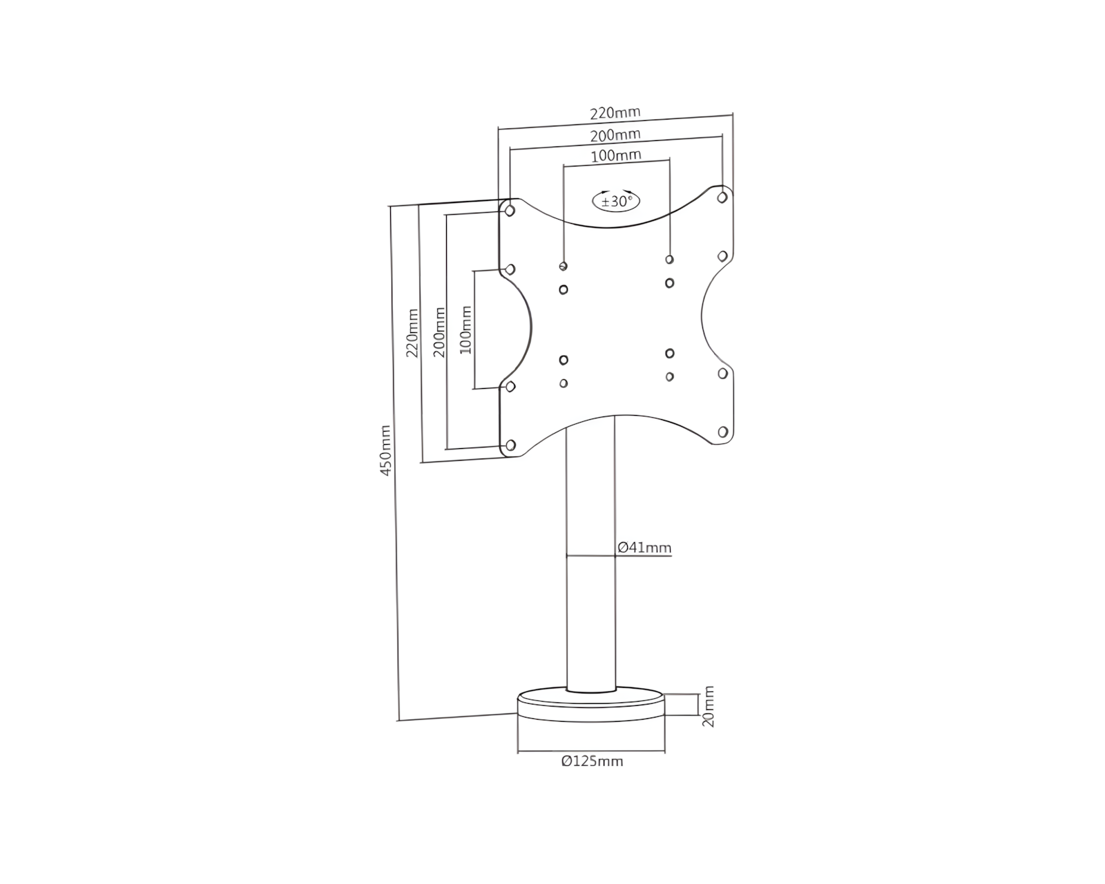 Svivelbart bordstativ for TV med boltmontering fra MaxMount er en pålitelig løsning for skjermer mellom 23” og 43”. Denne TV-holderen muliggjør en svivling på 30° både til venstre og høyre, noe som optimaliserer visningsvinkelen og reduserer risikoen for kollisjon med veggen. Med et nøkkelhullsmønster for installasjon kan brukeren raskt og effektivt montere stativet.Stativet er konstruert med en solid bunnfeste som gir et stabilt støtte og øker sikkerheten for TV-en, noe som gjør at det kan håndtere en maksimal vekt på opptil 50 kg. Integrert kabelhåndtering sikrer en organisert installasjon og minimerer trassel. Den svingbare armen gjør det mulig å justere visningsvinkelen for bedre tilpasning til rommet og brukerens behov. Med en konstruksjon av plast og stål sikres både holdbarhet og langvarig bruk.