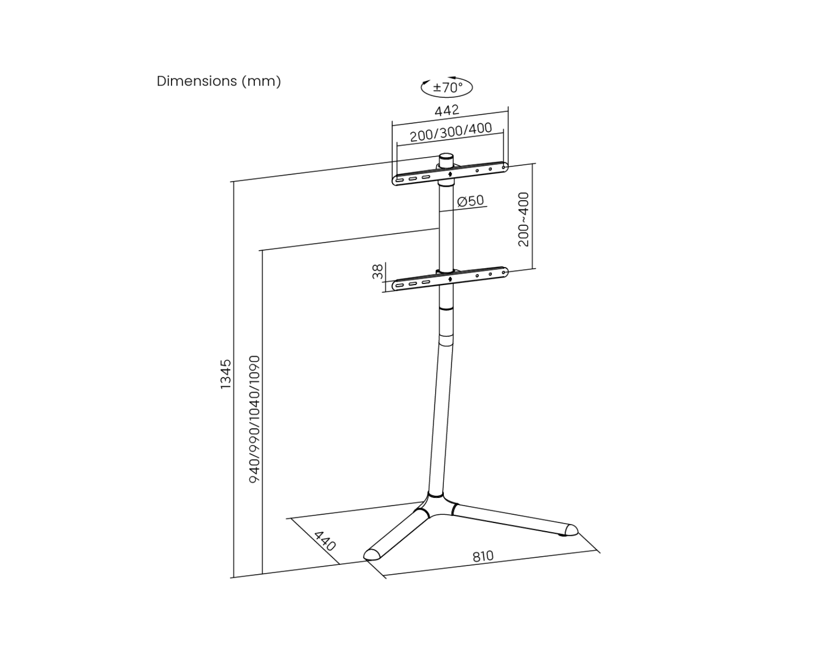 - Støtter TV-apparater mellom 32"–70"