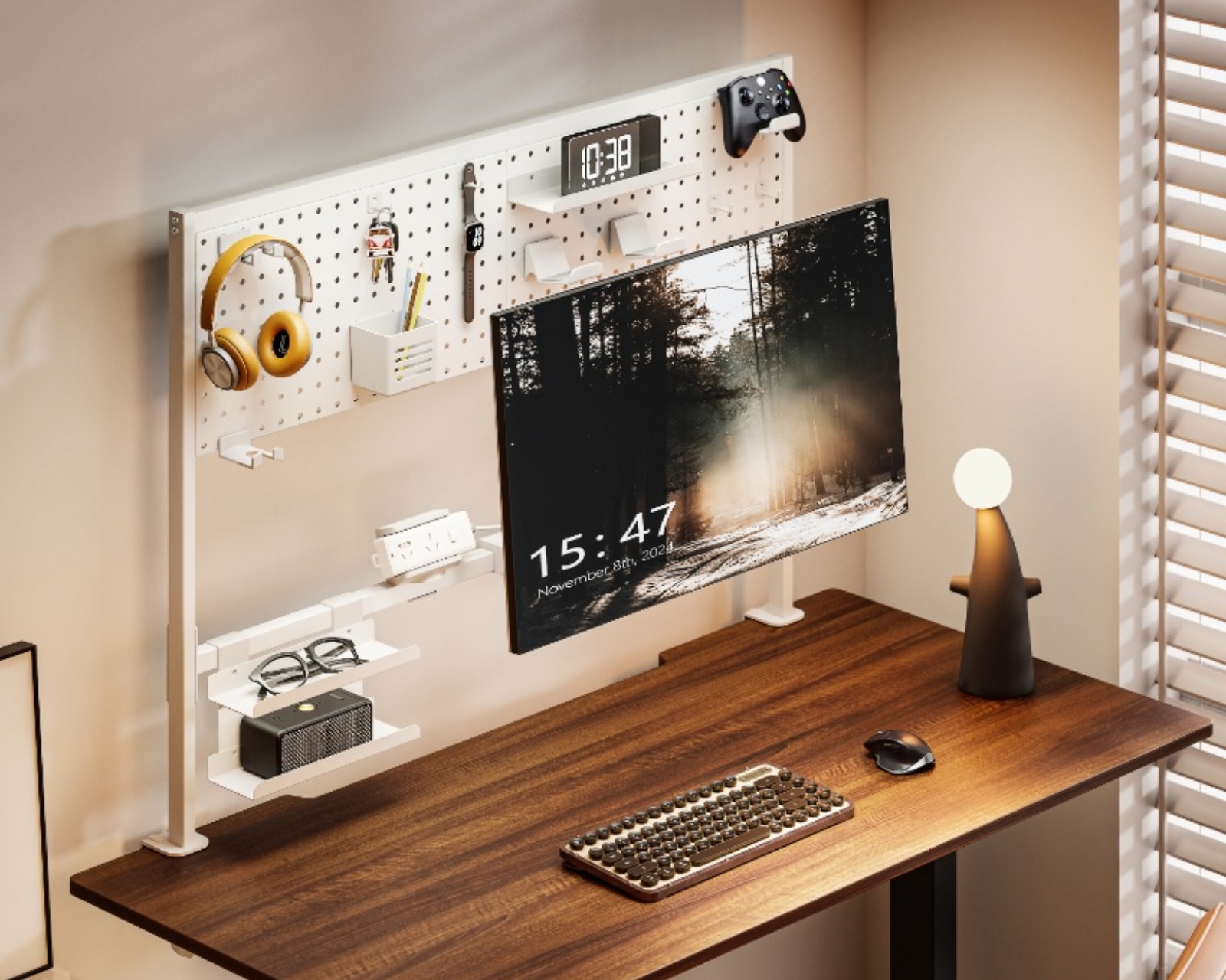 Multifunksjonell oppbevaringsplate med skjermstativ er en arbeidsyteløsning fra MaxMount som har som mål å effektivisere og organisere arbeidsplassen. Produktet er designet for å passe skrivebord med lengder på 1200 mm eller 1400 mm.Den kombinerer en modulær hylle med en monitorarm som tilbyr fleksibel justering for optimalt synsfelt. Denne oppbevaringsplaten er egnet for både kontormiljøer og hjemmekontor, og gir en praktisk og stilren løsning for arbeidsflater. Materialvalgene i konstruksjonen sikrer holdbarhet og stabilitet, og klemmonteringen gjør det enkelt å feste den til bordet uten behov for permanente installasjoner.