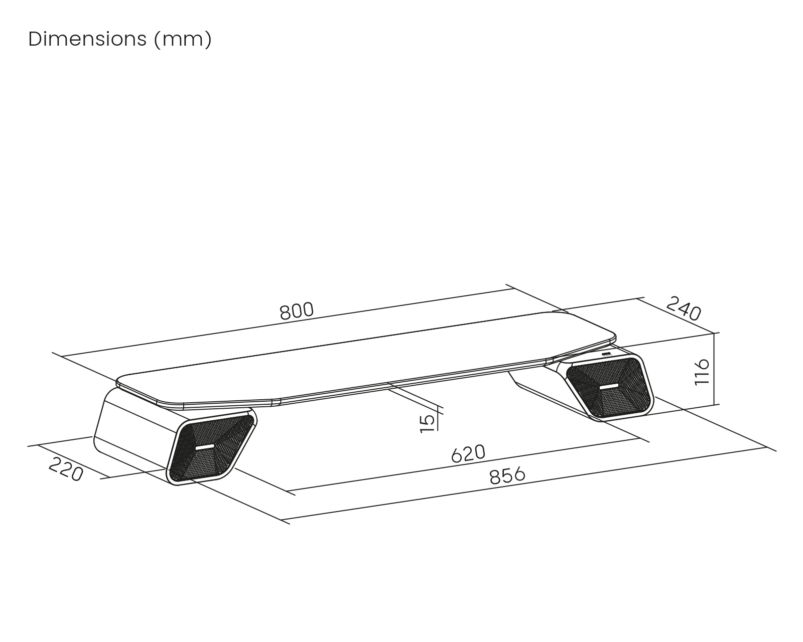Vi introduserer MaxMount Monitor Stand med innebygde høyttalere, den ultimate løsningen for å heve arbeidsområdet og forenkle oppsettet! Dette innovative produktet kombinerer funksjonaliteten til en skjermstige og kraftige høyttalere i et elegant og moderne design. Lei av rotet på skrivebordet ditt? Si farvel til sammenfiltrede kabler og klumpete høyttalere, og si hei til et rent, minimalistisk skrivebord.MaxMount Monitor Stand er laget med et trefiberhøyttalerkabinett og gir en eksepsjonell lydopplevelse. Den overvinner lydbarrierer uten problemer og sikrer at hvert slag, tone og dialog blir levert med den største klarhet. Fordyp deg i førsteklasses lydkvalitet og løft arbeids- eller underholdningsopplevelsen til nye høyder.