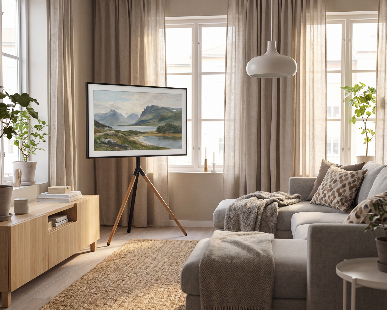 Tripod Stativ for TV 45"-65" er et tv-stativ fra MaxMount som kombinerer enkelhet og eleganse i sitt design. Med kapasitet til å støtte skjermer opptil 65 tommer, tilbyr stativet en svingbar funksjon som tillater justering av visningsvinkelen mellom +70° og -70°. Stativet er passende for både hjemmebruk og profesjonelle miljøer, og er laget av en stabil kombinasjon av stål, aluminium og plast.Konstruksjonen av stativet sikrer at det er både holdbart og stabilt under bruk med en vektkapasitet på 32 kg. De kompakte dimensjonene på 855x465x1370 mm gjør det enkelt å integrere i ulike rom. Modellen er VESA-kompatibel med standarder som strekker seg fra 200x200 mm til 400x400 mm, noe som gjør den kompatibel med et bredt spekter av TV-modeller. Med hjelp av beskyttende pads forhindres uønskede glidninger og riper på gulvet, samtidig som kabelhåndteringen bidrar til å holde kablene organiserte og skjulte. Stativet leveres dessuten med et sikkerhetskit for å forhindre utilsiktet tipping.