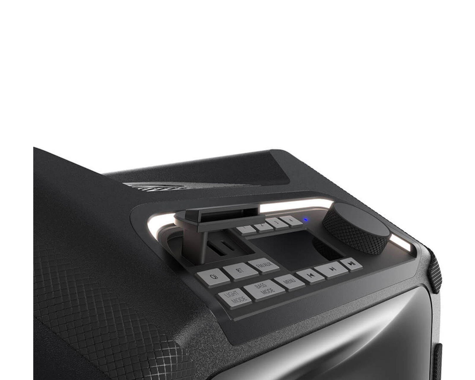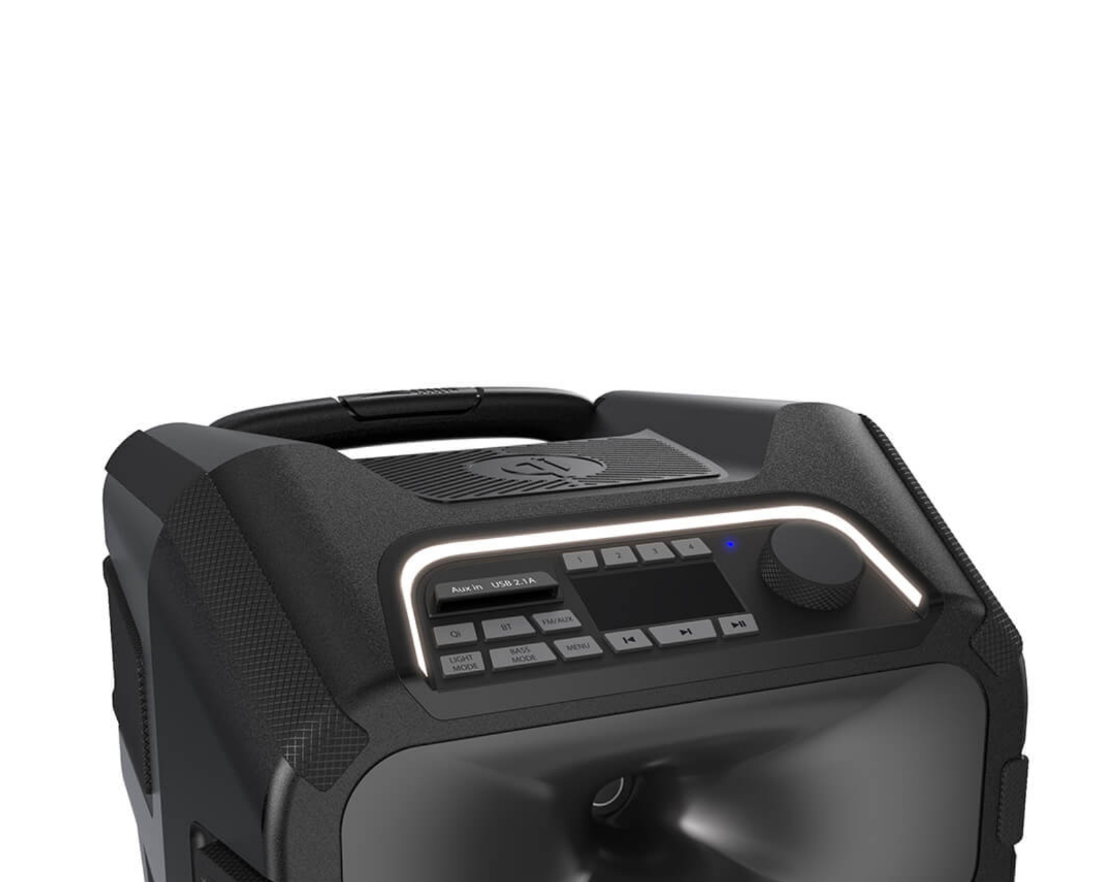 IMT9000 SonicBoom120 høyttaler er en Bluetooth-høyttaler fra Altec Lansing som tilbyr trådløse lydopplevelser med en batteritid på opptil 12 timer. Den er designet for både innendørs og utendørs bruk og gir brukeren muligheten til enkelt å koble til via Bluetooth eller AUX-kabel. Produktet finnes i svart og er ideelt for de som søker en bærbar høyttaler med kraftfull lydgjengivelse.Høyttaleren har en robust byggkvalitet som gir holdbarhet og pålitelighet, noe som gjør den egnet for aktive brukere. Den bruker Bluetooth-teknologi for trådløs tilkobling og støtter også AUX-tilkoblinger for flere bruksalternativer. Med en vekt på enheten tilpasses den lett for transport og passer i ulike miljøer. Dens design er funksjonell, noe som gir enkel tilgang til kontroller. IMT9000 SonicBoom120 har komponenter som optimaliserer lydytelsen, noe som gir en balansert og klar lydopplevelse.
