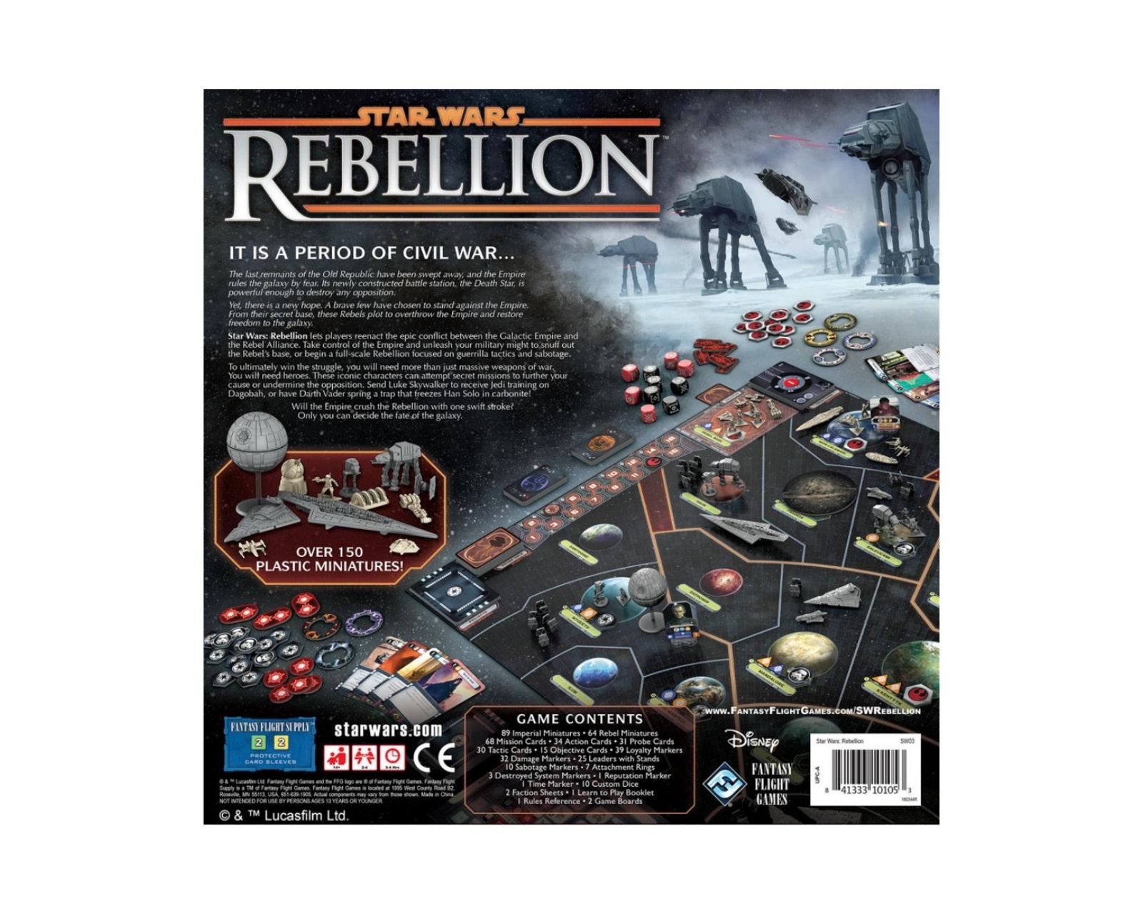 Star Wars: Rebellion er et brettspill som utspiller seg under den galaktiske borgerkrigen mellom Galactic Empire og Rebel Alliance. Spillet er lagt til rette for to til fire spillere og er designet for å gjenskape den episke konflikten der begge sider har spesifikke mål og strategier for seier. Spillerne tar på seg rollene som enten det skremmende Imperiet eller de opplyste Rebelene, noe som avgjør deres tilnærming i spillet.Rebellion inneholder over 150 plastminiatyrer og to spillbrett som representerer 32 av de mest kjente systemene i Star Wars-galaksen. Spillerne må håndtere romskip, gjennomføre troppetransporter og verve hele systemer til sin side. Imperie-spilleren kontrollerer sterke enheter som Stormtroopers og Star Destroyers, mens Rebel-spilleren bruker strategiske angrep og diplomatiske innsats for å vinne støtte blant galaksens innbyggere. Hver karakter, fra Leia Organa til Darth Vader, har unike evner som påvirker spillets gang.