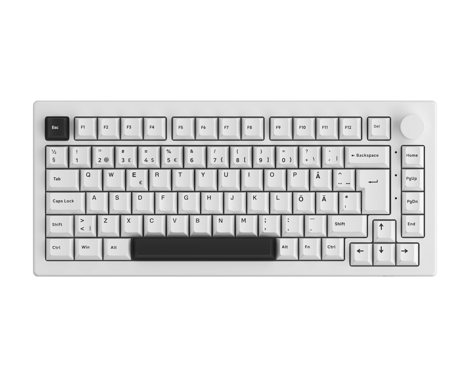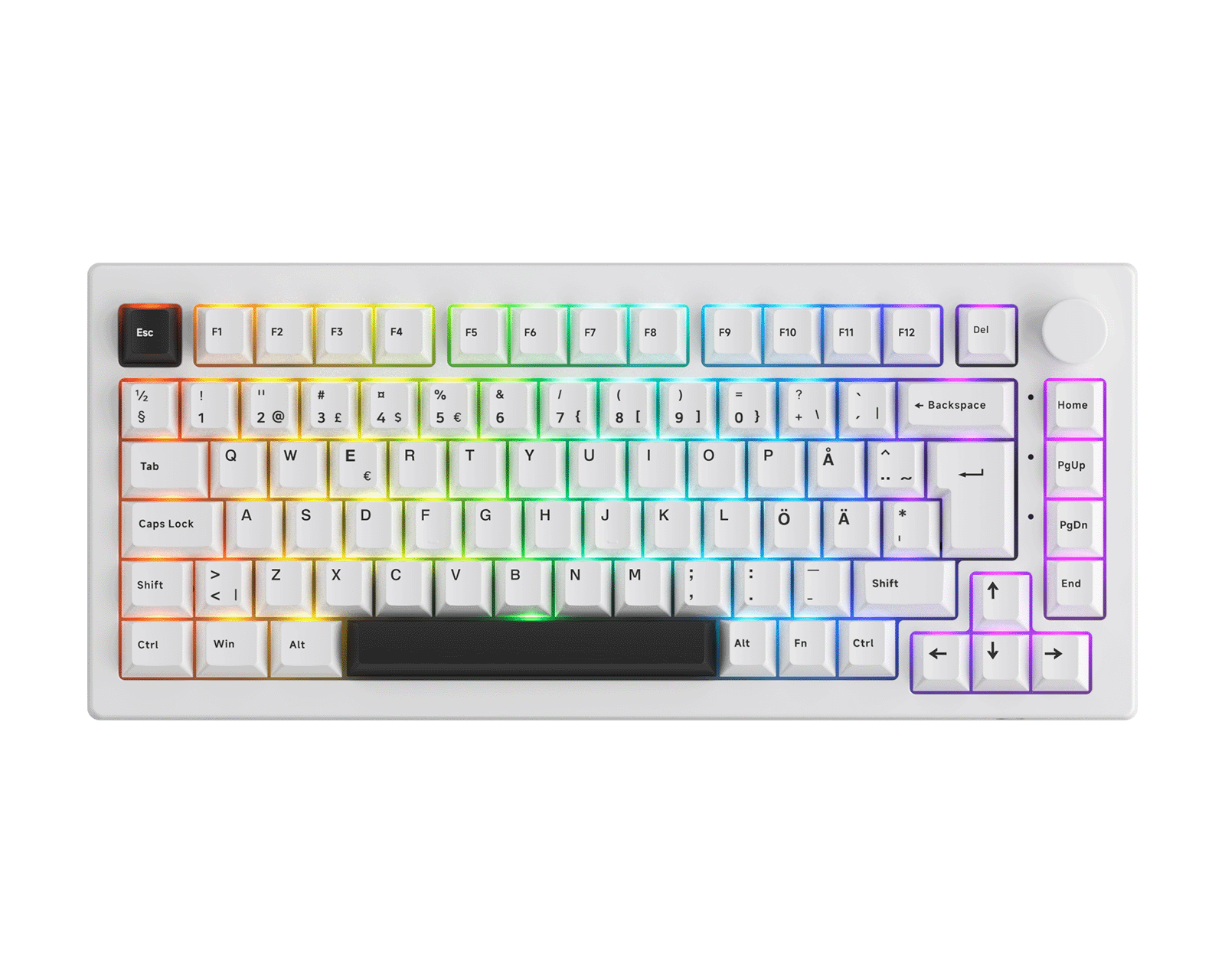 Hot swappable funksjonalitet og dens innovative gasket mount gir en myk og dempet skriveopplevelse. Det smidige roterende hjulet tilbyr rask justering av lys og volum, noe som optimaliserer arbeidsflyten. Dets PBT double shot-taster sikrer langvarig kvalitet og estetikk.