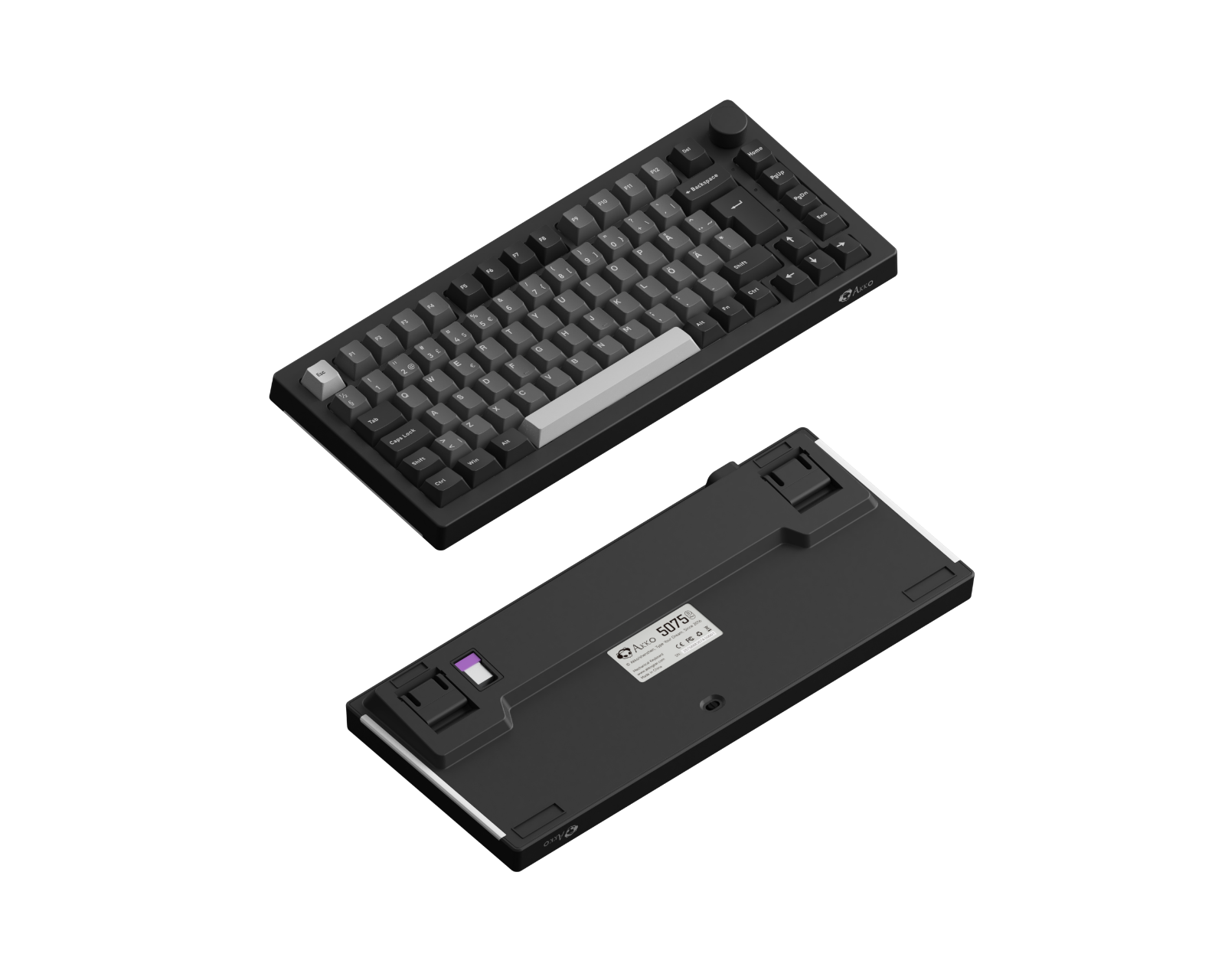 Akko 5075B Plus-S Black & Silver Trådløst Tastatur - Svart [V3 Lavender Purple Pro] (DEMO)