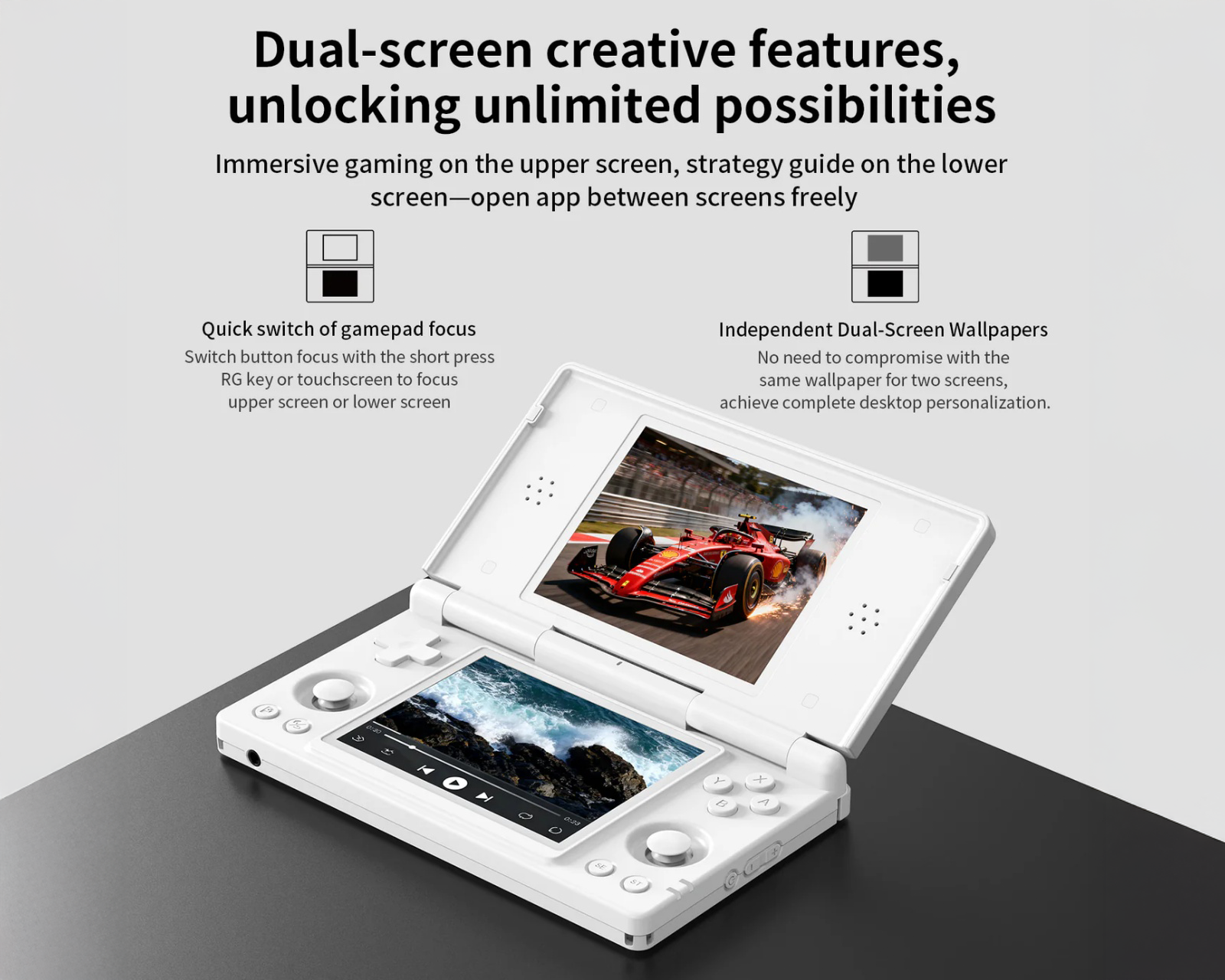 Med en RK3568-prosessor og 3 GB RAM tilbyr den jevn emulering av konsoller som PS1 og N64. Enheten har et solid clamshell-design og inkluderer blant annet hall-sensorer og gyro. Lagringen er på 32 GB internt og støtter ekstern lagring via microSD opptil 2 TB, noe som gir god plass til spill og applikasjoner.