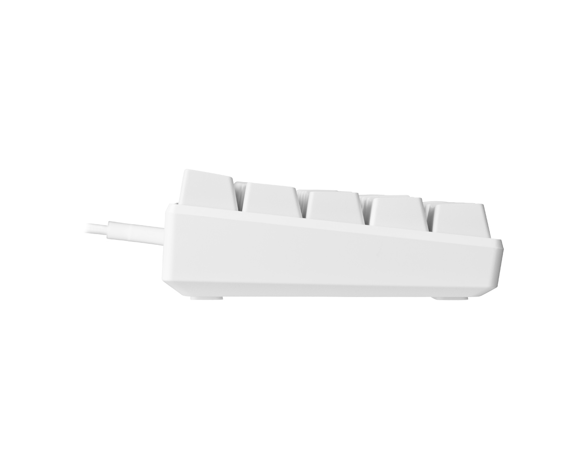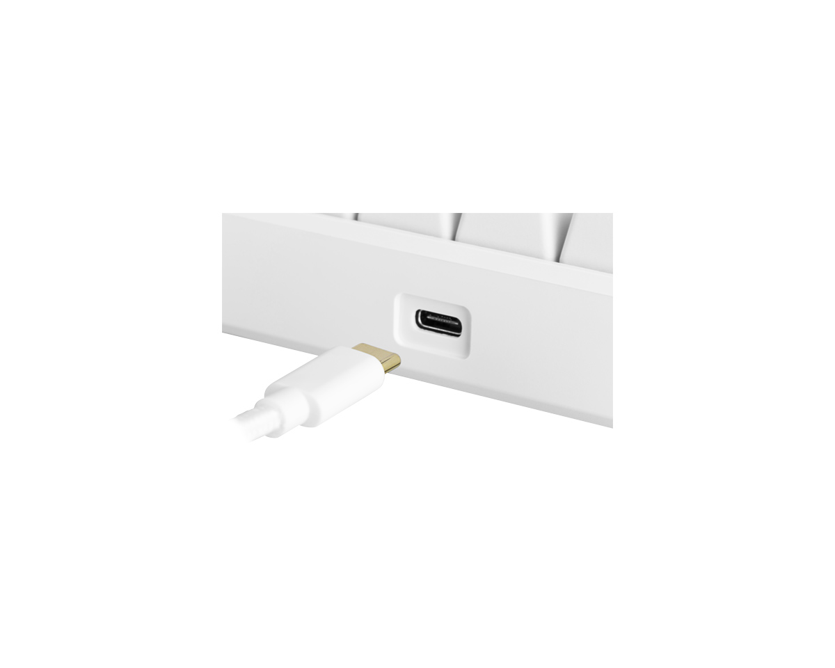 Stilrent mekanisk tastatur i hvitt design. Dette er det perfekte tastaturet for deg som elsker å være på LAN, eller helt enkelt for deg som vil maksimere overflaten på skrivebordet. Uansett årsak vil dette tastaturet maksimere spillområdet ditt, slik at du får mer plass til mus og musematte, og gjøre at tastaturet aldri er i veien for bevegelsene dine med musen. Avtakbar 1,8 m USB-C-ledning for et smidig og portabelt tastatur.