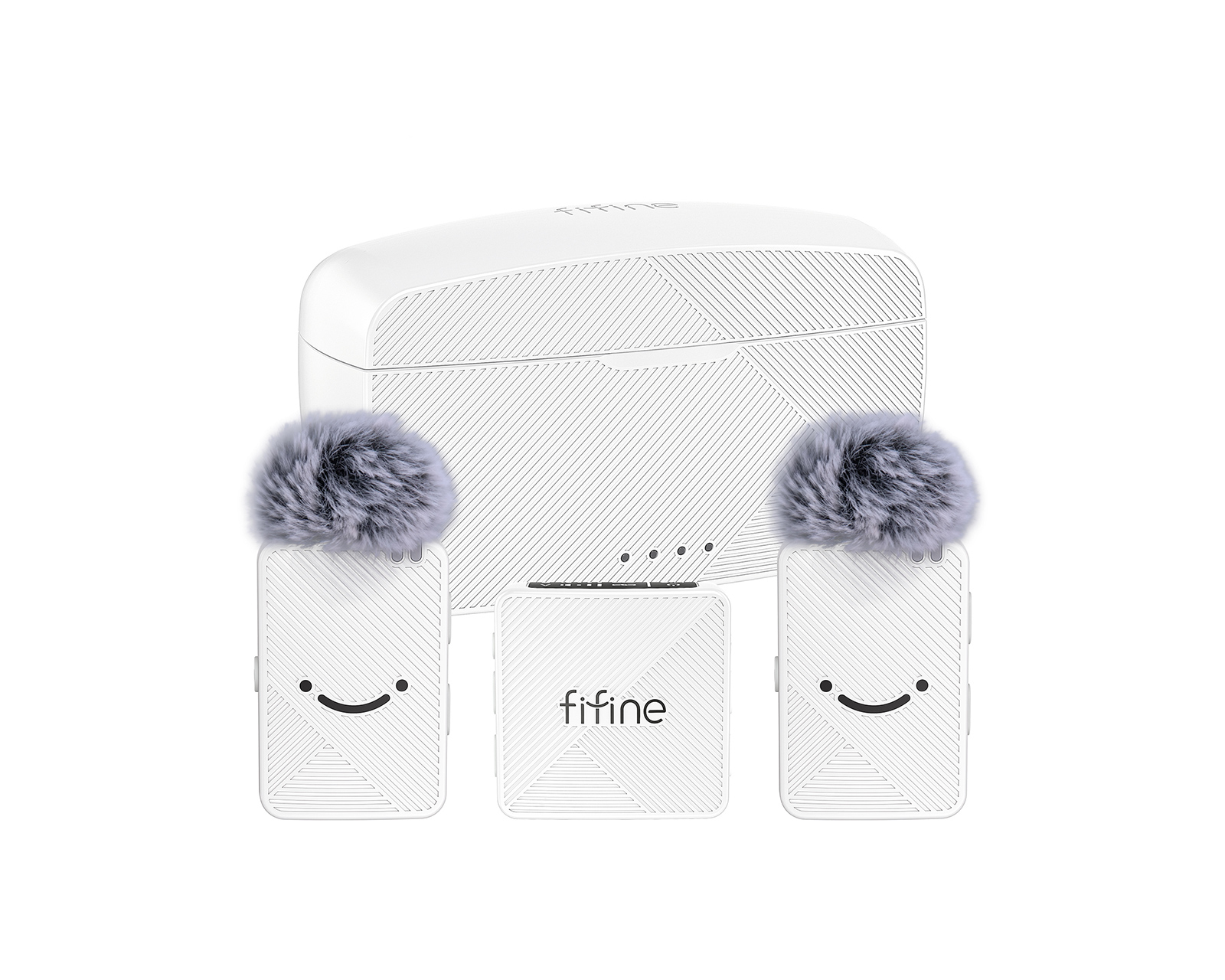 Fifine M9 Dual Wireless Microphone System - Trådløs Mikrofon - Hvit (DEMO)