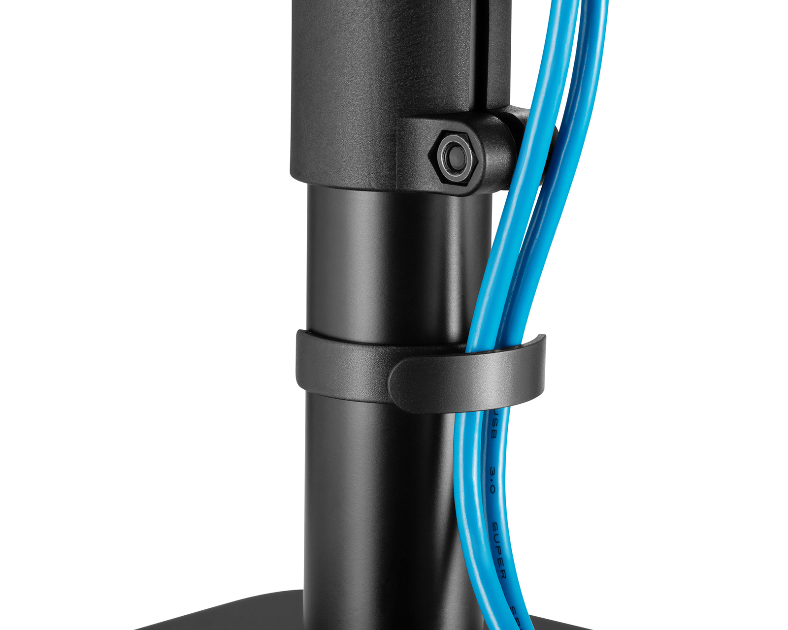 Takket være det integrerte kabelsystemet og det vibrasjonsreduserende designet med øvre silikonplate skaper et pent og ryddig miljø. Klipsbasen hjelper også med å gjenvinne mer av den verdifulle skrivebordsplassen din - og frigjør den for annen bruk.