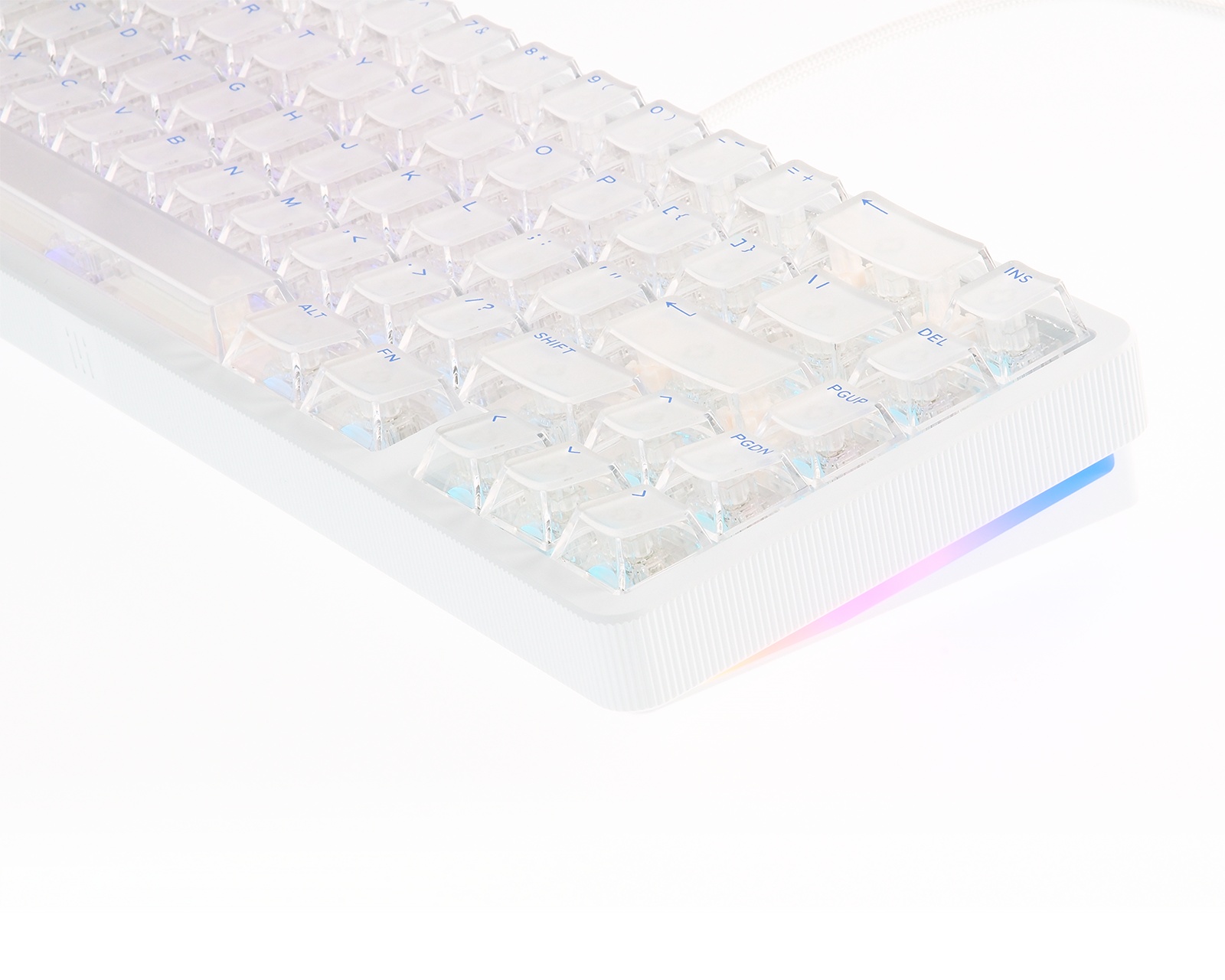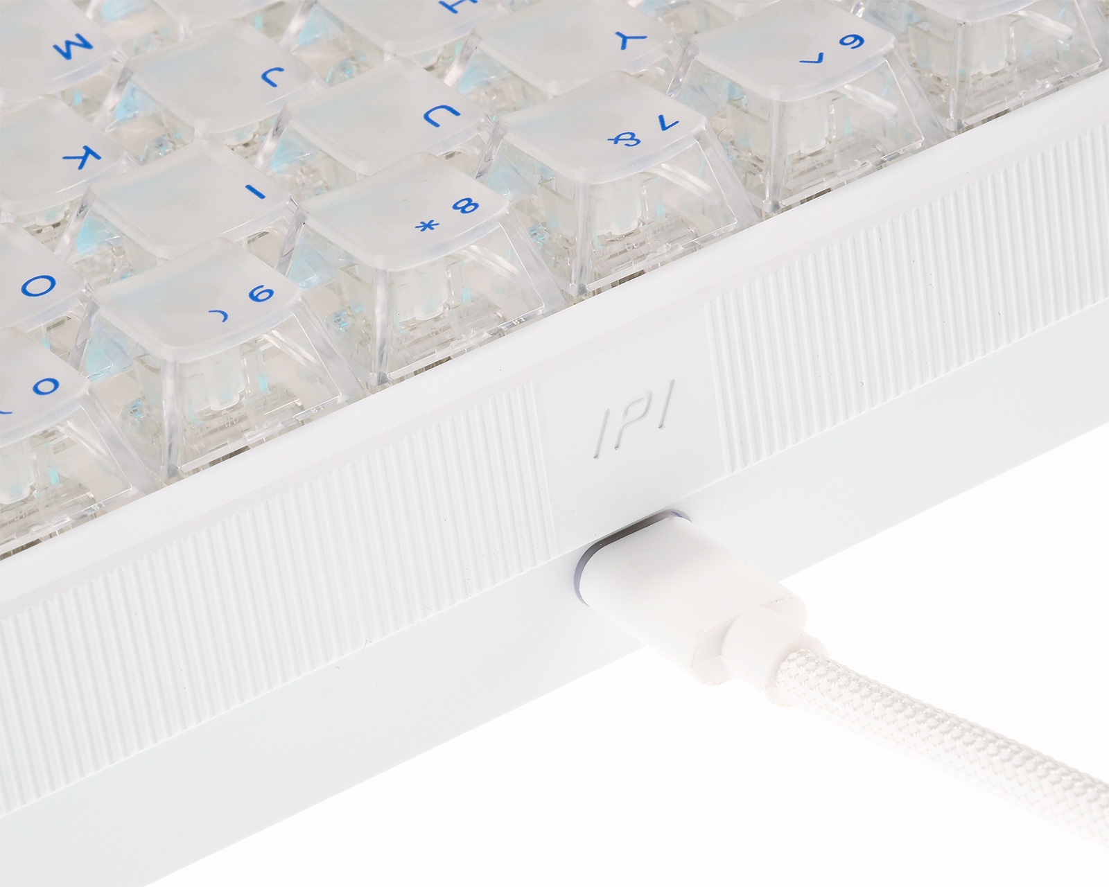 Huset er laget av CNC-frest metall i 180 mesh 6063 aluminiumlegering, behandlet med anodisering for en slitesterk og stilren finish. Tastaturet er utstyrt med PBT keycaps med gradientdesign og double-shot teknikk, som gir en premiumfølelse og lang holdbarhet. Den interne strukturen består av fem lag lyddemping (PORON + IXPE) for en stille og solid skriveopplevelse.