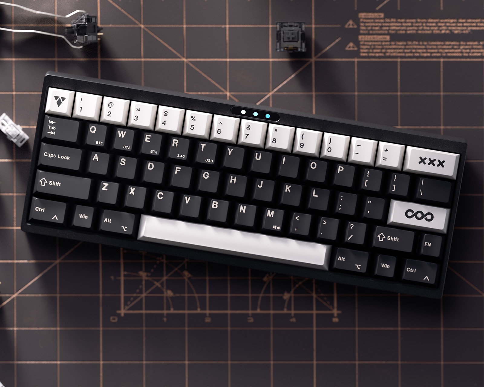 - Kompakt 60% ANSI/ISO-layout med tilpassbare tastealternativer