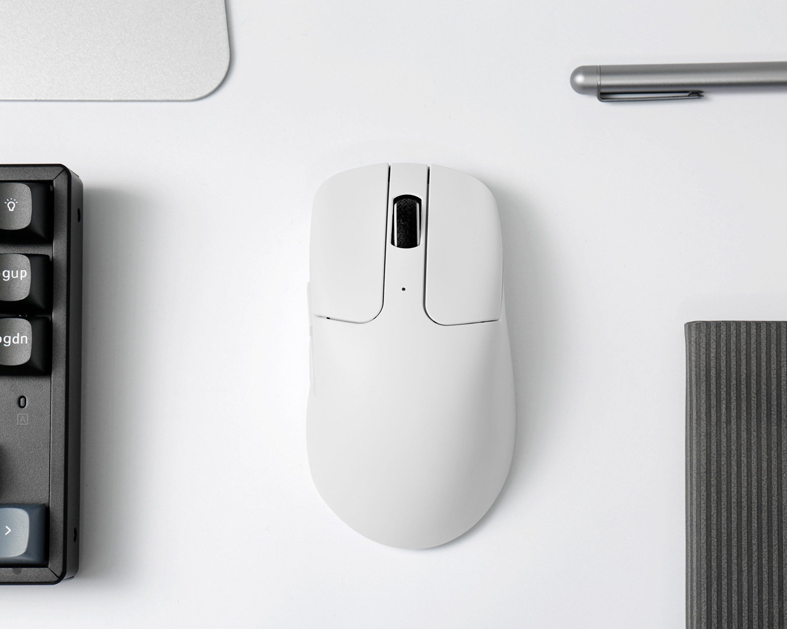 Musen er lett som en fjær og veier bare 50 gram, noe som gjør den enkel å bruke hele dagen. Manøvrer den buede, ergonomiske kroppen med letthet takket være det behagelige asymmetriske designet som former seg perfekt etter hånden din. De førsteklasses Huano-bryterne gir tilfredsstillende klikk ved hvert trykk, mens den optiske PixArt 3395-sensoren gir nøyaktig presisjon og flytende sporing opp til 26 000 DPI.