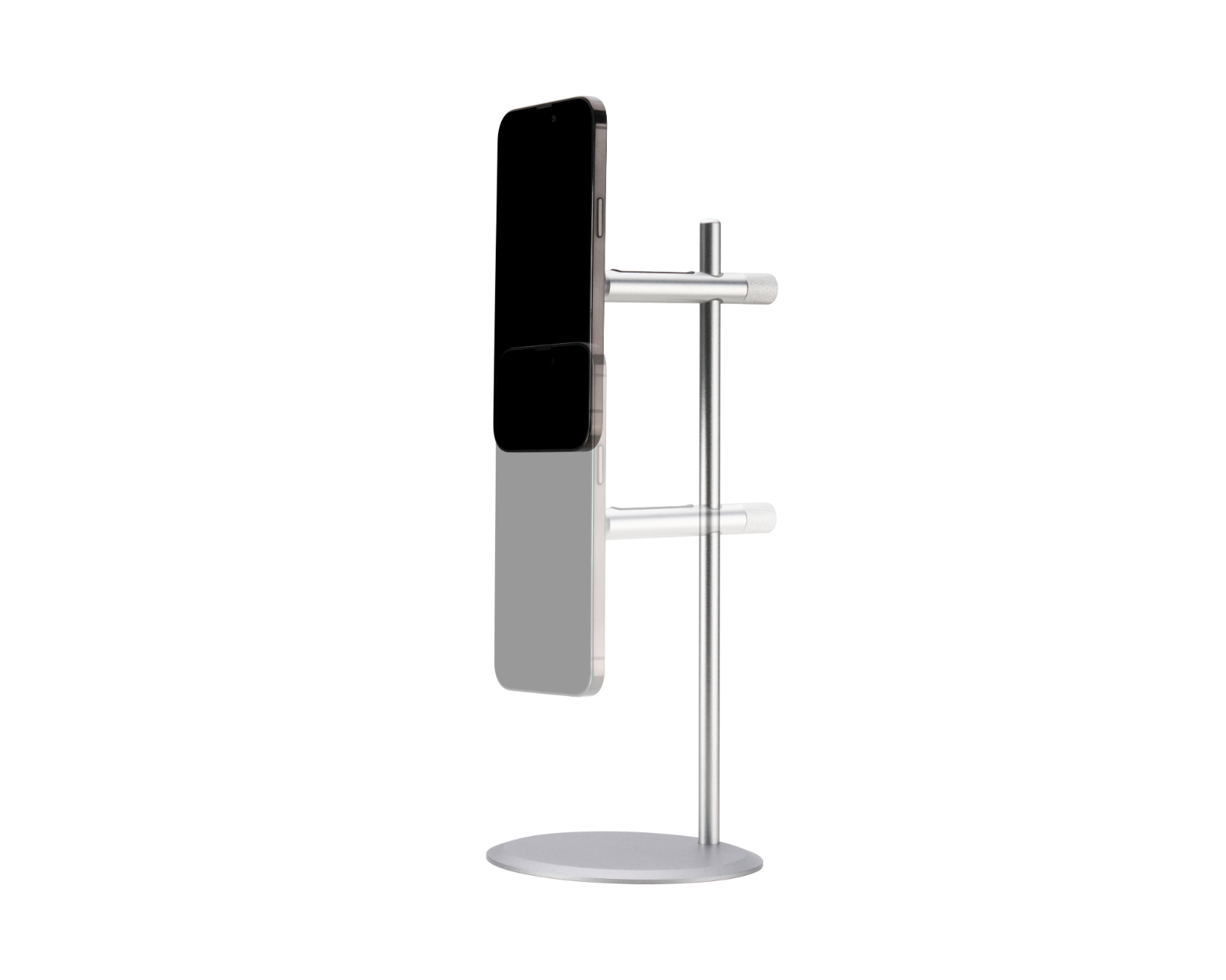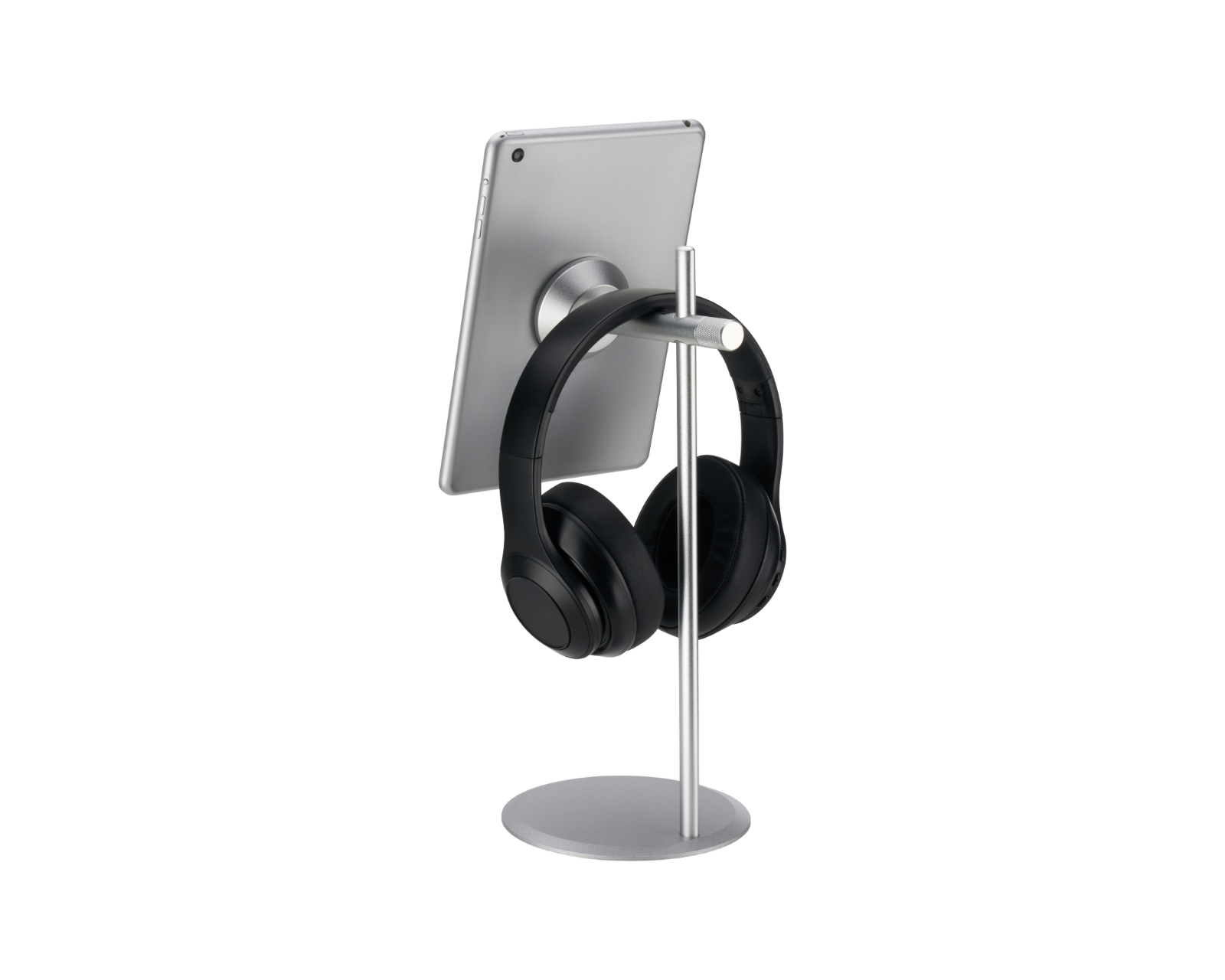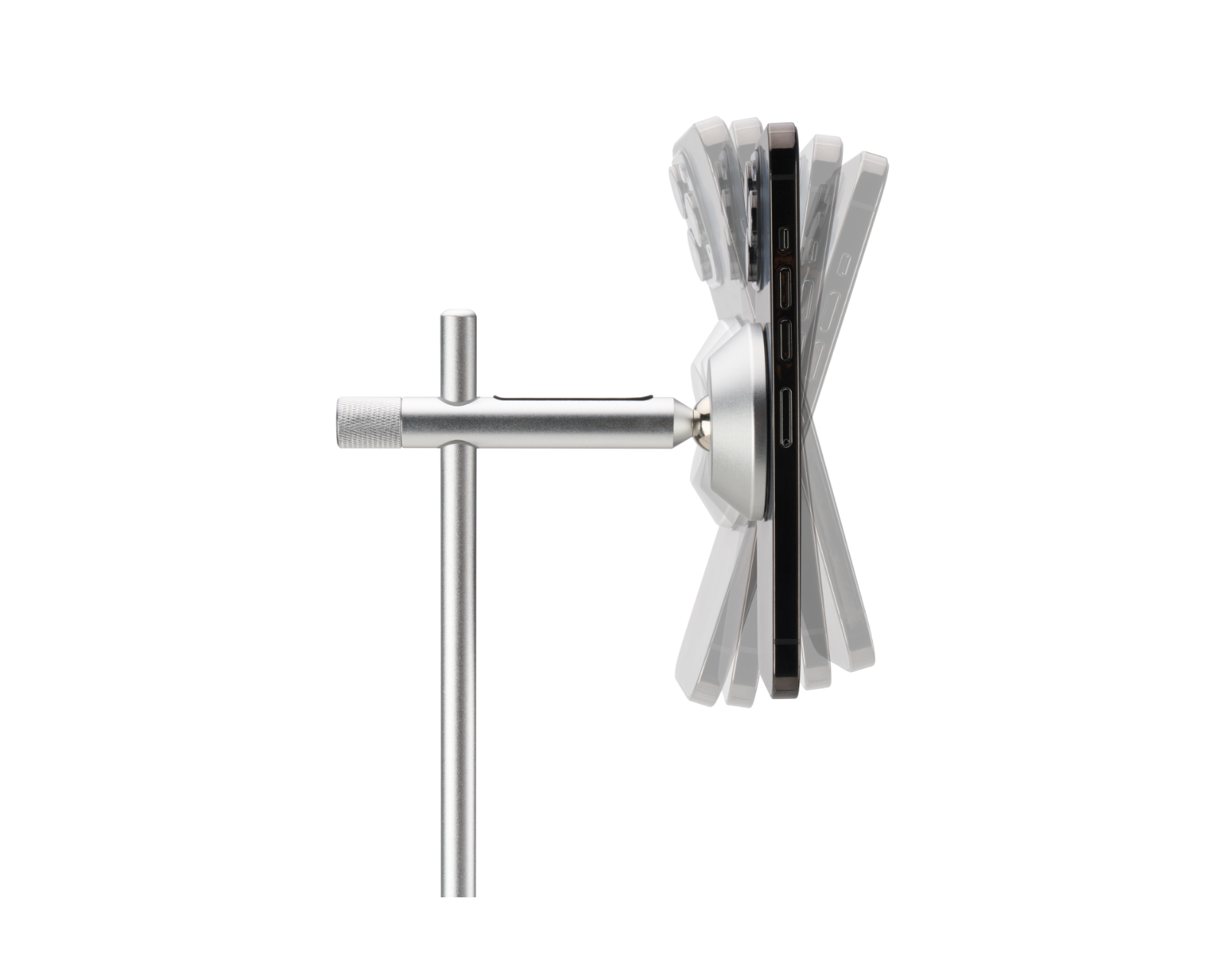 Konstruksjonen er laget av aluminium, noe som gir både styrke og et lett design. Magnetfeste sikrer enhetens plassering og gjør det enkelt å ta av eller sette tilbake telefoner og nettbrett med en skjermstørrelse på opptil 10 tommer. Den er designet for en bred brukergruppe og passer perfekt i ulike miljøer, fra kontorlokaler til hjemmekontor. Anti-skli pads beskytter overflaten under, noe som hindrer skader på skrivebordet. Stativet tillater både vertikal og horisontal visning, noe som gir sluttbrukeren allsidighet under bruk.