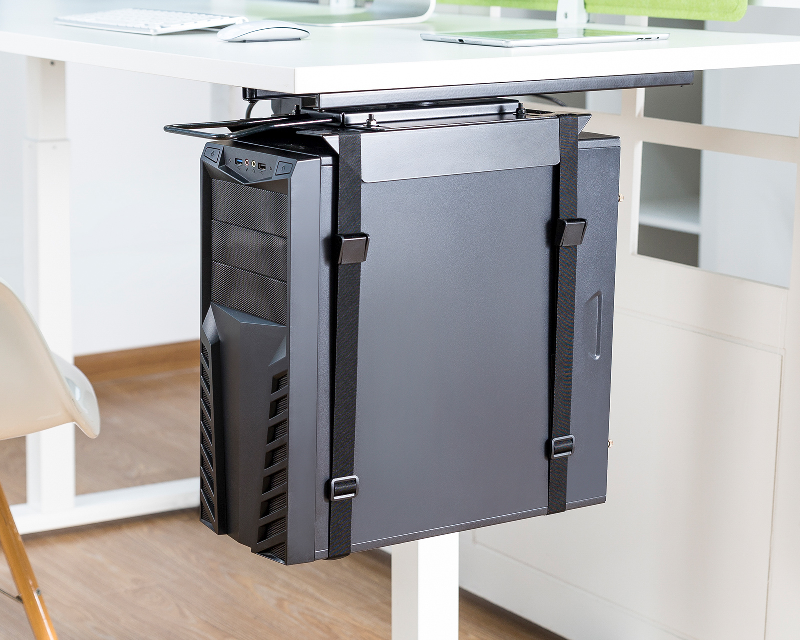 Vi introduserer MaxMount Strap-On Under-Desk CPU Holder - den ultimate løsningen for å frigjøre plass og beskytte ditt verdifulle datakabinett. Med sitt bærbare remdesign er denne CPU-holderen enkel å installere og monterer sikkert din CPU under skrivebordet.