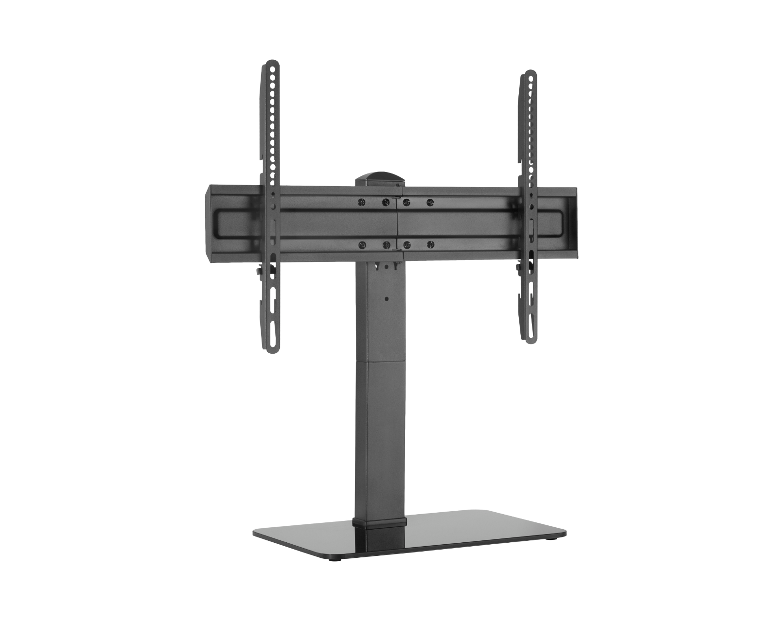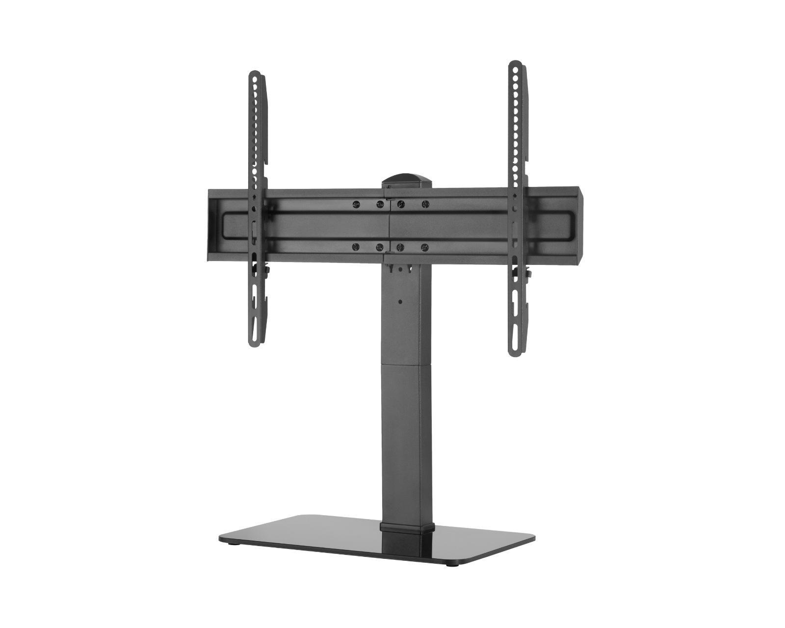 Stativet er laget av høykvalitetskomponenter, noe som sikrer stabilitet og holdbarhet. Den vertikale høydejusteringen gjør at brukeren kan plassere TV-en på en optimal høyde avhengig av rommet. Glassbasen gir positiv innvirkning på tyngdepunktet, noe som bidrar til stabilitet i alle vinkler. Det er dessuten enklere å transportere og oppbevare takket være den reduserte pakke størrelsen, noe som reduserer kostnader for frakt og lager, noe som er relevant for selgere på e-handelsplattformer.