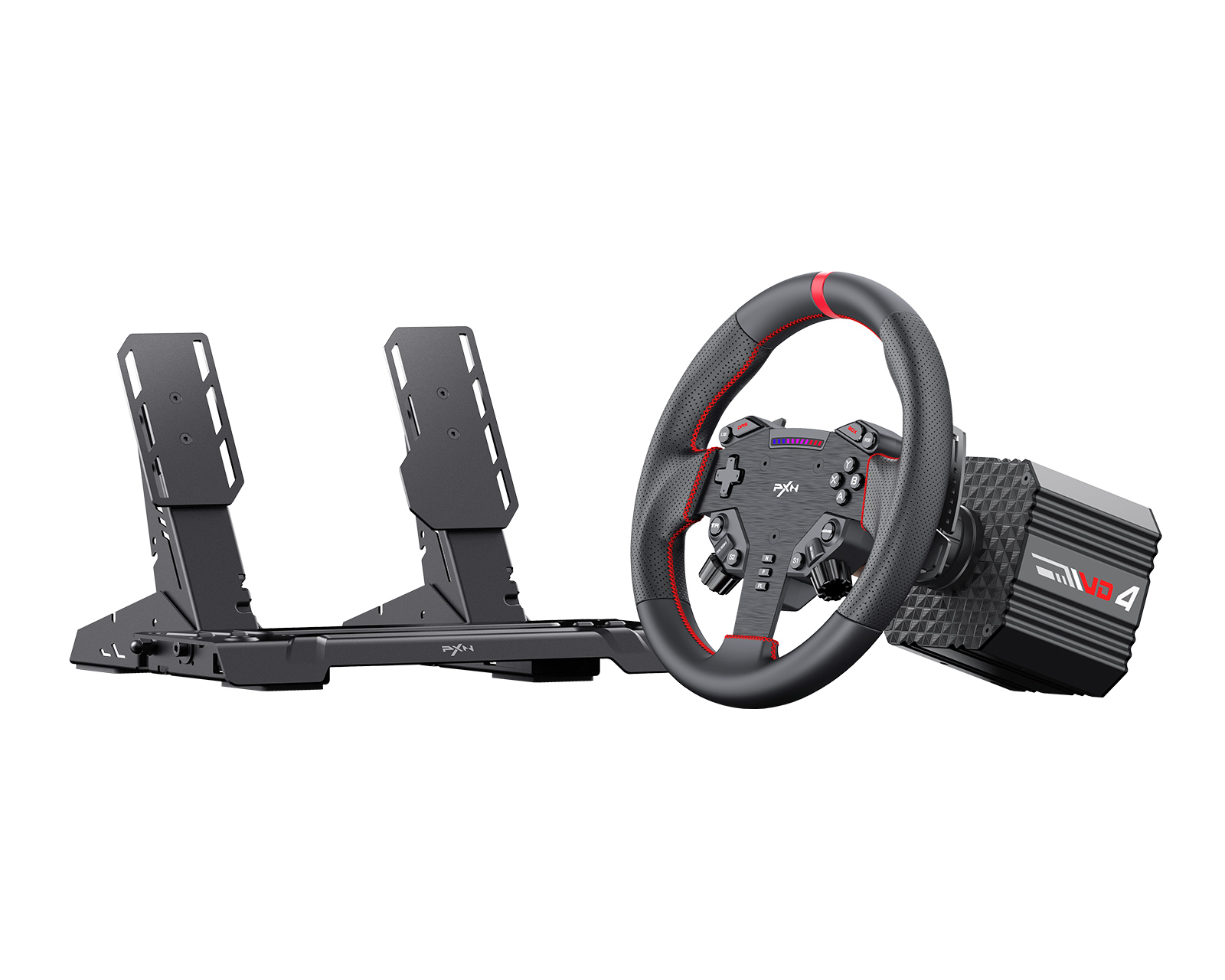 PXN VD4 direktevirkende base bruker en lav-inerti servomotor med 20 poler, som leverer 4 Nm kontinuerlig og 5 Nm i toppmoment. Systemet har en 24-bits magnetkoder og en flerprosess som sammen med Sense+-algoritmen sikrer nøyaktig krafttilbakemelding. Aluminiumschassiset og det smarte temperaturkontrollsystemet gjør at ytelsen forblir stabil under lengre spillsesjoner.