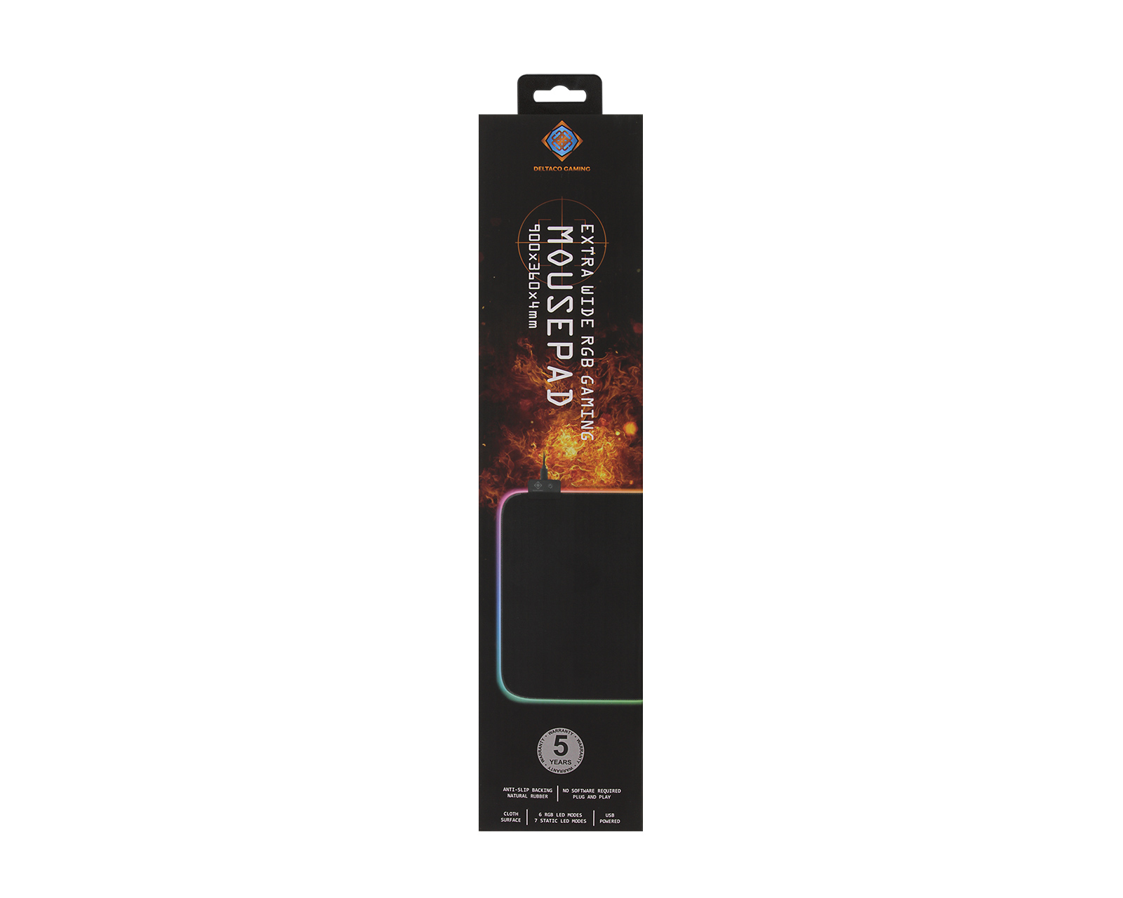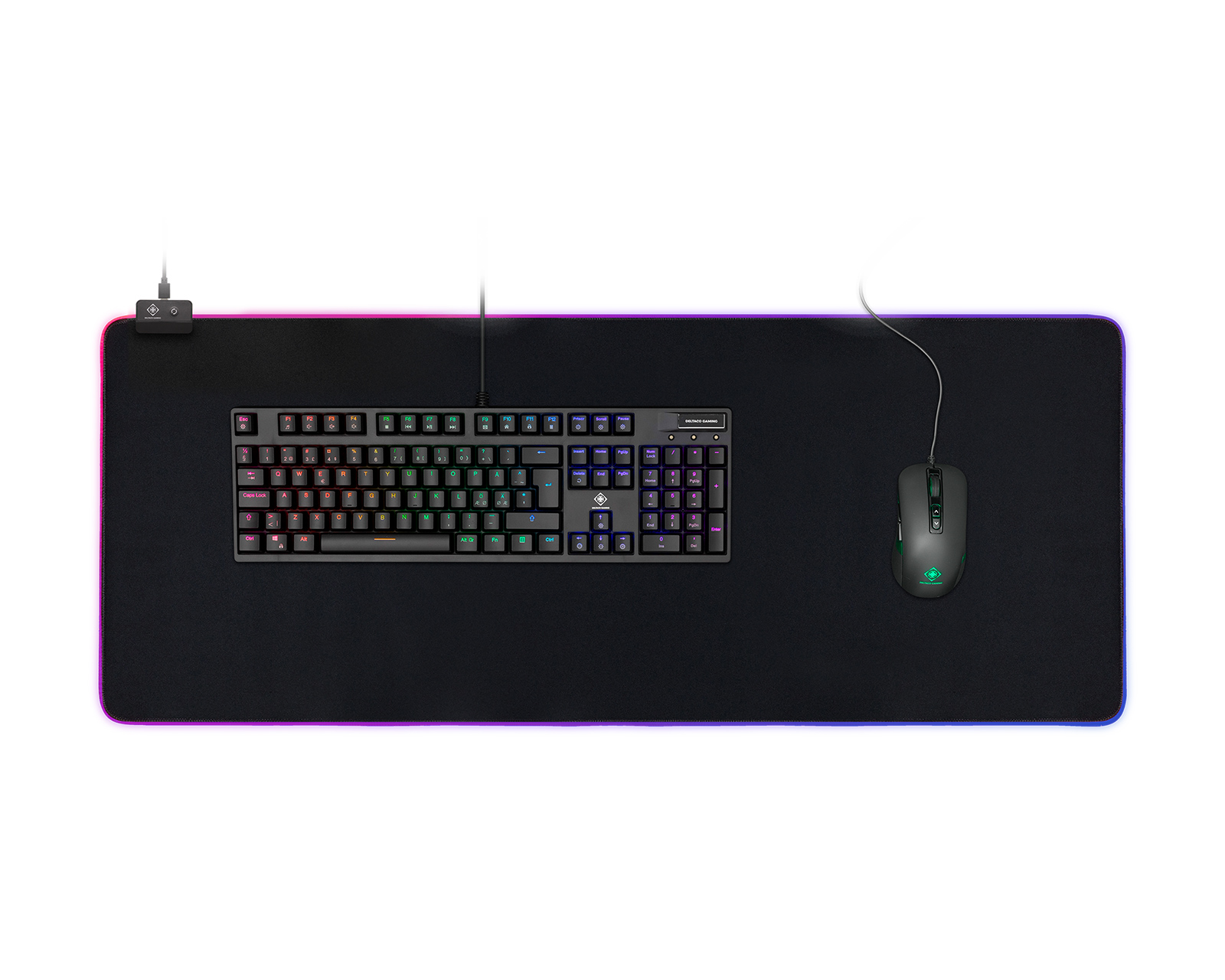 DEMO: Återköp och testexemplar. Bra skick.Gaming musemåtte med RGB belysning på siderne. Overdelen er lavet af behageligt stof til en blød og præcis bevægelse med musen. RGB-belysning styres med en simpel knap i øverste venstre hjørne, der skifter mellem de forskellige belysningstilstande. Ingen software er nødvendig, men belysningen er helt plug and play, tæppet er tilsluttet til din computer eller en USB-strømkilde (mindst 5V 100mA) via det 1,5 m inkluderede USB-A - Micro-B-kabel. Nederst på musematten finder du naturgummi, der holder musematten sikkert på plads.