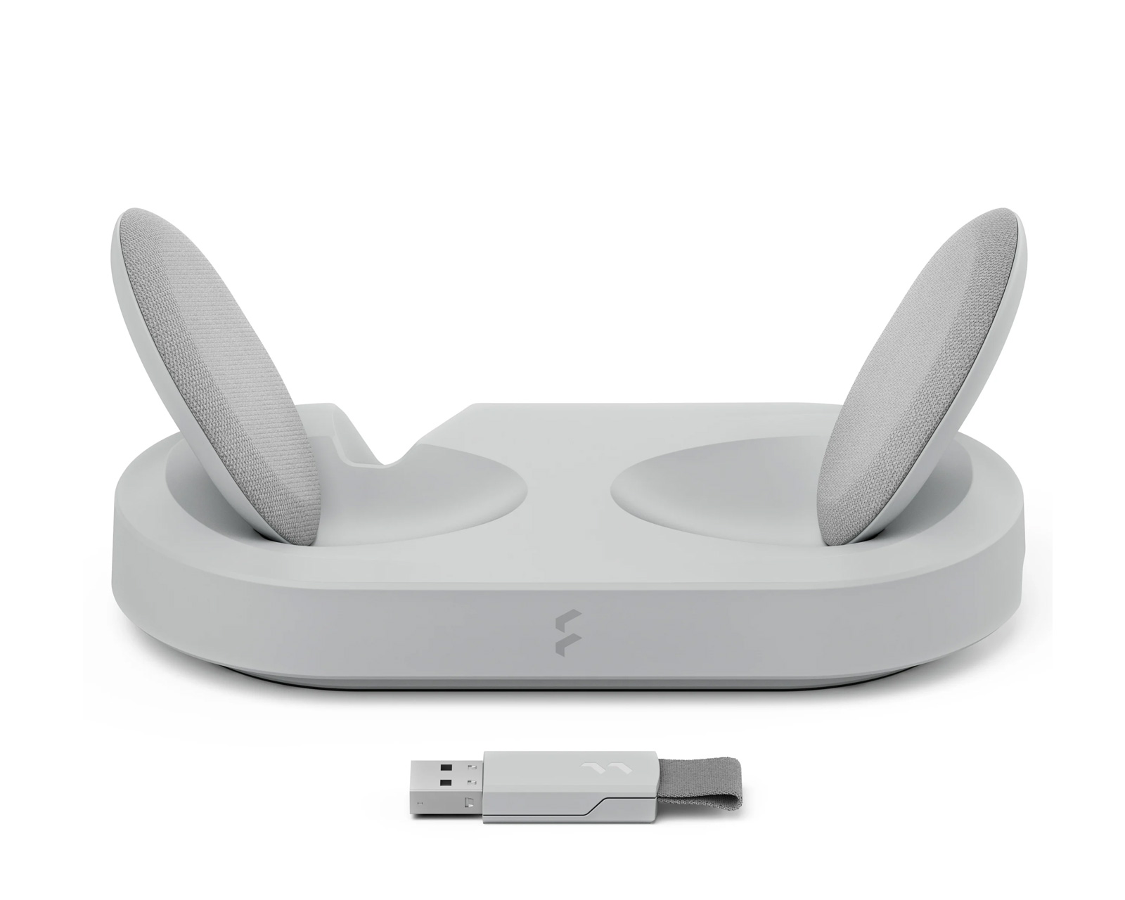 Scape er utstyrt med to trådløse alternativer; 2,4 GHz for lav latens og Bluetooth 5.3 for maksimal fleksibilitet. Det inkluderte nettbaserte grensesnittet gjør det enkelt å justere innstillinger som equalizer og RGB for å tilpasse lyd og utseende etter dine preferanser. Du kan lagre opptil tre profiler og bytte mellom dem med et enkelt knappetrykk. Med både innebygde mikrofoner for daglig bruk og en avtakbar bommikrofon leveres lyd av topp kvalitet uansett bruksområde. Et av høydepunktene er det inkluderte ladestativet som tilbyr en trådløs ladeløsning, noe som gjør det like praktisk som det er stilig. USB-donglen er diskret oppbevart i bunnen av stativet for enkel tilgang. Kombinasjonen av funksjonalitet, design og avanserte funksjoner gjør Scape til et trådløst headset som virkelig skiller seg ut.