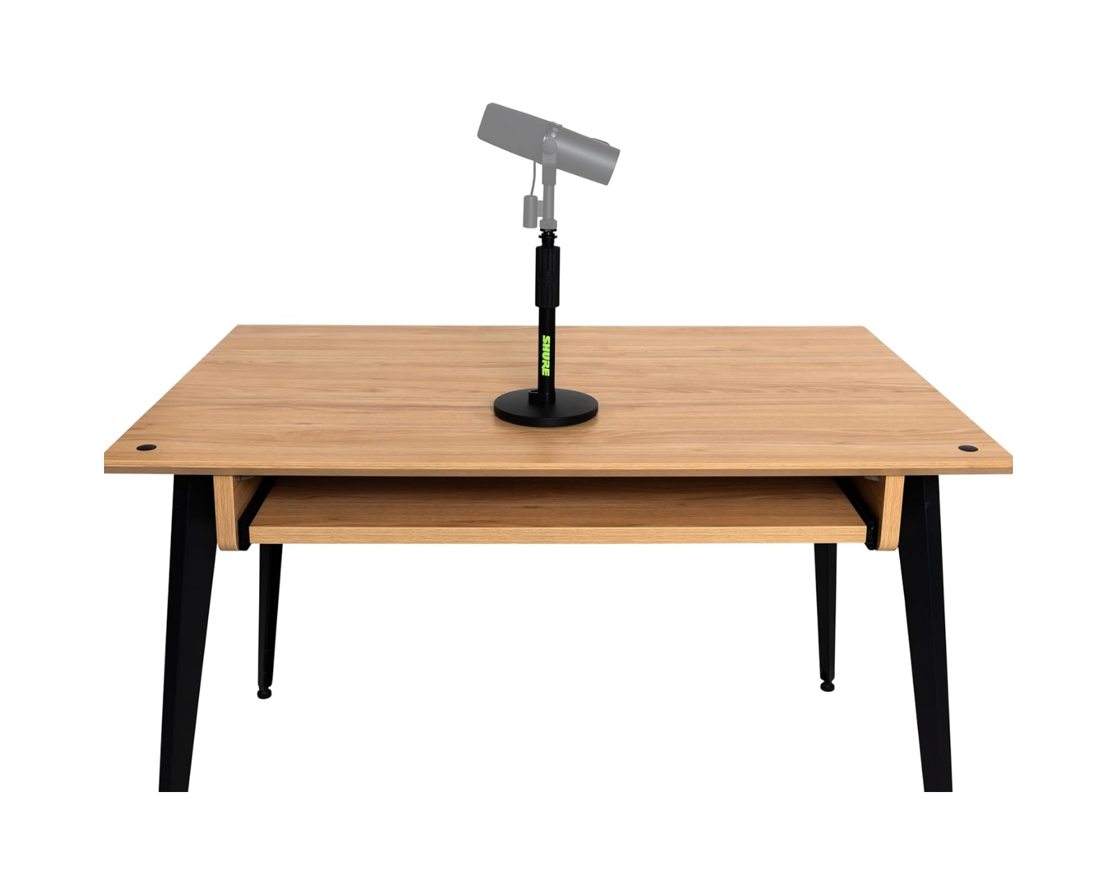 Den kompakte, runde basen passer pent på hvert skrivebord og minimerer rot, mens den universelle passformen sikrer kompatibilitet med både amerikanske og europeiske mikrofonholdere.