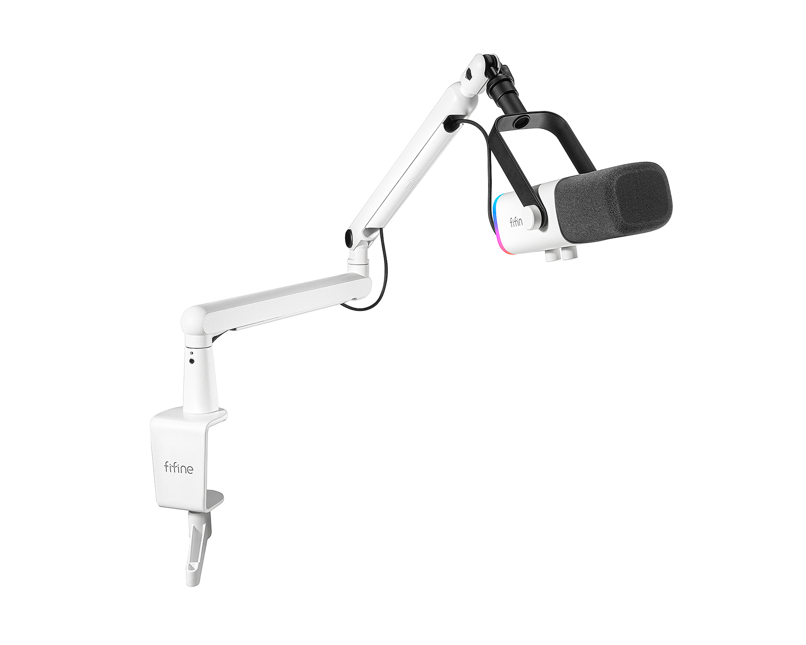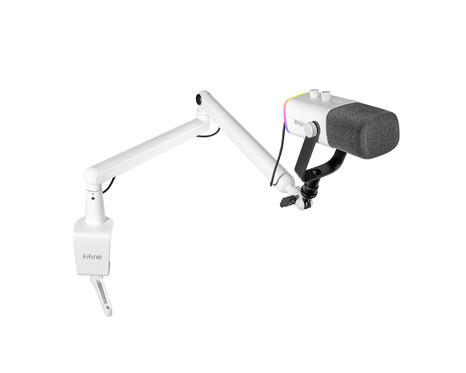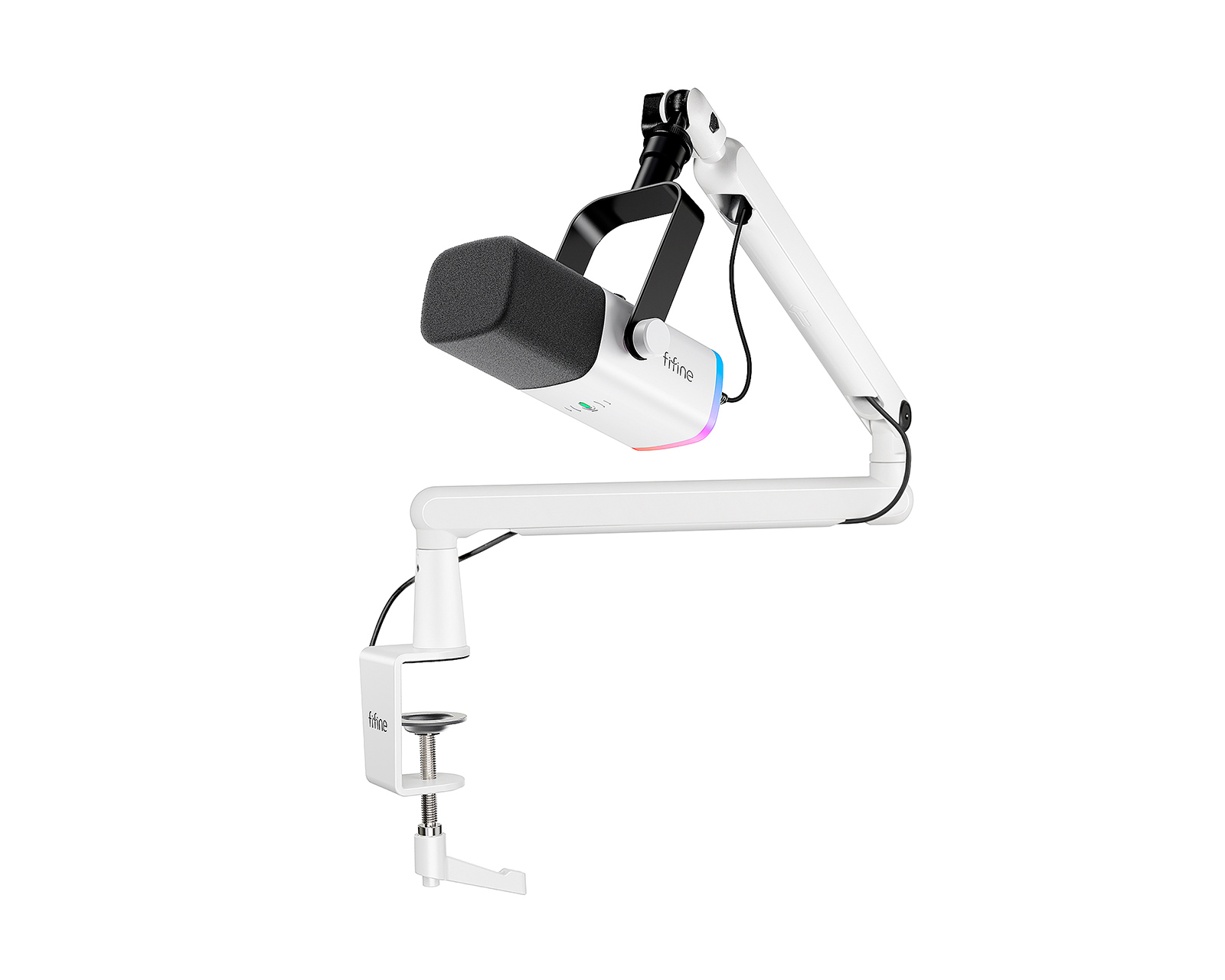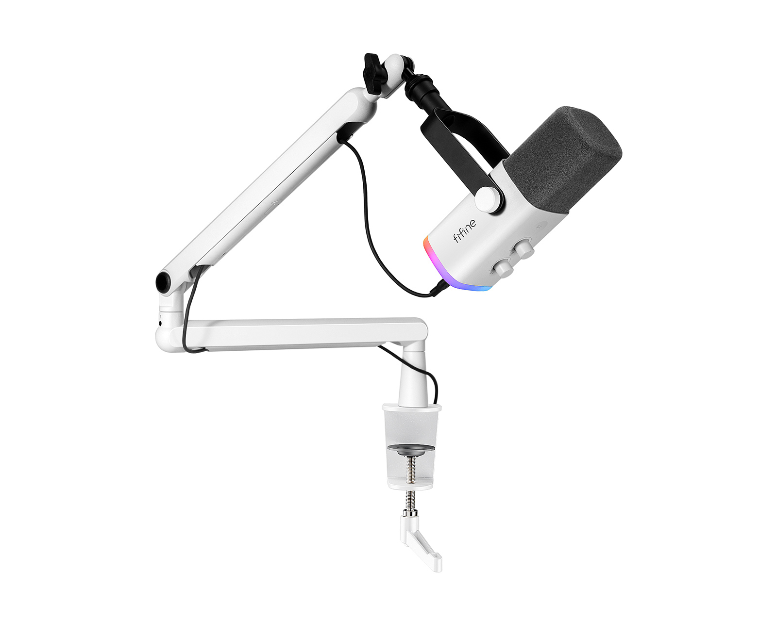 Fifine TAM8 Dynamisk Mikrofon med Mikrofonstativ - Hvit (DEMO)