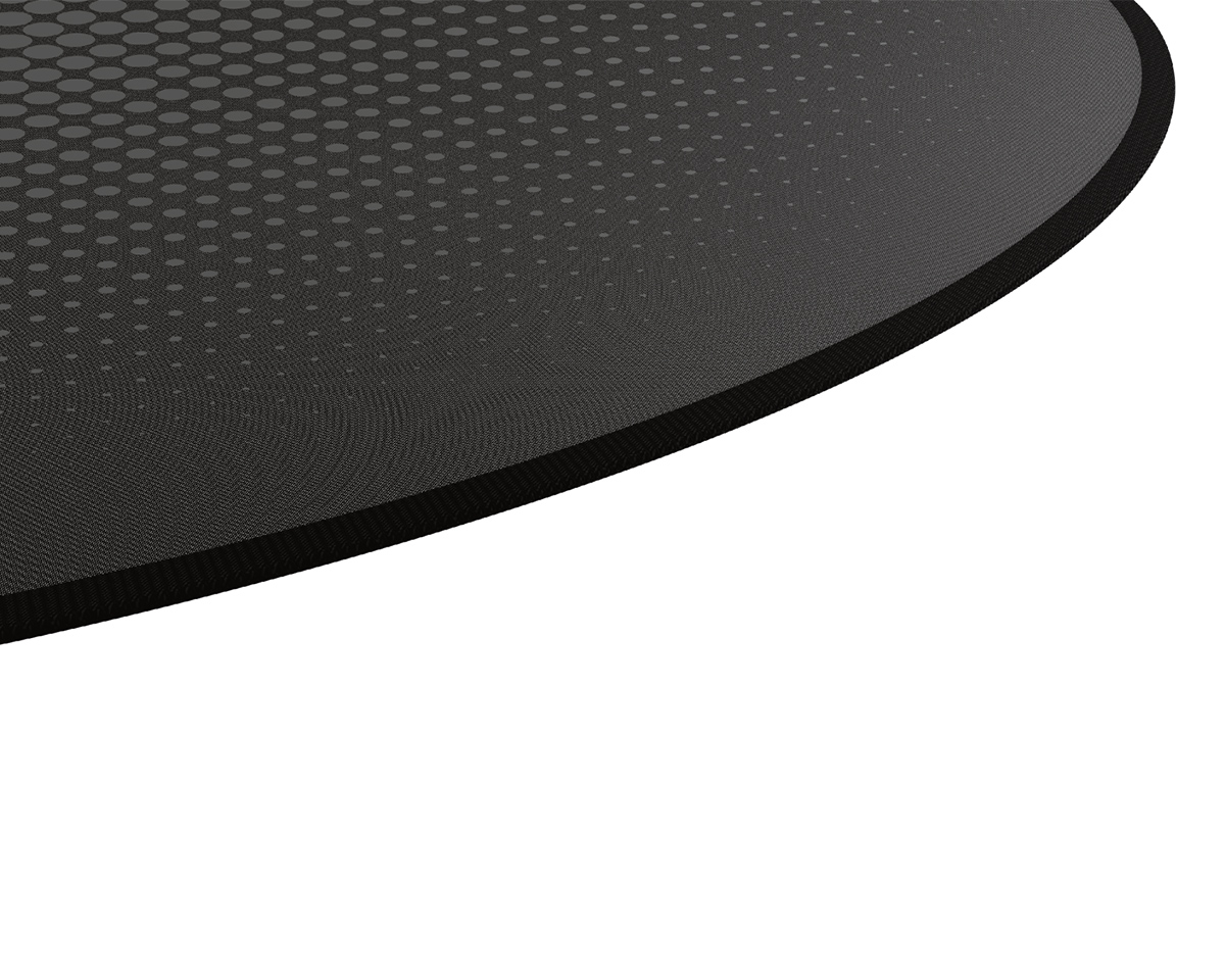 Mika Golvbeskyttelse er laget av et slitesterkt polyester-materiale som er designet for å motstå slitasje over tid. Den glidende undersiden sørger for at matten ligger på plass, noe som gir stabilitet under bruk. Med en diameter på 117 cm gir den et stort bruksområde og passer de fleste typer kontor- og gamingstoler. Golvbeskyttelsen kan også redusere lyden fra rullende stoler, noe som gjør den spesielt nyttig i miljøer der lydnivået må holdes nede.