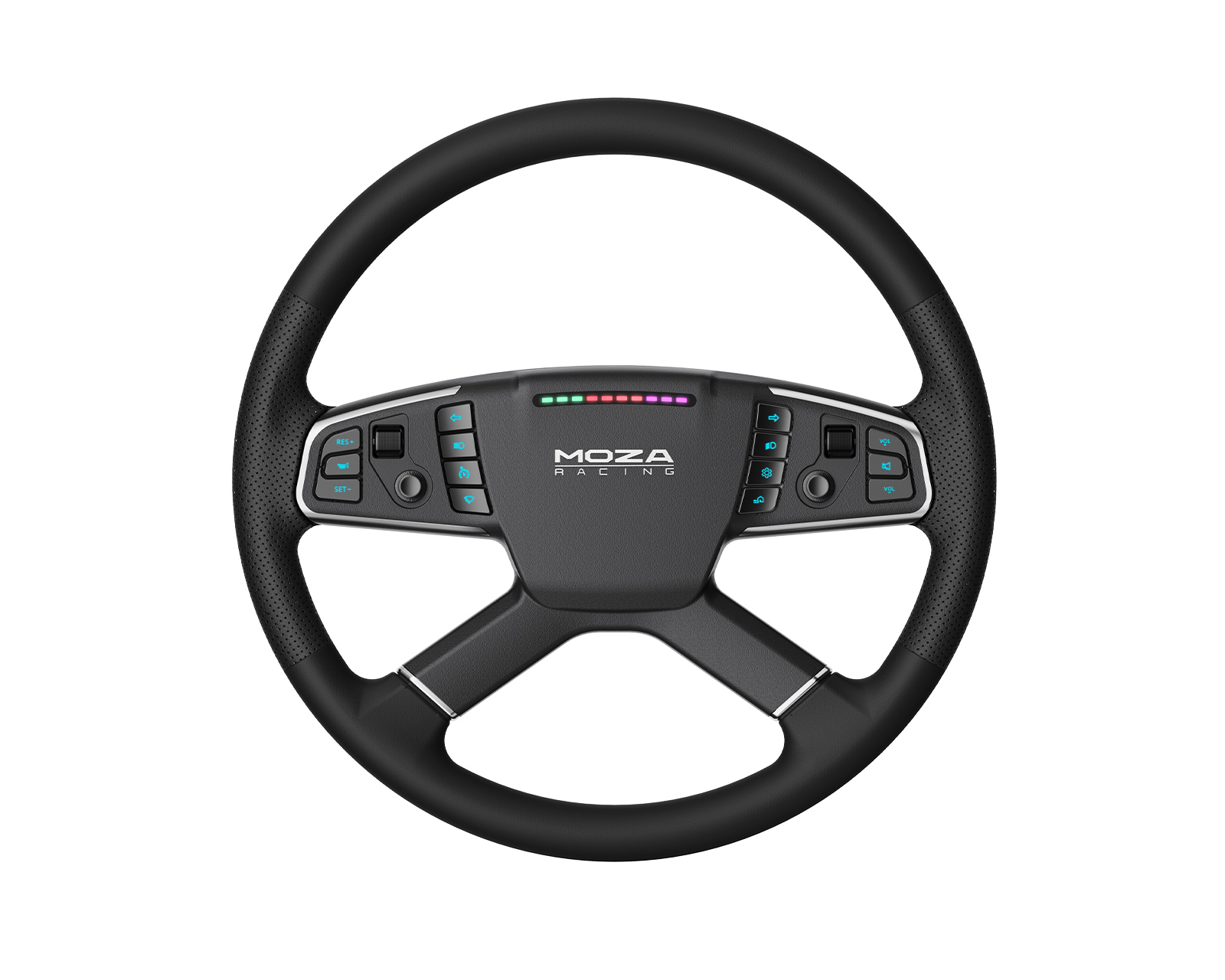 Med tilpassbare RGB-knapper og LED-lys kan du tilpasse den etter eget ønske. Den er kompatibel med alle MOZA-baser og andre systemer med en universaladapter, noe som gjør at den passer perfekt overalt. TSW Truck Wheel er det ultimate valget for simuleringsentusiaster som søker en naturtro kjøreopplevelse med dybde og funksjonalitet.