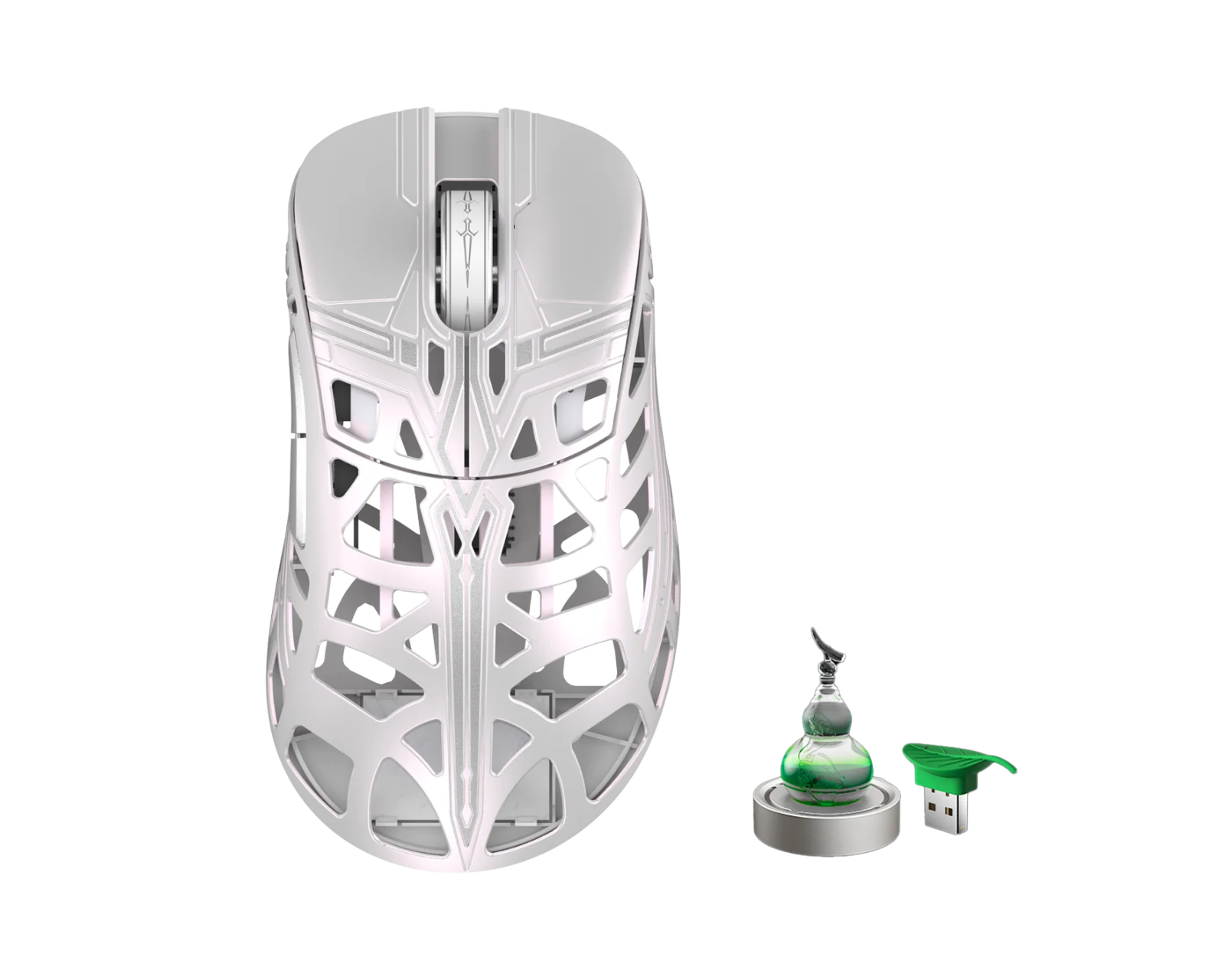 Gamingmusen er bygget med magnesiumlegering for økt holdbarhet og komfort, og bunnen er laget av ABS-plast. Musens LOD (Lift-Off Distance) er justerbar med tre forskjellige alternativer: 2 mm, 1 mm og 0,7 mm, noe som gir presisjon på ulike overflater. I tillegg inkluderes en unik 8K dongle for å muliggjøre nesten umerkelig latens og responsiv ytelse.