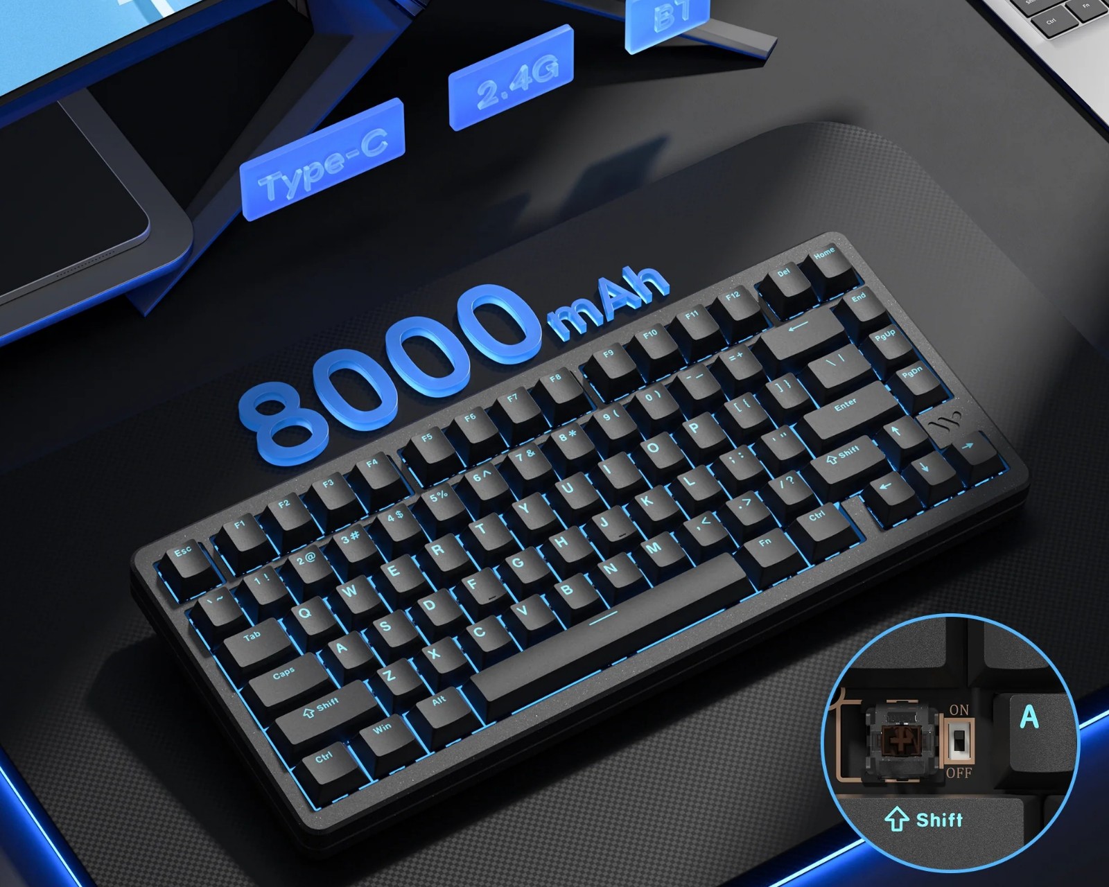 DEMO: Gjenkjøp og testeksemplar. God stand.Womier SK75 TMR er et trådløst tastatur med magnetiske brytere fra Womier Keyboard. Tastaturet tilbyr en rask respons med en polling rate på 8000Hz både i kablet og trådløs modus. Det består av 81 taster i en ANSI 75%-layout, noe som gjør det kompakt og lett å bruke i forskjellige miljøer. Takket være det langvarige 8000mAh-batteriet er det designet for både gamere og brukere som søker en pålitelig og høytytende enhet.