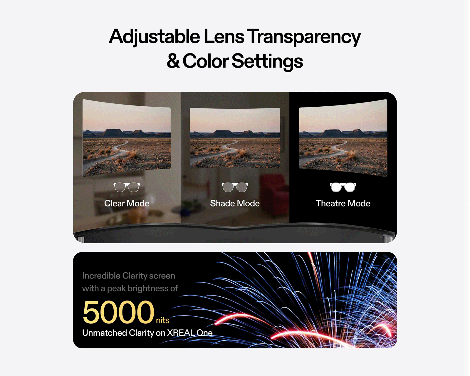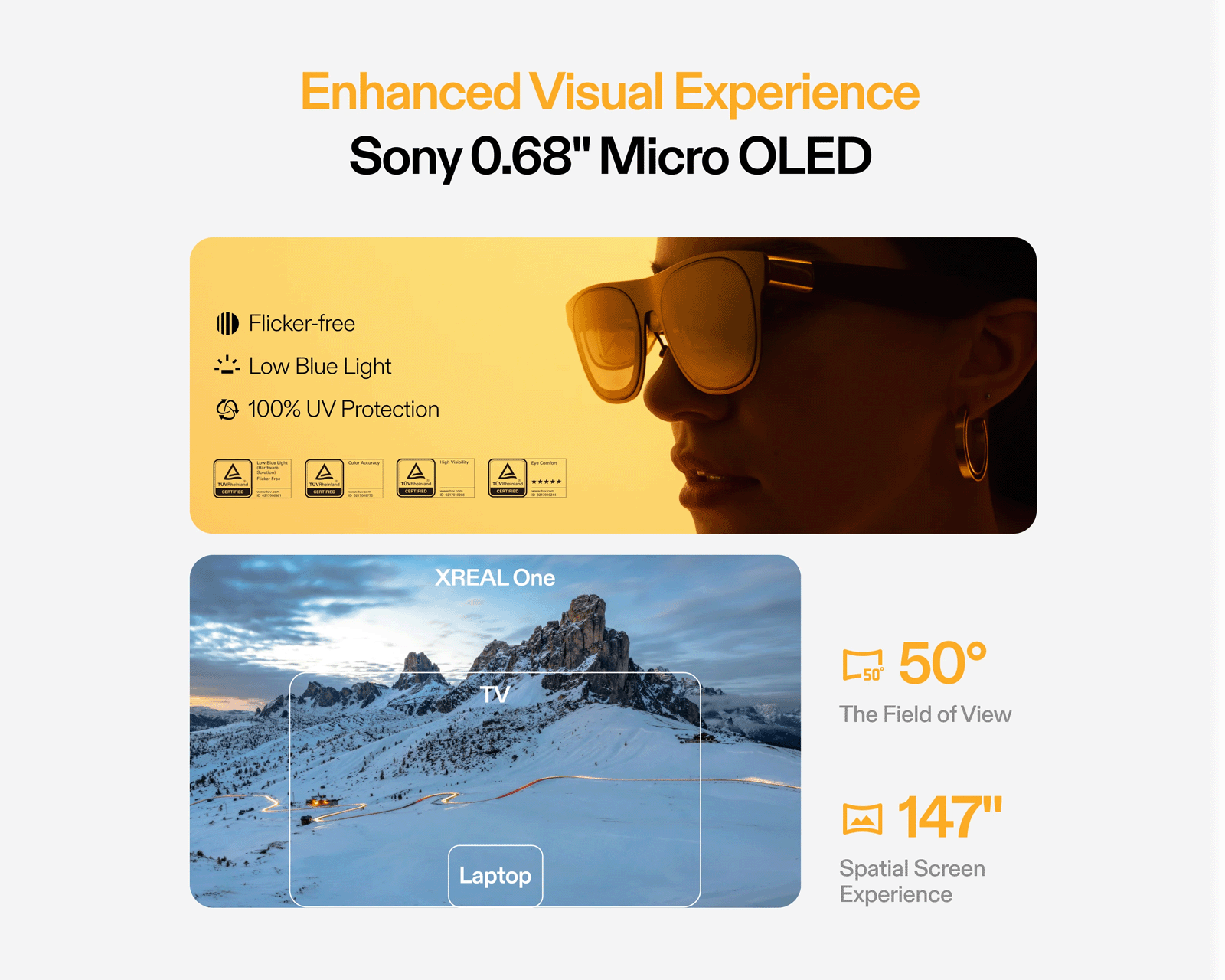 - Opptil 147-tommers virtuell skjerm med 50 grader FOV