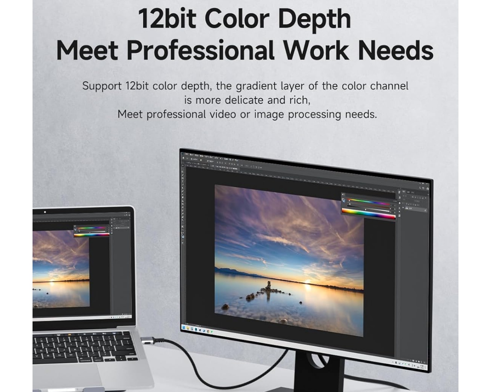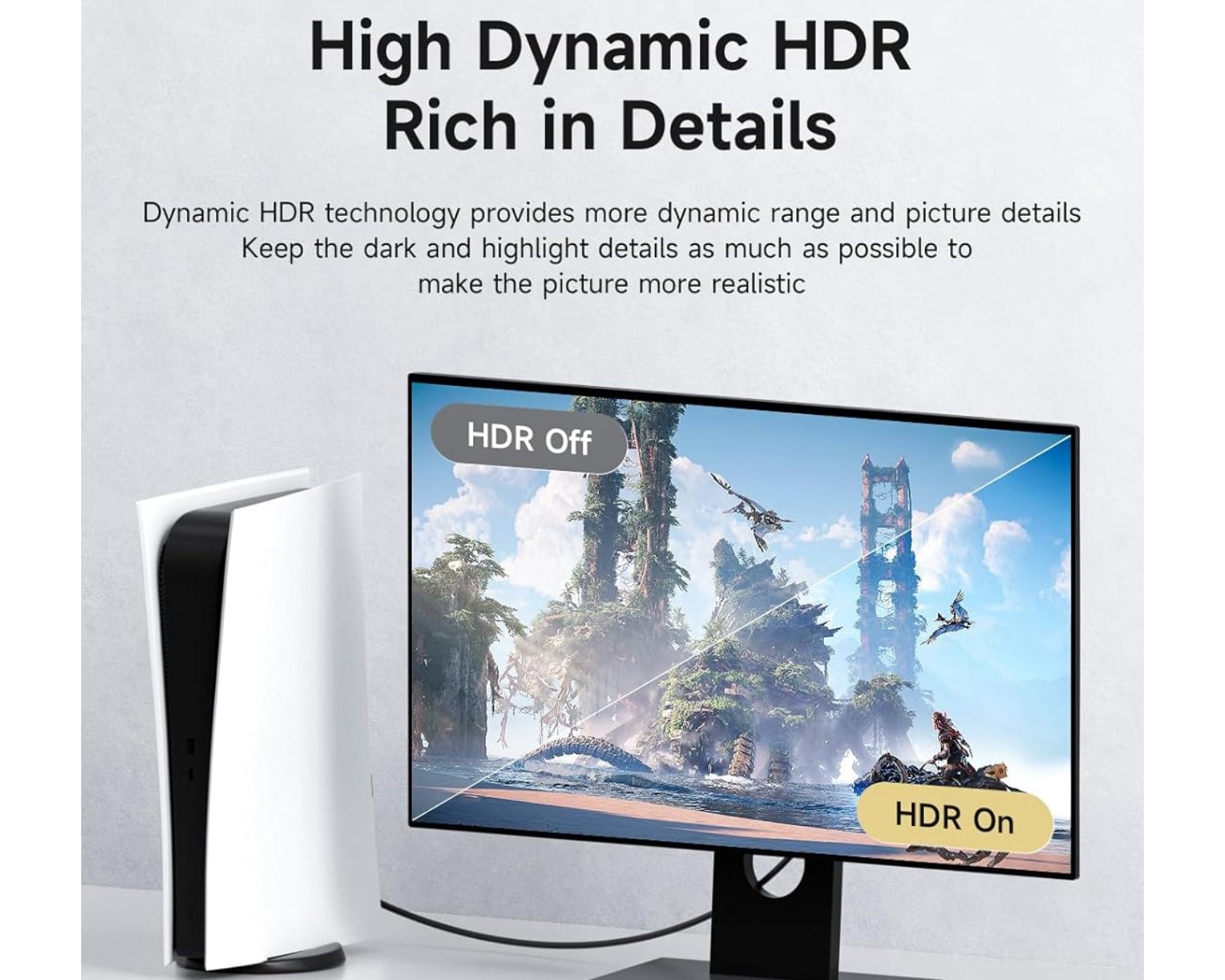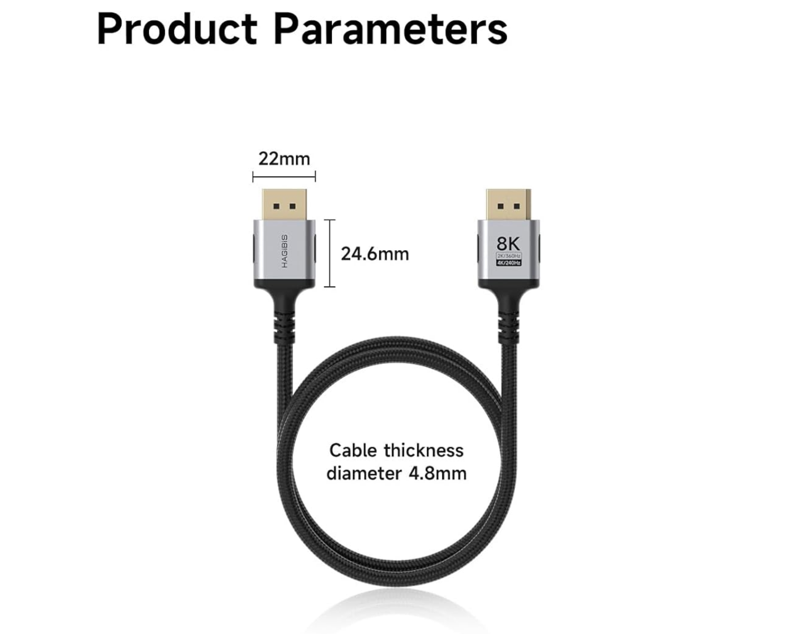 Hagibis 8K DisplayPort-kabel er et høyytelseskabel som støtter oppløsninger opp til 8K(7680x4320)@60Hz og 4K@240Hz. Den er beregnet for gamere og brukere som søker en stabil og høy kvalitet bil overføring. Kabelens overføringshastighet når opptil 32,4 Gbps og den tilbyr støtte for Dynamic HDR, som gjør at fargenivåene blir mer realistiske og klare.Kabelen er konstruert med en fleksibel, fletet design som gjør den holdbar og motstandsdyktig mot bøying. Med en kjerne av 34AWG tinnbelagt oksygenfri kobber samt aluminium- og grafittbeskyttelse, kan kabelen motstå signalinterferens og sikre en stabil bildekvalitet. Den er kompatibel med de fleste grafikkort og skjermer med DisplayPort, noe som maksimerer ytelsen uten å bruke forlengere eller adaptere som kan påvirke signalet negativt.