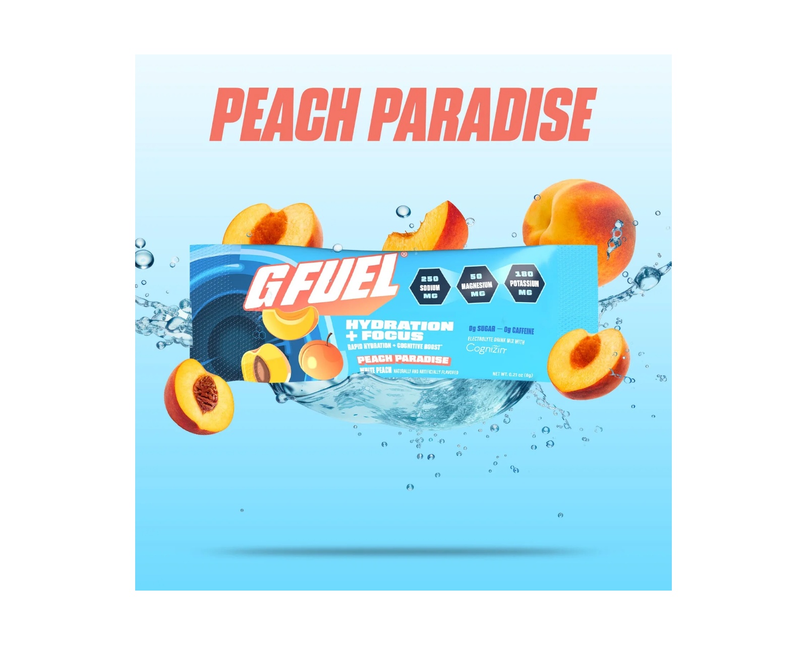 Peach Paradise Hydration + Focus Pack er en drikk og kosttilskudd fra G FUEL. Produktet tilbyr 20 porsjoner av en velsmakende konsentratløsning som er ment for å støtte hydrering og fokus. Den er fin å bruke under lange spillsesjoner eller intensive treningsøkter. Pakkens hovedkomponenter er bestemt for å gi en effektiv kombinasjon av hydrering og konsentrasjon, noe som kan være nyttig for gamere som etterstreber optimal ytelse.Produktet inneholder både naturlige og syntetiske ingredienser, noe som bidrar til dens smakprofil og funksjonalitet. G FUELs fokus ligger på å kombinere smak og ytelse, og Peach Paradise er intet unntak. Forpakningen gir fleksibilitet ved å være enkel å blande med vann, noe som gjør den lett tilgjengelig for forbrukeren.