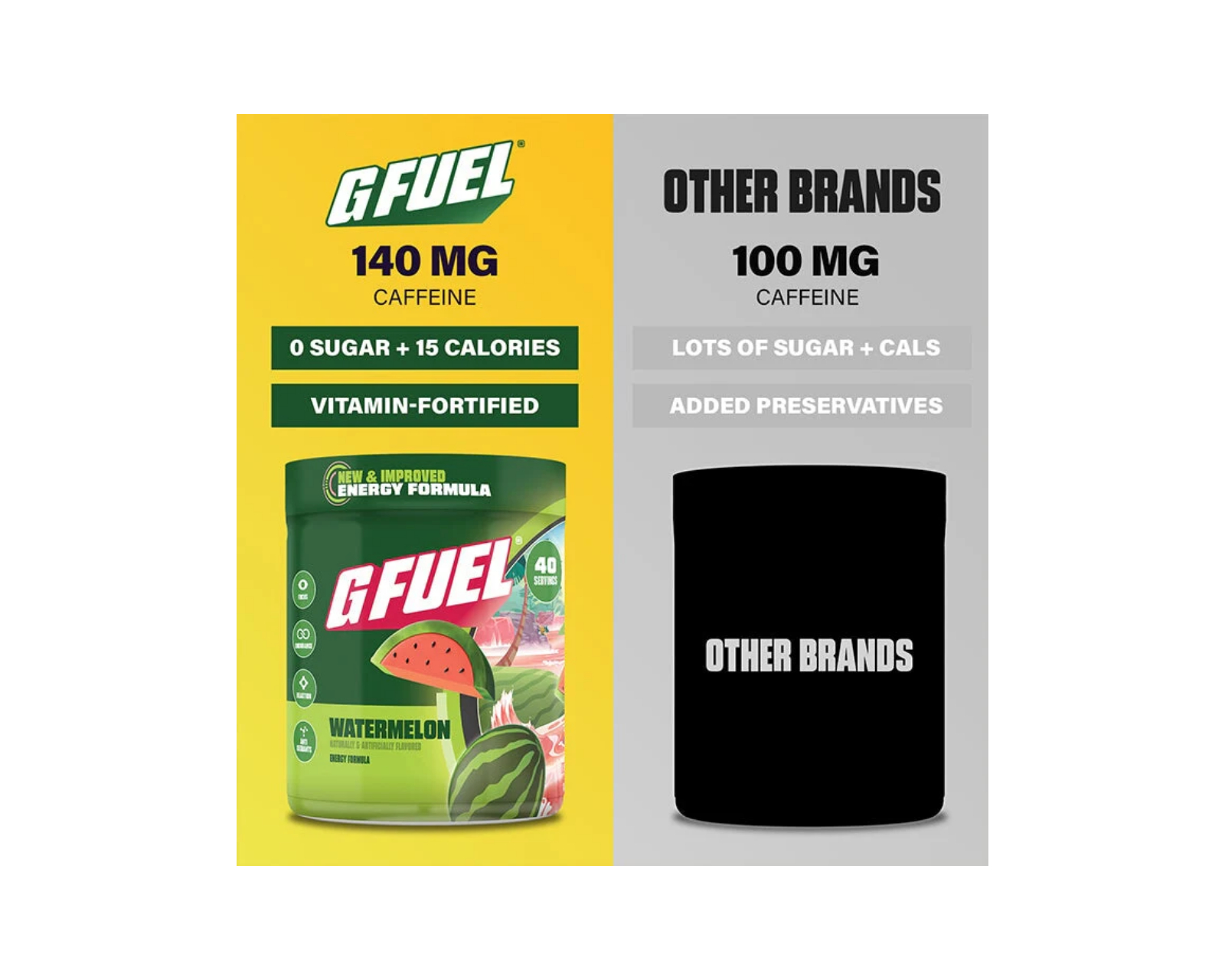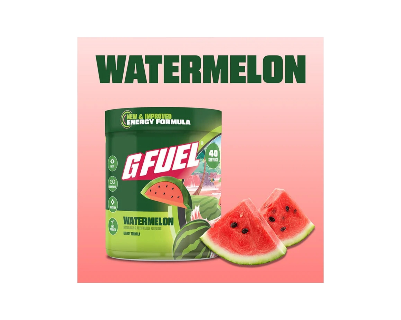 G FUEL Energy Drink er det ultimate tilskuddet for gamere, kreatører, studenter og idrettsutøvere. Med sin nøye utformede, sukkerfrie oppskrift og førsteklasses ingredienser gir G FUEL deg den perfekte kombinasjonen av energi, fokus og utholdenhet til å takle alle utfordringer du møter i løpet av dagen.