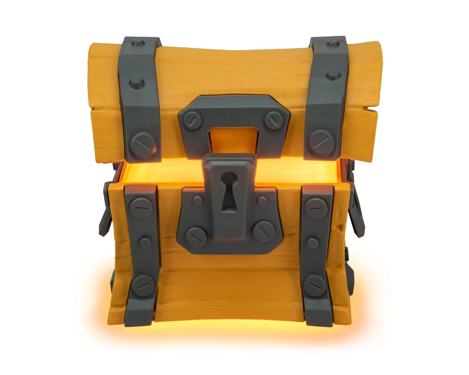 Gi deg selv en smakebit av Fortnite-universet med denne Fortnite-brystlampen. Lampen er en perfekt kopi av spillets ikoniske skattekiste, komplett med et glødende skattelys som aktiveres når kisten åpnes. For å skape en enda mer altoppslukende opplevelse, spiller lampen også autentiske lyder fra spillverdenen når du åpner den, noe som gjør dette til det ultimate samleobjektet for Battle Royale-fans.Lampen er 14,4 cm bred og drives av tre AAA-batterier, noe som gjør den enkel å plassere hvor som helst i hjemmet. Ingen ledning er nødvendig, noe som gjør den like praktisk som den er stilig å integrere i spillhjørnet eller barnerommet.