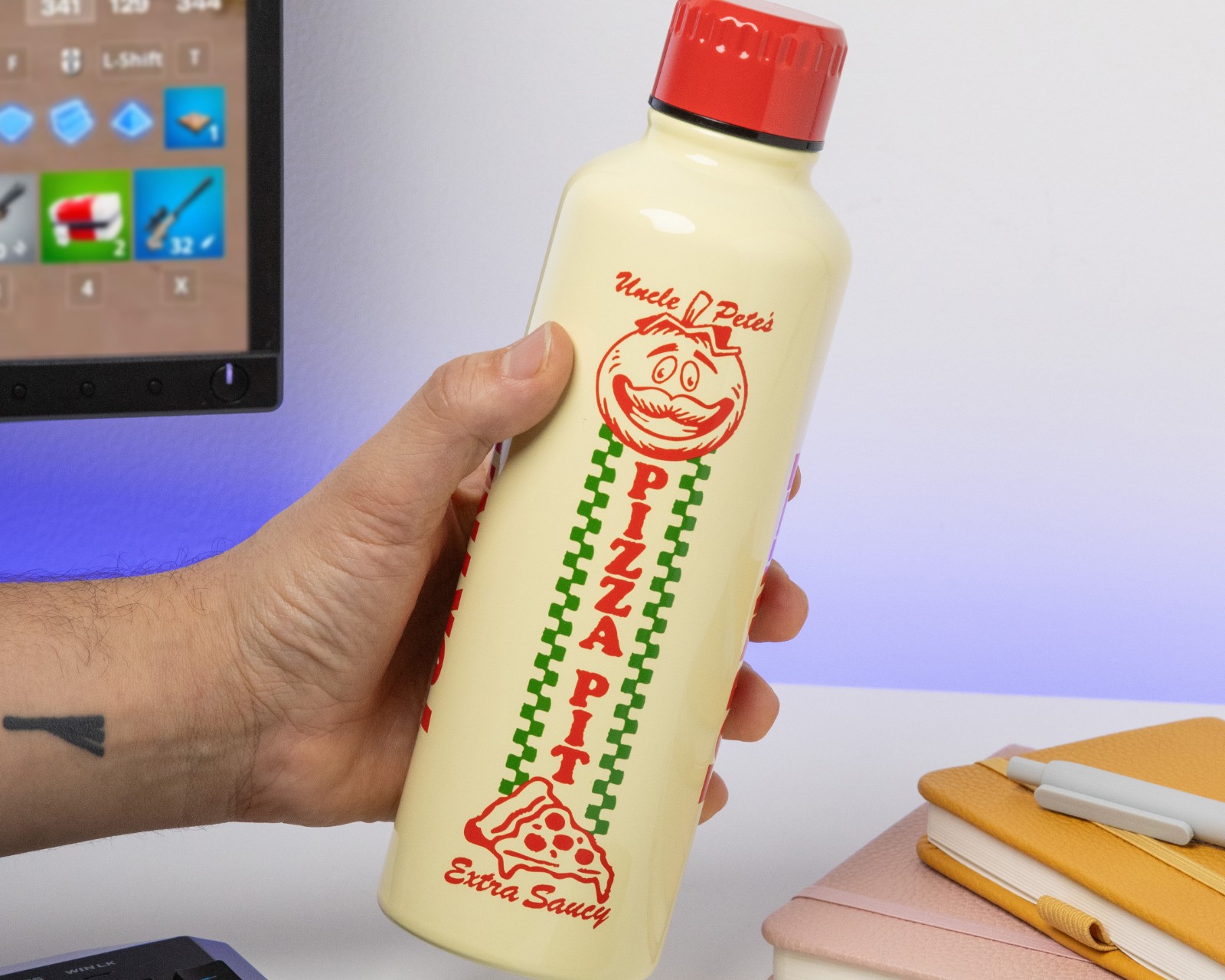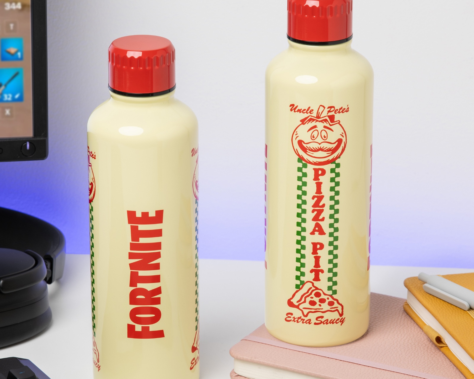 Fortnite Metal Water Bottle 500ml er en funksjonell vannflaske designet for å holde drikker varme eller kalde lenger. Laget av rustfritt stål med en kapasitet på 500ml, er den et praktisk valg for turgåere, studenter eller kontorarbeidere. Skrukorken sikrer at flasken er lekkasjesikker og enkel å håndtere. Et klart mål for Fortnite-fans, flasken er et offisielt lisensiert produkt med et Pizza Pit-design, og er et klart mål for Fortnite-fans.Flasken er designet for både funksjon og holdbarhet. Rustfritt stål er det valgte materialet, noe som gir en robust konstruksjon med gode isolasjonsegenskaper. Den praktiske skrukorken forhindrer søl, noe som gjør den enkel å bruke under ulike aktiviteter. Vannflasken er designet for å være gjenbrukbar, noe som bidrar til en mer bærekraftig livsstil. Vær oppmerksom på at den ikke tåler oppvaskmaskin eller mikrobølgeovn, noe som er viktig å vurdere for å bevare kvaliteten og funksjonaliteten. Flasken har et design som gjenspeiler det populære spillet, noe som gjør den til et attraktivt tilbehør for alle Fortnite-entusiaster.