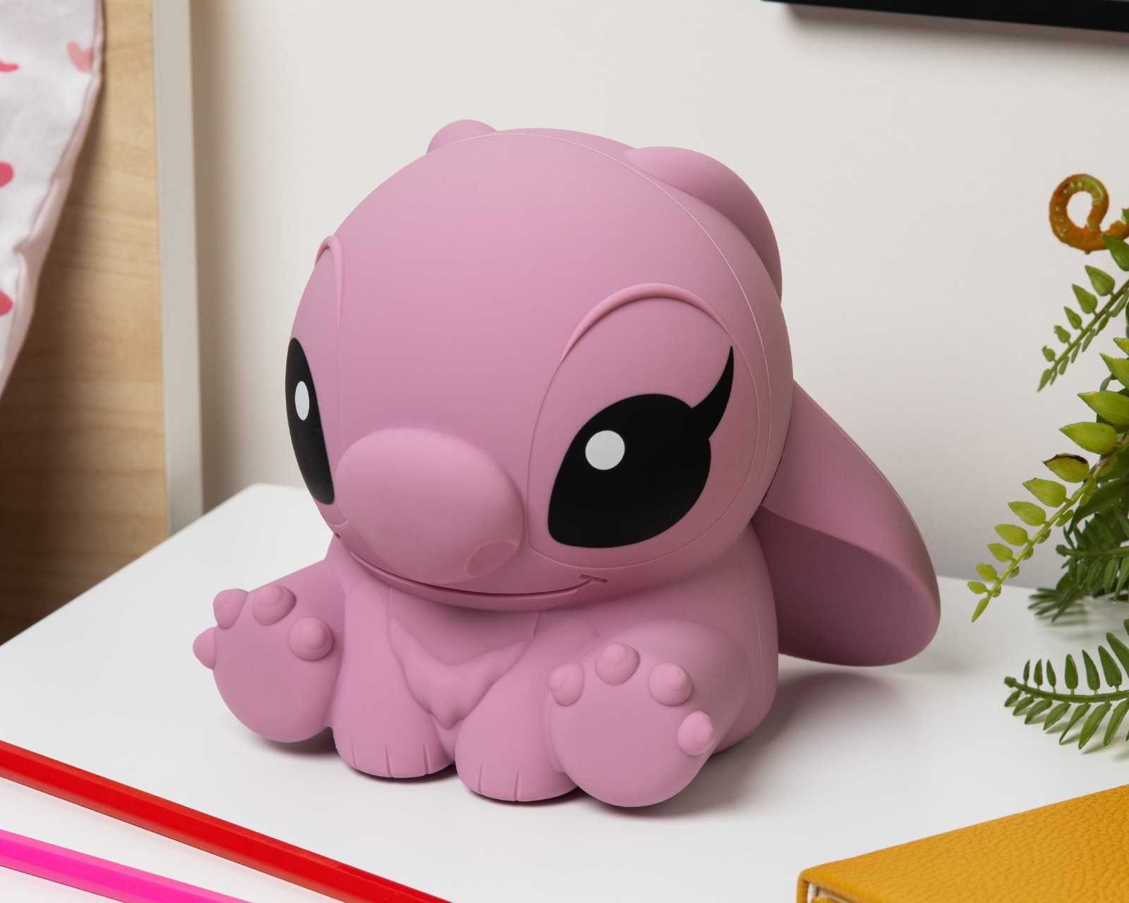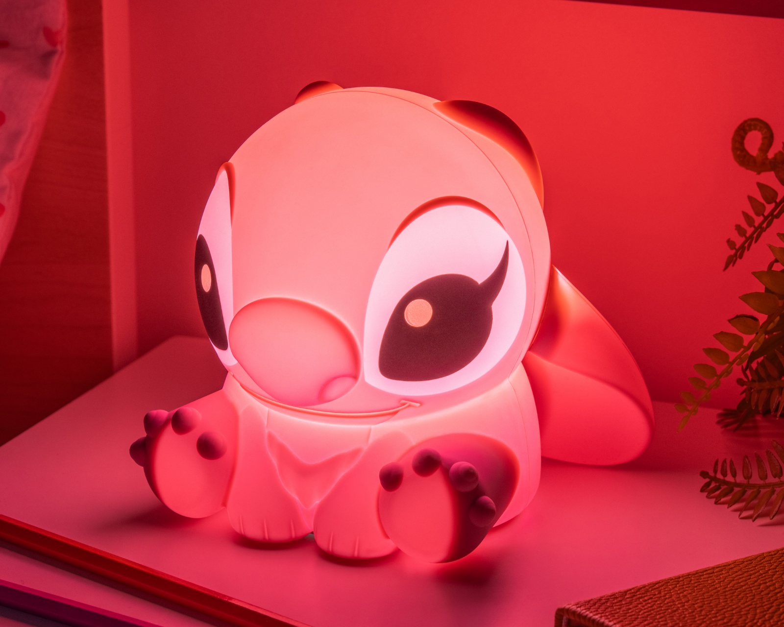 Angel SquishyGlo Silikonlampe Oppladbar fra Paladone er en innovativ belysningsløsning designet for å gi et lekent innslag i ditt hjem. Denne 14,5 cm (5,7") høye lampen tar formen av en engel og er laget av barnesikker, myk silikon som gjør den trygg og lett å håndtere. Med en smart auto-av-funksjon som aktiveres etter 1-3 timer, tilbyr den praktisk bruk som nattsynkronisering for både barn og voksne. Den har dessuten tre forskjellige lysstyrkenivåer, noe som gjør at du kan tilpasse den for å skape en rolig atmosfære ved leggetid.Lampens bestandsdeler inkluderer et integrert, ikke-avtagbart oppladbart batteri som kan lades med den medfølgende USB-kabelen. Når den er ladet, er den trådløs, noe som gir frihet til å plassere den hvor som helst i rommet. Lampens kompakte design gjør at den er lett å flytte mellom nattbord og hyller. Siden den er koblet til Lilo & Stitch-universet, er den også perfekt som en dekorativ detalj for fans av serien, noe som gir en koselig og leken følelse i barnerommet eller stuen.