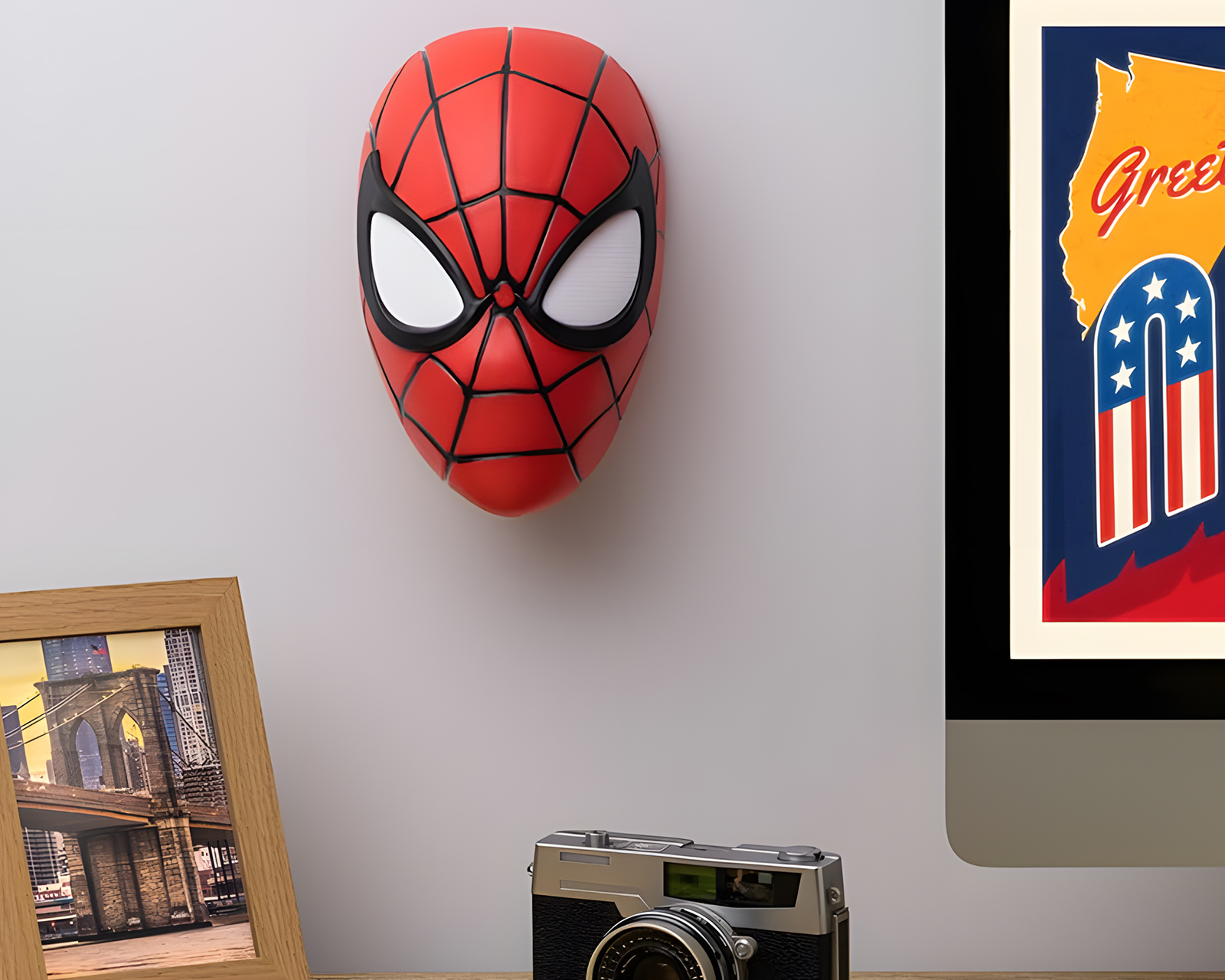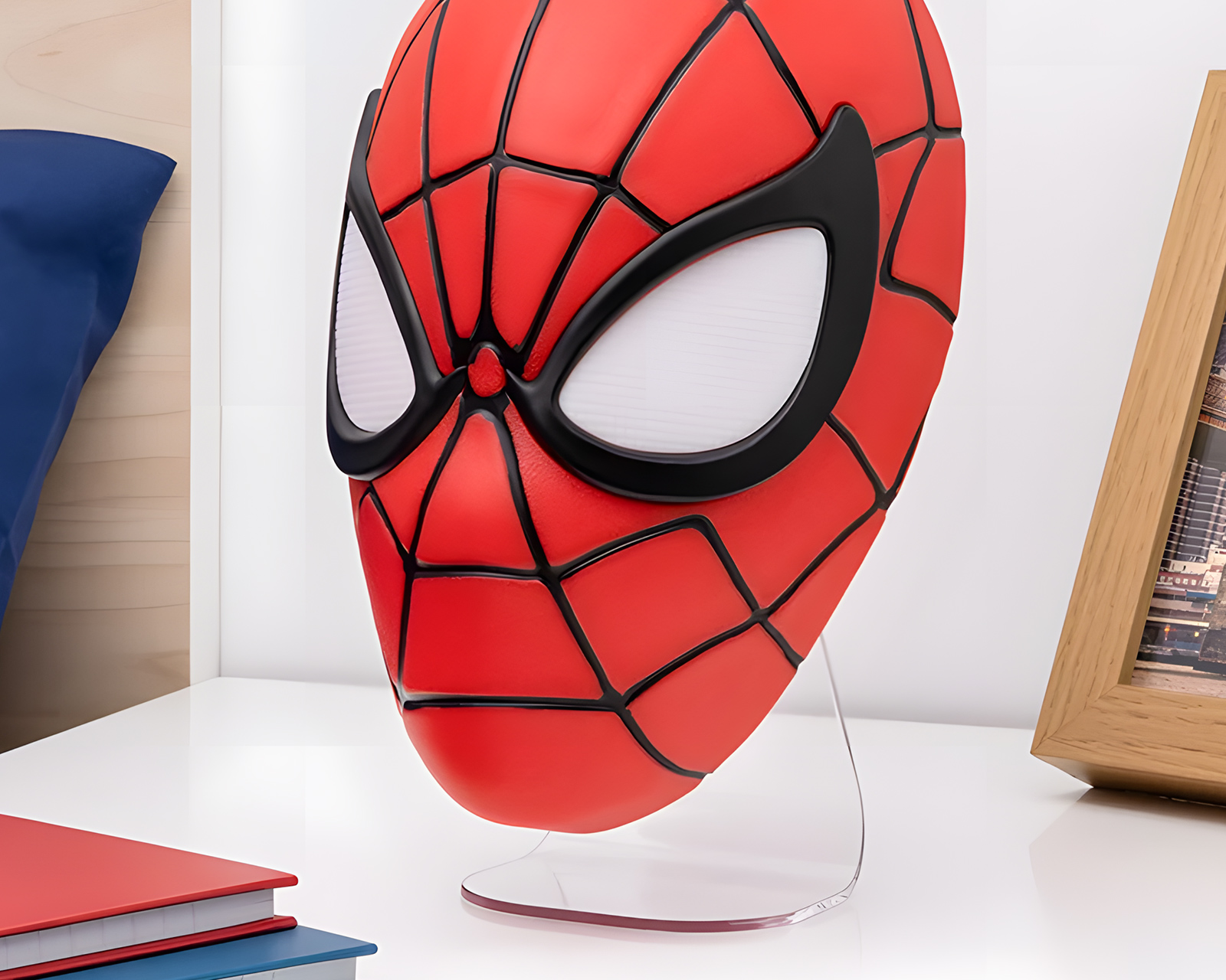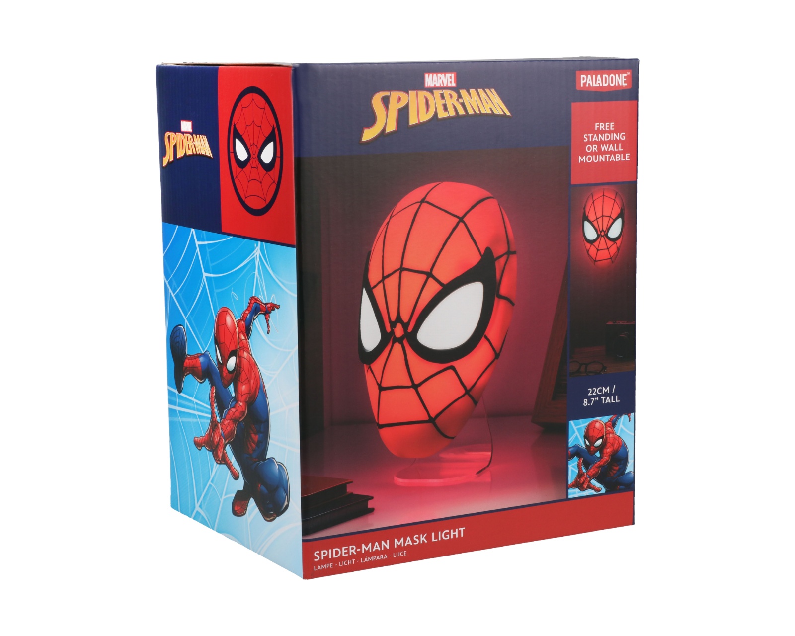 Spiderman Maske Lys er en lampe fra Paladone. Denne LED-lampen tar inspirasjon fra den ikoniske Spiderman-masken og er designet for entusiaster av popkultur og gaming. Lampen er laget av bærekraftig plast og gir en unik atmosfære i hjemmet eller spillrommet.Byggkvaliteten hos Spiderman Maske Lys er høy og den er offisielt lisensiert, noe som sikrer at detaljene er tro mot originaldesignet. Lampen finnes i fargene svart, rød og hvit, noe som gjør at den kan passe inn i ulike innredninger og stiler. Den energibesparende LED-teknologien gir et mykt og behagelig lys som er perfekt for både stuer og som nattbelysning. Takket være sin størrelse og design kan lampen enkelt plasseres på hyller eller skrivebord, noe som gjør den til et utmerket samlerobjekt for fans.