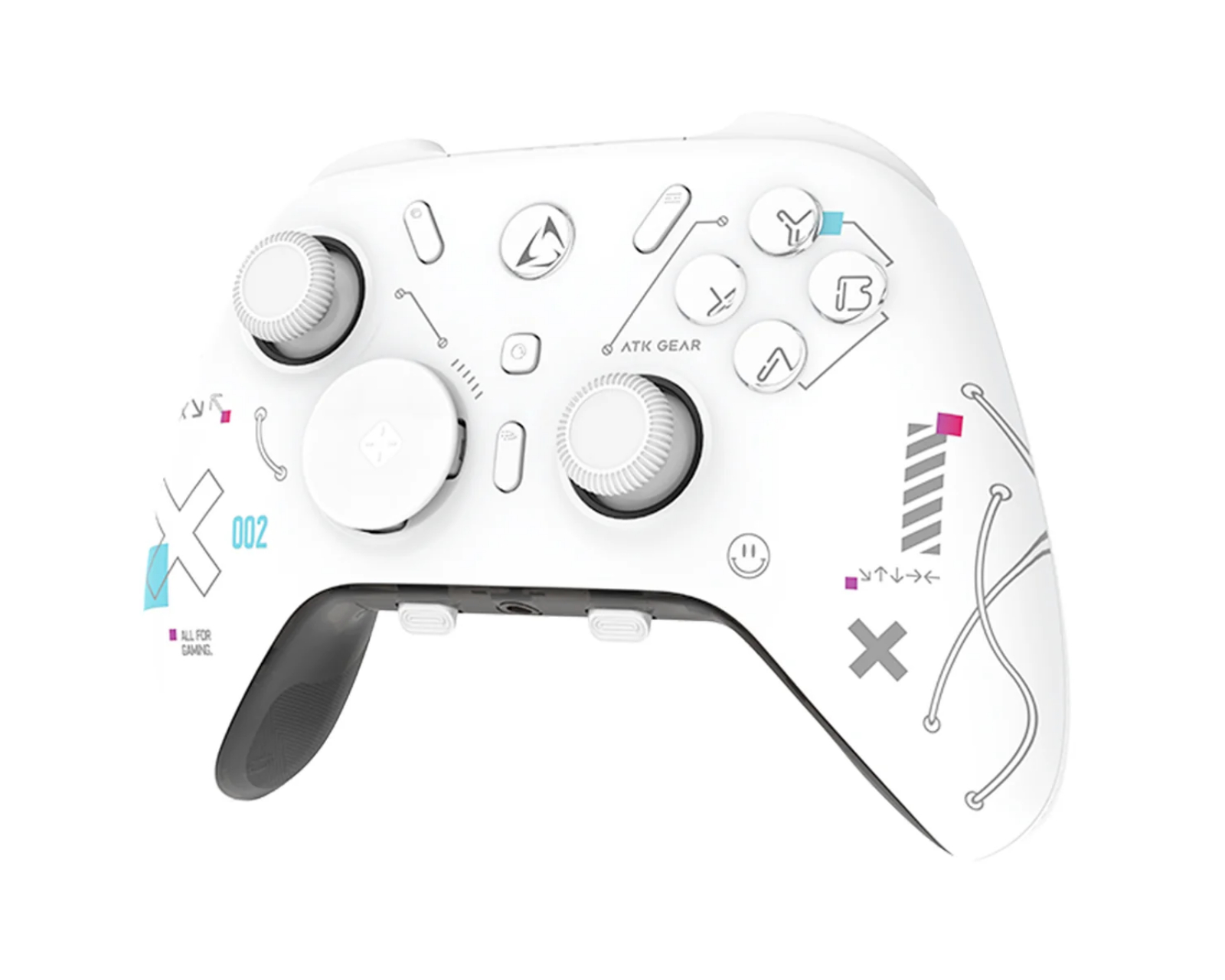AXE PRO er en trådløs gamingkontroll fra ATK, designet for å være kompatibel med flere plattformer. Den tilbyr en tri-modus for tilkobling, som betyr at brukeren kan bytte mellom Bluetooth, 2.4GHz trådløs og USB-C kabeltilkobling. Enheten er rettet mot gamere som søker en fleksibel løsning for spilling på ulike typer enheter.Kontrollen er utstyrt med Hall-effekt joysticker som gir høy presisjon og eliminerer drift. Den har en makro- og turbofunksjon som lar brukeren programmere komplekse kommandoer og aktivere raskt skudd. Med 6-aksers gyroskopisk støtte forbedres bevegelsessensoren for Nintendo Switch og kompatible mobile spill. Kontrollen har også justerbar vibrering og RGB-effekter for en taktil spillopplevelse. Den ergonomiske formen er designet for komfort under lengre spilløkter.