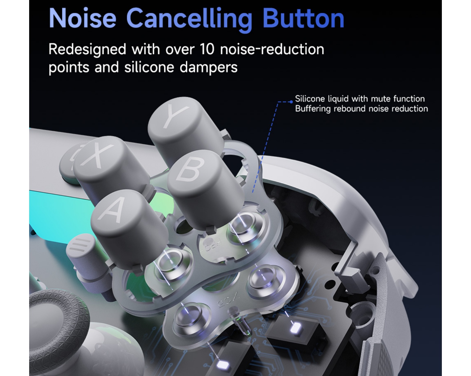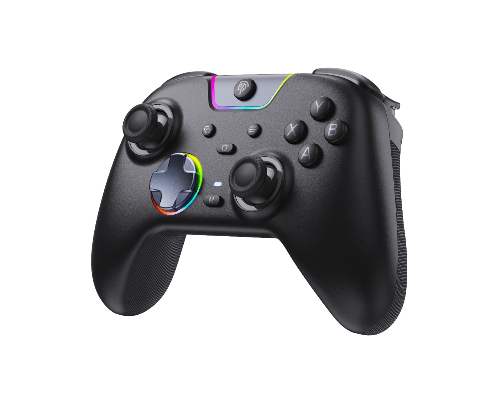 EasySMX X05Pro er en trådløs gamingkontroller som støtter flere plattformer. Den er spesifikt designet for bruk med PC, Nintendo Switch samt mobile enheter. Kontrollen har lyddempende knapper for stille spillopplevelser og tilbyr en avansert dual-stage hall trigger-løsning for økt presisjon i spillkontroll. Den er bygget med høykvalitets materialer og integrerer Hall-effekt joysticks som muliggjør langvarig og responsiv bruk.I tillegg tilbyr den en 8-veis D-pad for nøyaktig retning og utførelse av kombinasjoner, samt et oppgradert vibrasjonssystem for forbedret tilbakemelding under spill. Kontrollen støtter også RGB-belysning med tilpassbare farger for en personlig touch.