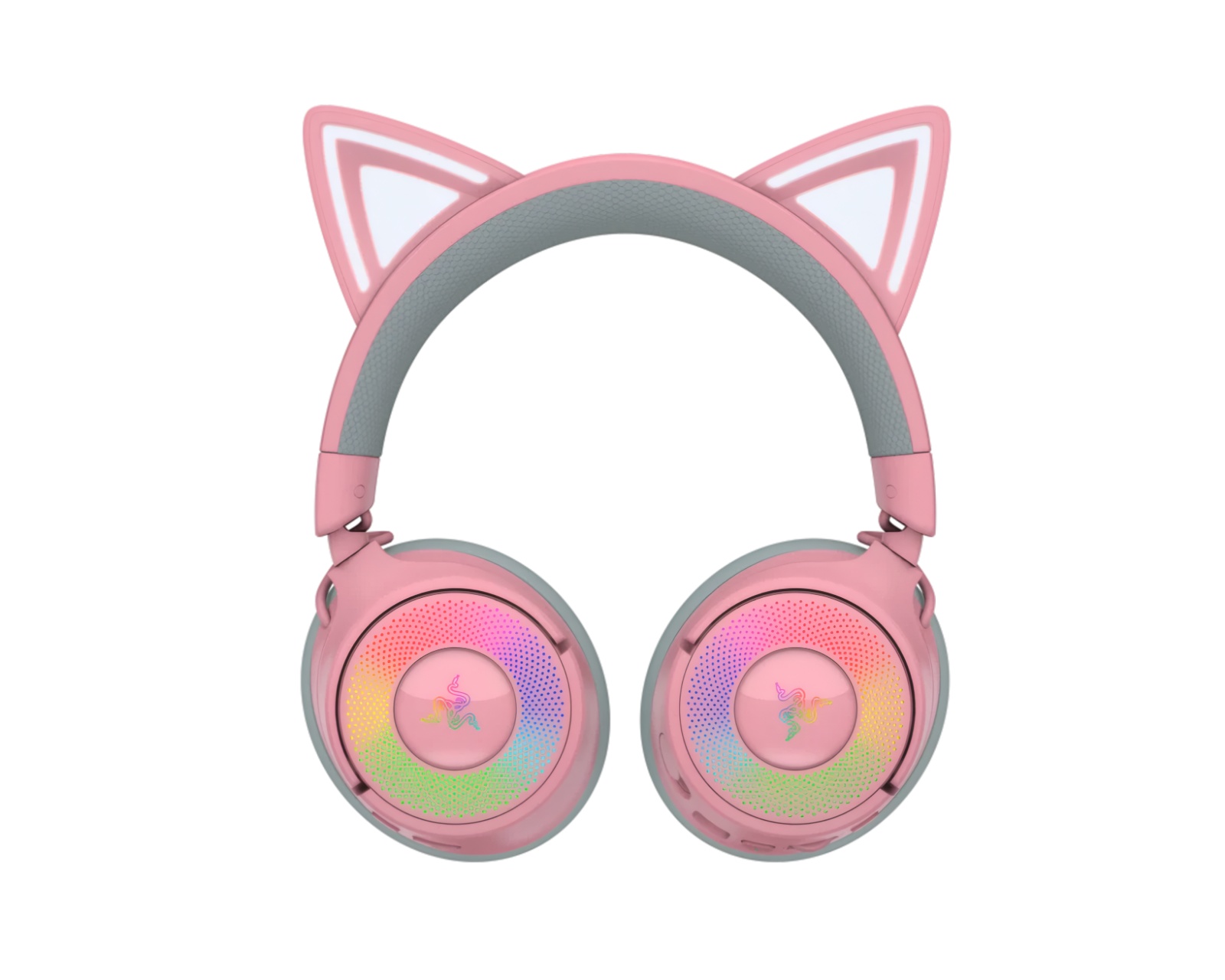 Kraken Kitty V3 Pro er et trådløst gaming headset fra Razer, designet med karakteristiske katteører og Razer Chroma™ RGB-belysning. Det tilbyr tre forskjellige tilkoblingsmetoder, inkludert 2.4 GHz og Bluetooth 5.3, samt en superbred mikrofon for klar lydgjengivelse. Dette headsettet henvender seg til gamere som søker stil og funksjonalitet under spillopplevelsen.Headsettet har øreputer i proteinlær med minneskum for økt komfort og lydisolering. Den fleksible og avtakbare Razer™ HyperClear-mikrofonen har et bredt frekvensrespons som gjør at brukerens stemme gjenngis tydelig. Razer™ TriForce Titanium 40 mm-drivere gir en lytteopplevelse med distinkte høye toner, jevne mellomtoner og dype basslyder, noe som resulterer i et klart og balansert lydbilde. Enheten støtter THX Spatial Audio for 7.1-surroundlyd, noe som gir en mer immersiv spillopplevelse.