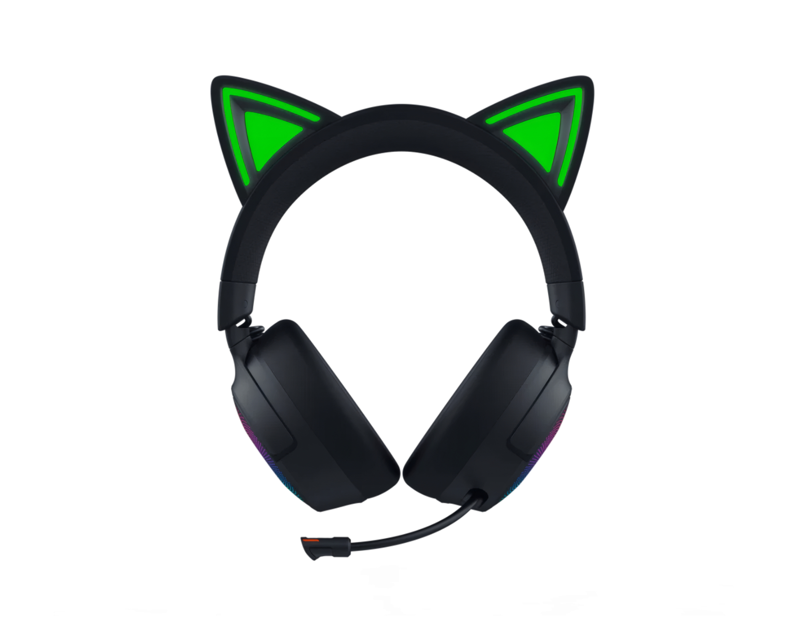 Kraken Kitty V3 Pro er et trådløst gaming headset fra Razer, designet med karakteristiske katteører og Razer Chroma™ RGB-belysning. Det tilbyr tre forskjellige tilkoblingsmetoder, inkludert 2.4 GHz og Bluetooth 5.3, samt en superbred mikrofon for klar lydgjengivelse. Dette headsettet henvender seg til gamere som søker stil og funksjonalitet under spillopplevelsen.Headsettet har øreputer i proteinlær med minneskum for økt komfort og lydisolering. Den fleksible og avtakbare Razer™ HyperClear-mikrofonen har et bredt frekvensrespons som gjør at brukerens stemme gjenngis tydelig. Razer™ TriForce Titanium 40 mm-drivere gir en lytteopplevelse med distinkte høye toner, jevne mellomtoner og dype basslyder, noe som resulterer i et klart og balansert lydbilde. Enheten støtter THX Spatial Audio for 7.1-surroundlyd, noe som gir en mer immersiv spillopplevelse.