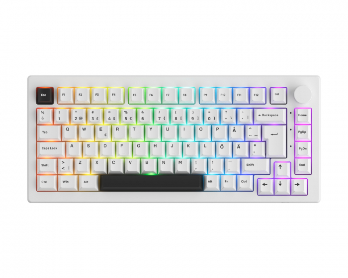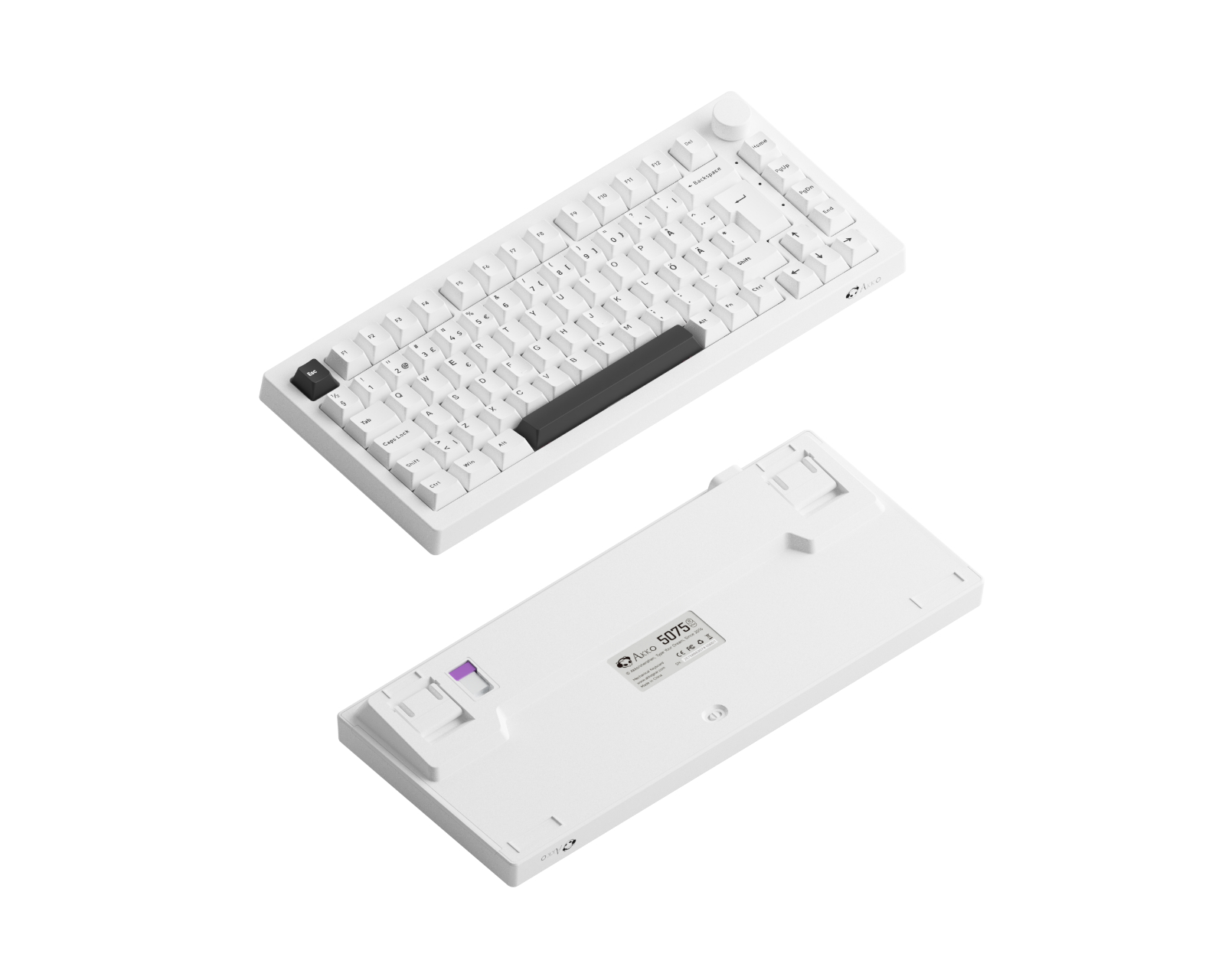 5075B Plus S Black on White er en avansert mekanisk tastaturløsning for de som ønsker å kombinere funksjon og stil. Utstyrt med RGB-bakgrunnsbelysning, Bluetooth 5.0 og hybrid-tilkobling via USB-C og 2.4G trådløs, garanterer den fleksibilitet og tilpasning for alle behov. Tastaturet er bygget med den ergonomiske ISO-layouten og inkluderer ekstra tastaturer for DE, UK og Nordic.Hot-swap-funksjonalitet og dens innovative pakningsfeste gir en myk og polstret skriveopplevelse. Den jevne roterende knappen gir rask justering av lys og volum, og optimaliserer arbeidsflyten. PBT-tastene med doble skudd sikrer langvarig kvalitet og estetikk.